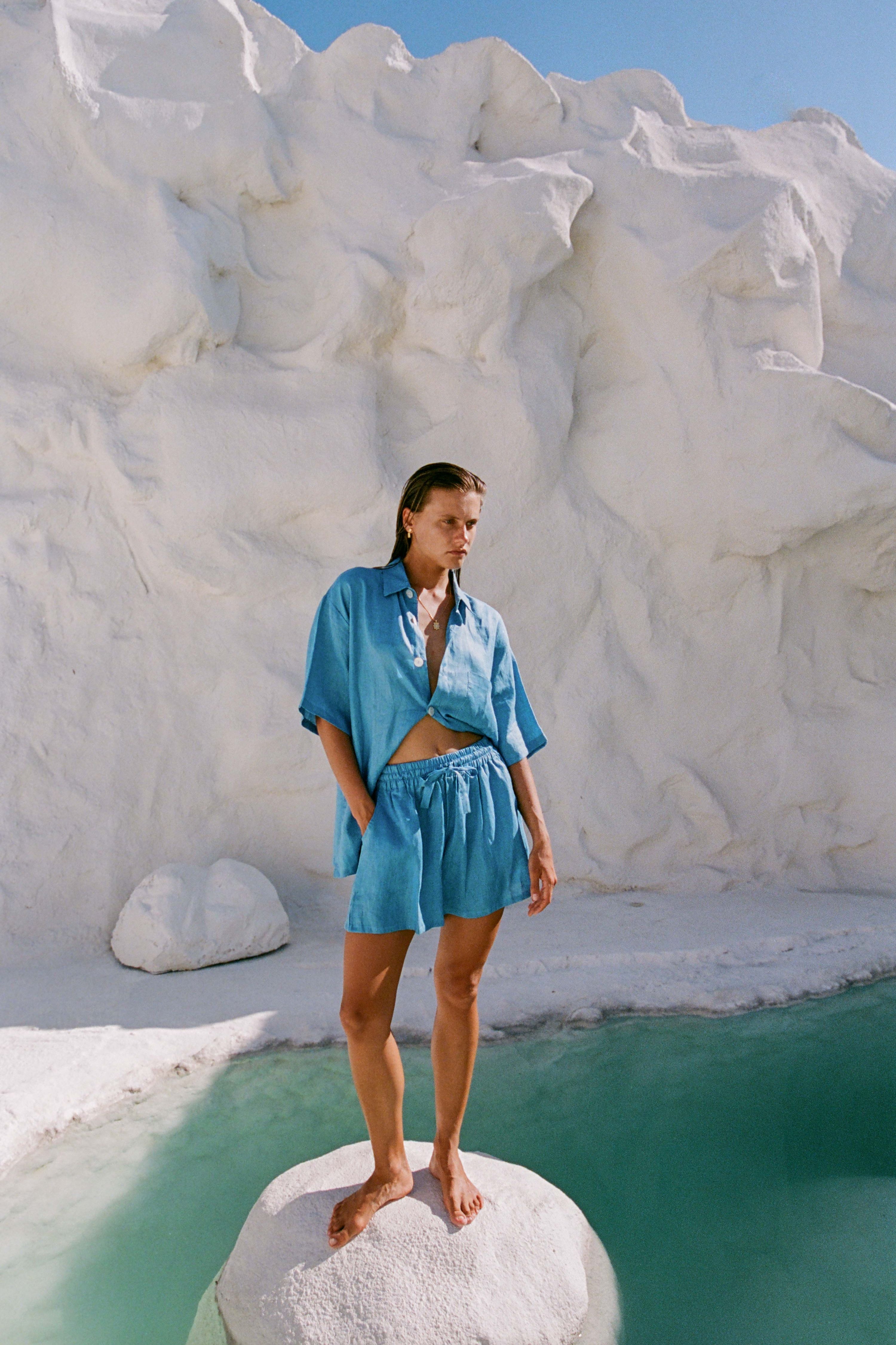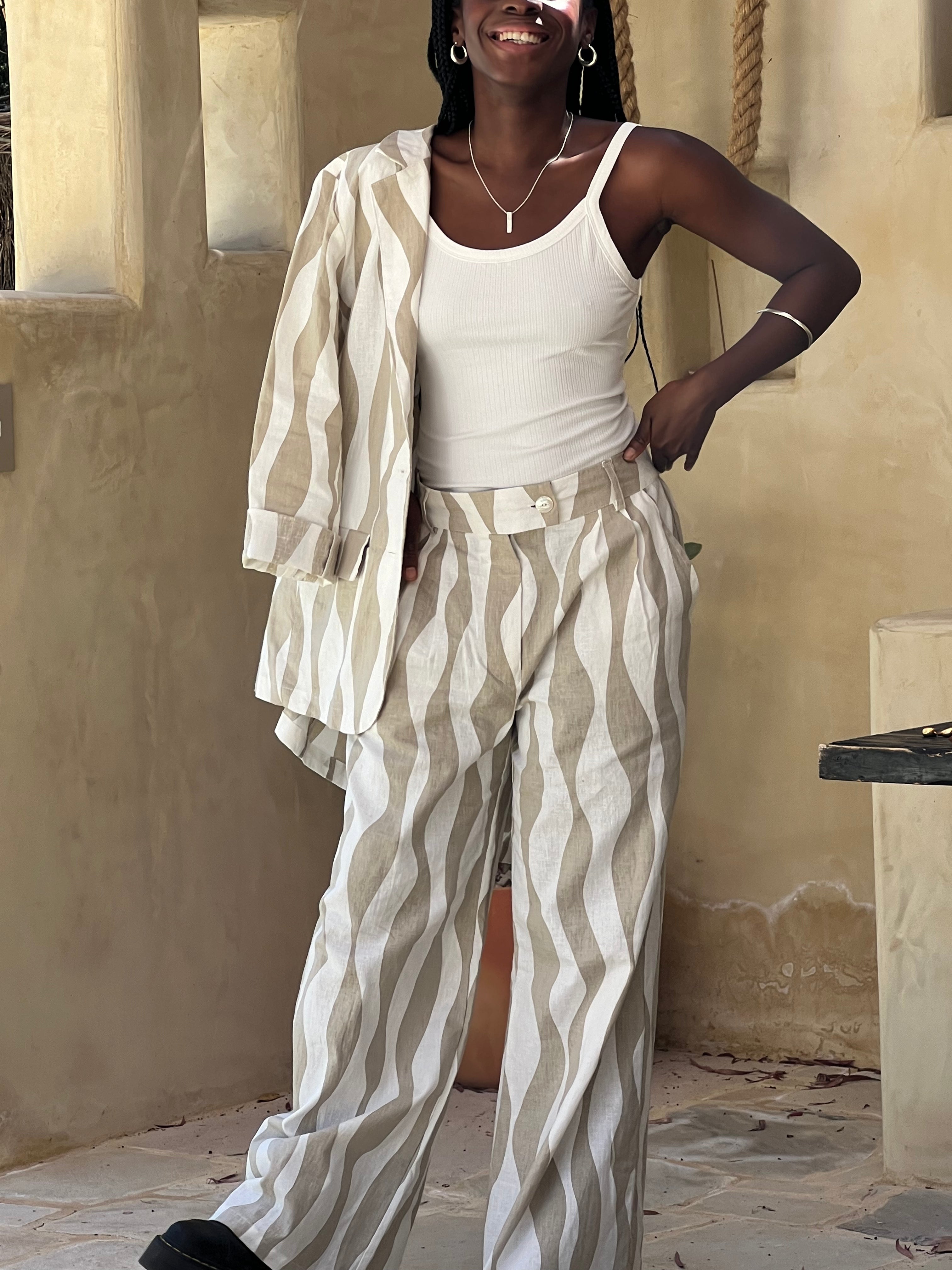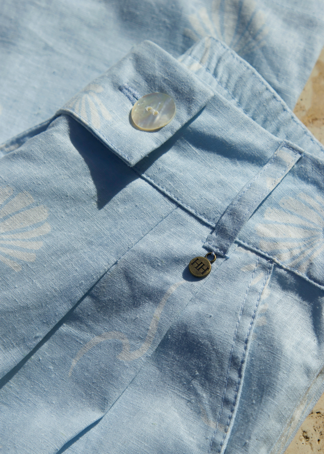 With a palette inspired by the ocean hues, our collection features a breezy Organic Hemp & Cotton fabric, coastal motifs, and custom designed abstract lines, ensuring you effortlessly embody the laid-back elegance of coastal chic.