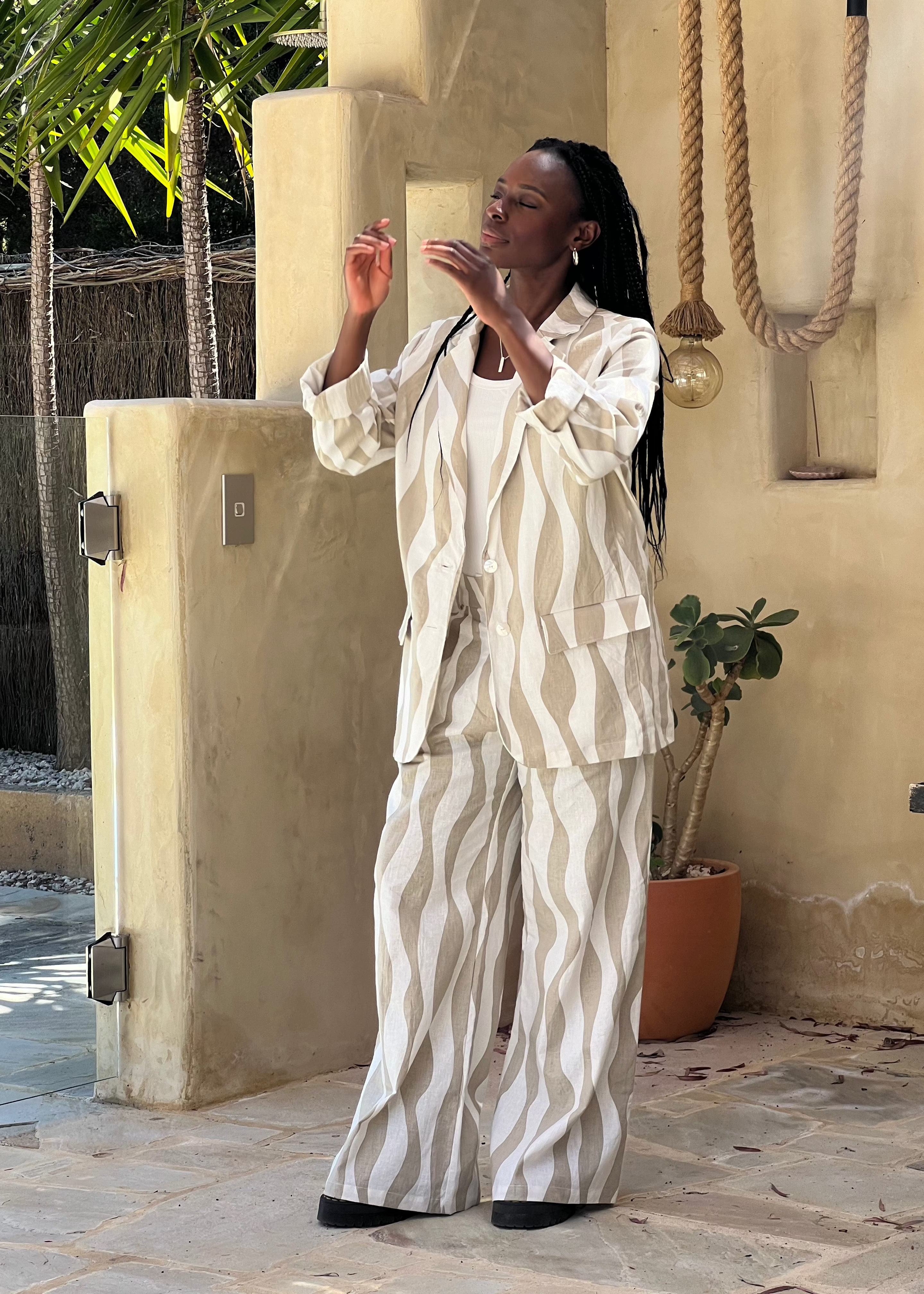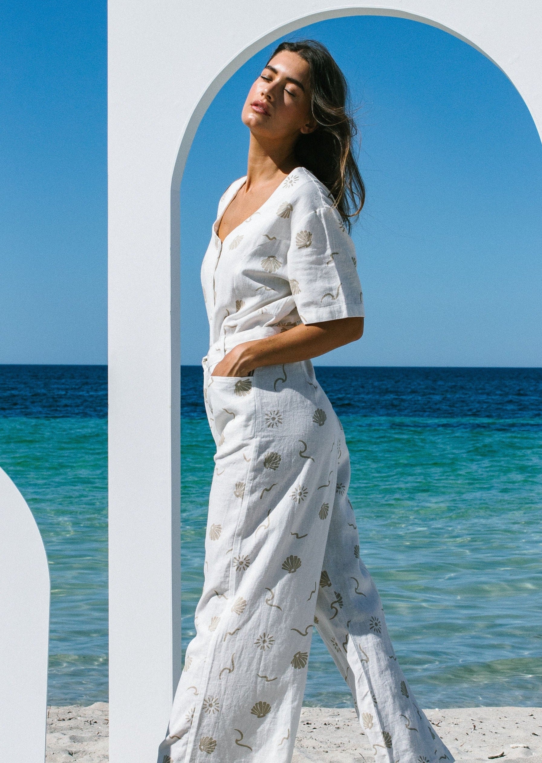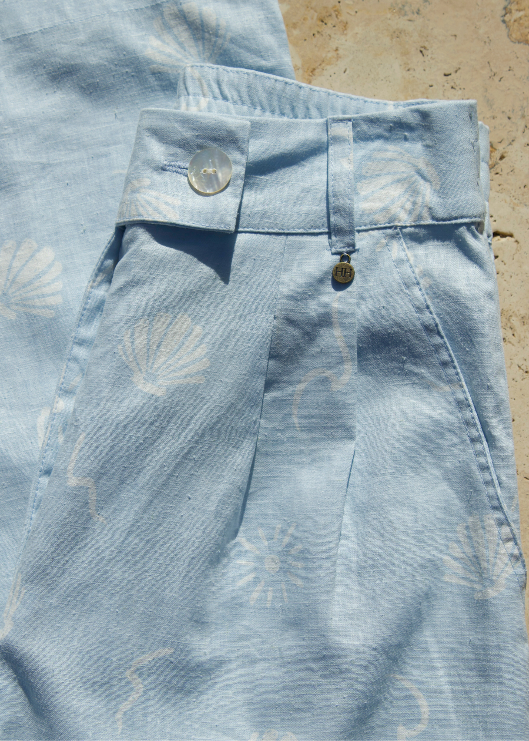 With a palette inspired by the ocean hues, our collection features a breezy Organic Hemp & Cotton fabric, coastal motifs, and custom designed abstract lines, ensuring you effortlessly embody the laid-back elegance of coastal chic.