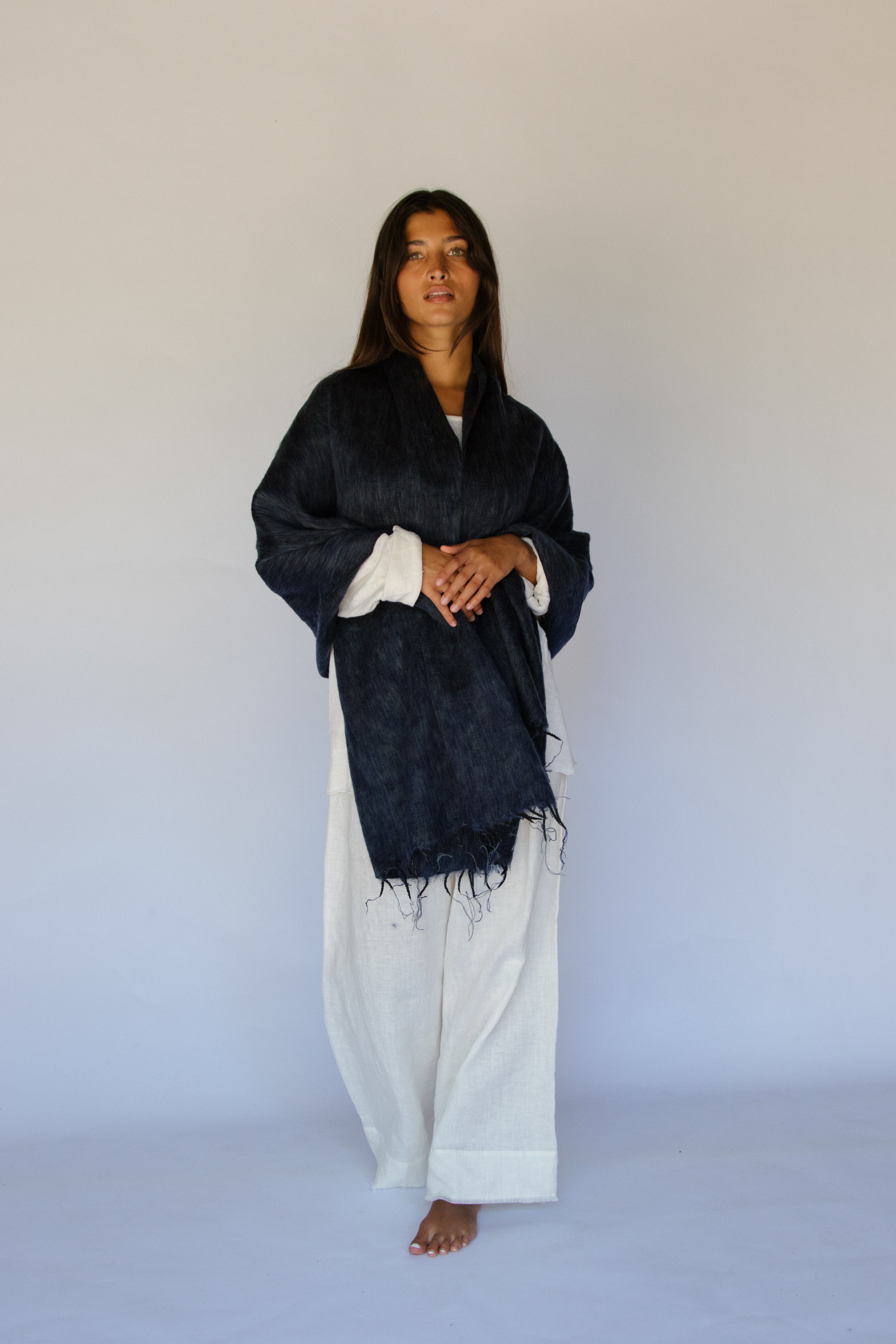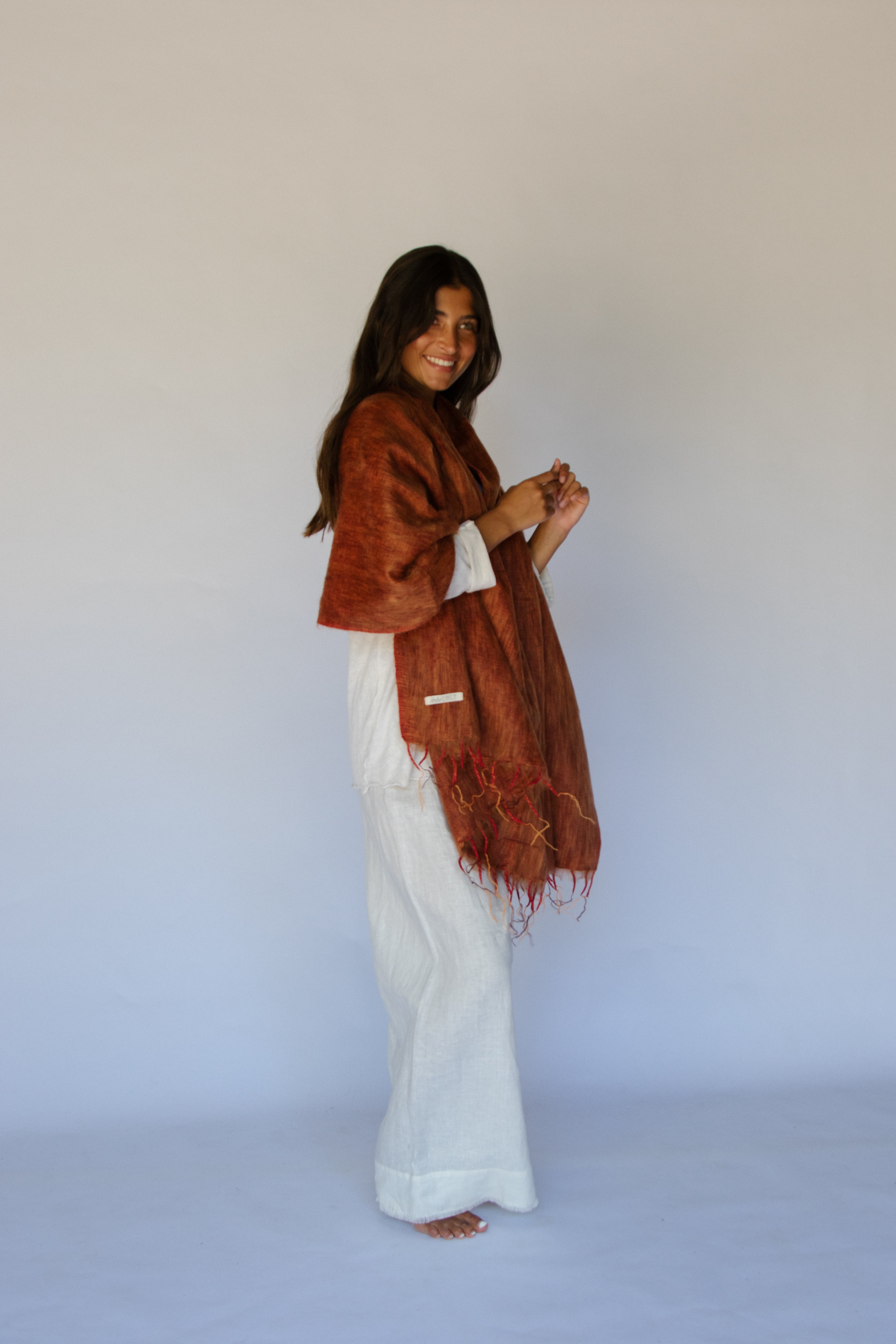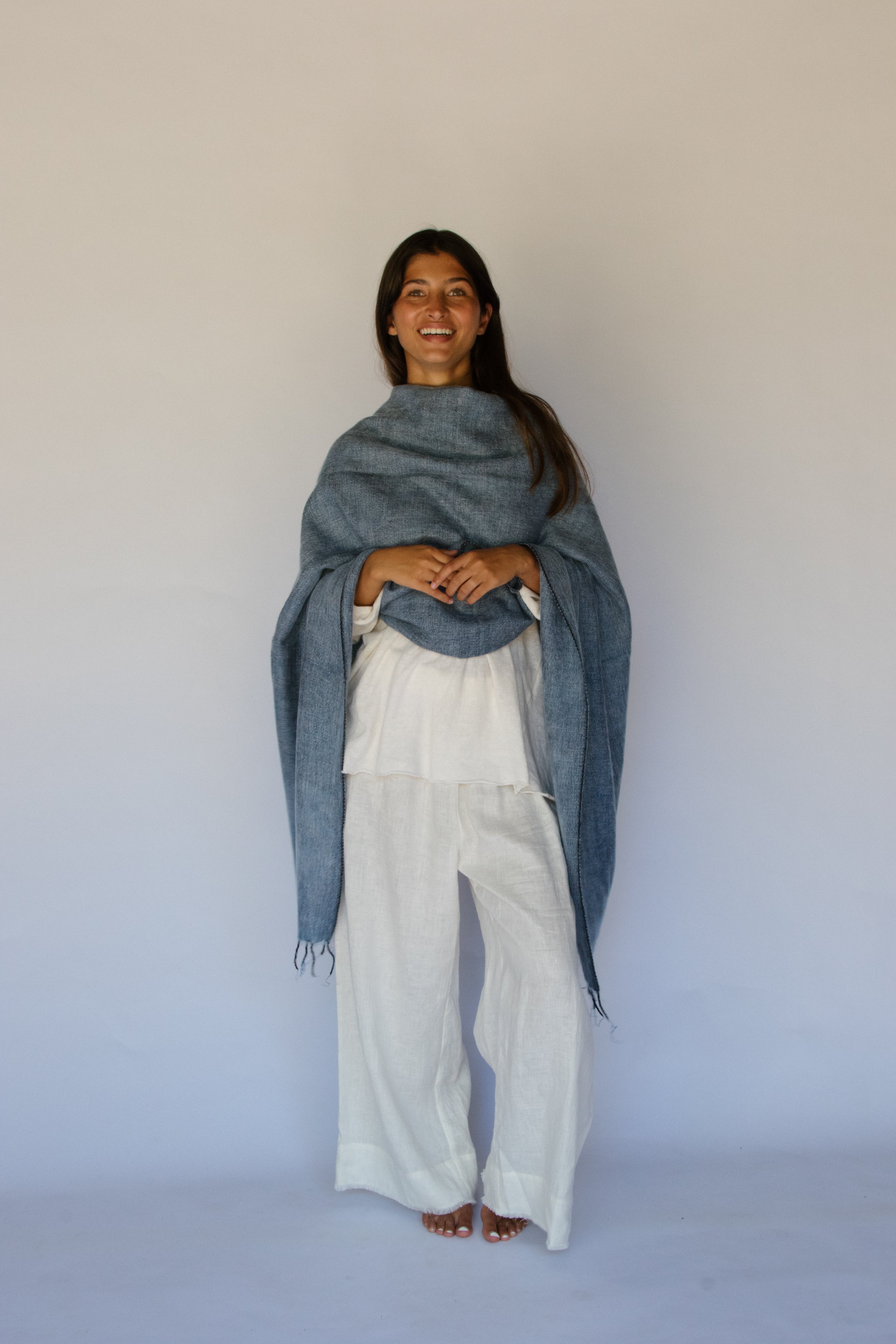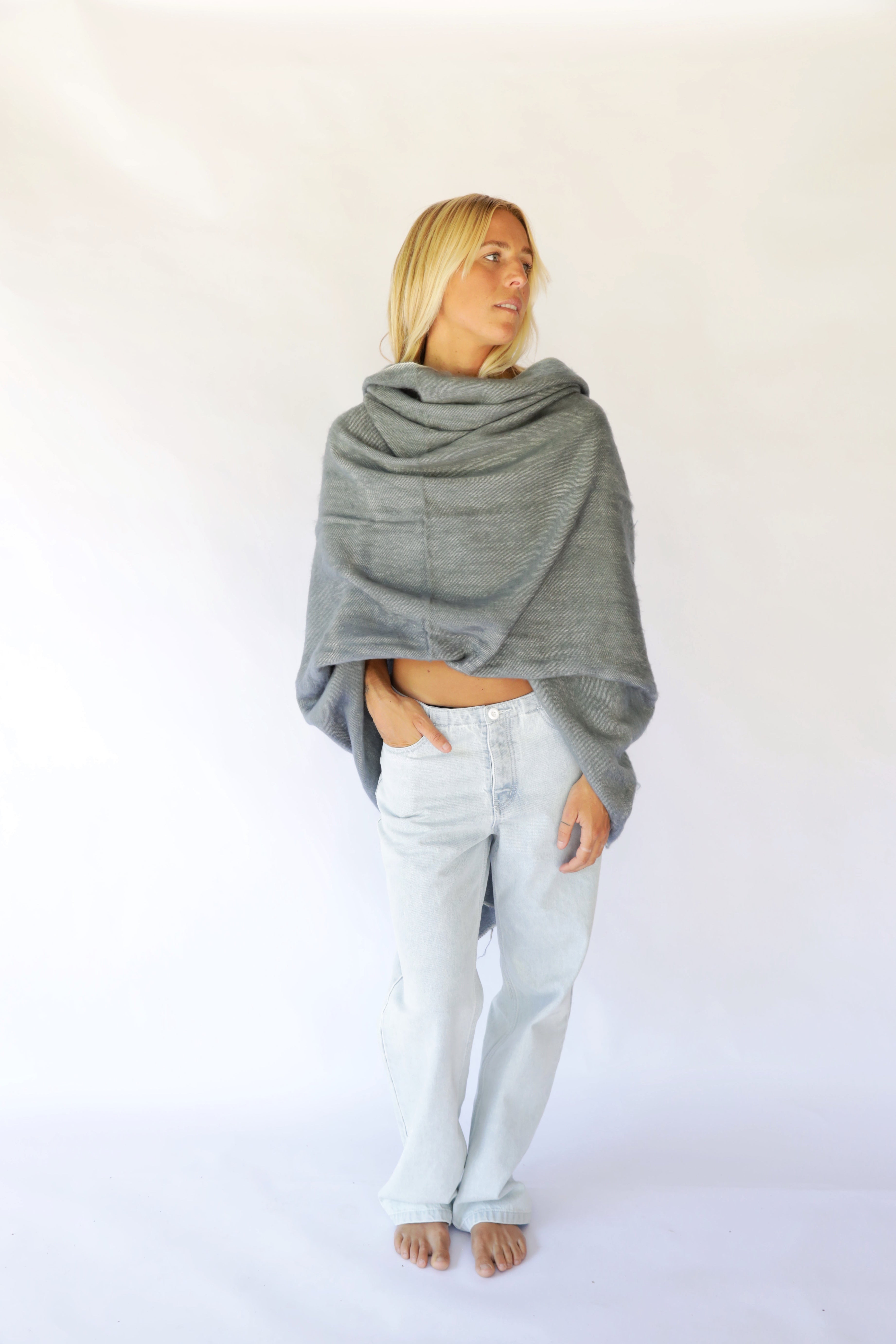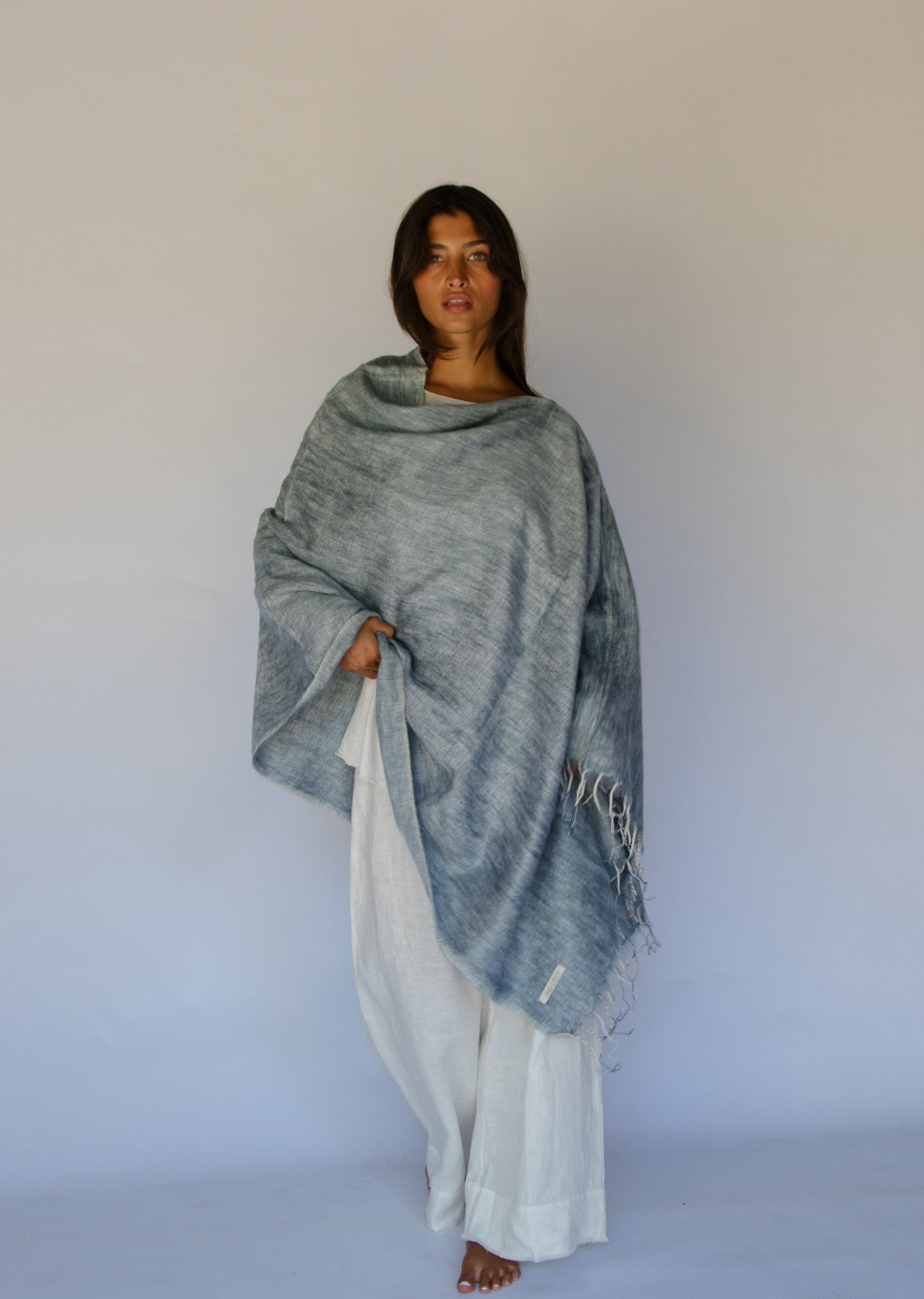Our shawl/wrap/scarf has multi uses. Style up or style down, its perfect for early morning yoga sessions and beach sun downers. The ideal travel companion who can be accessorised with your trashed denim or cocktail dress.