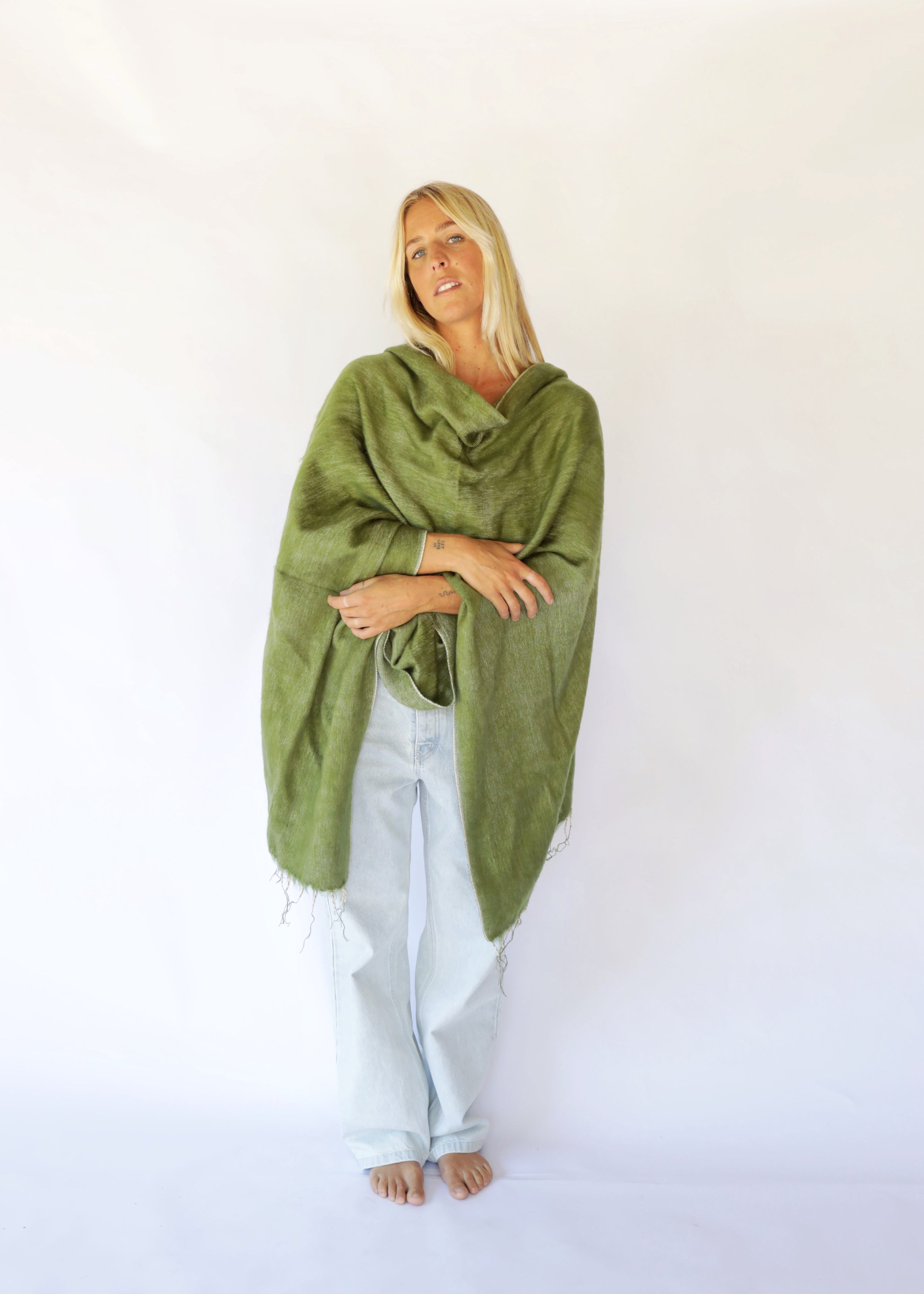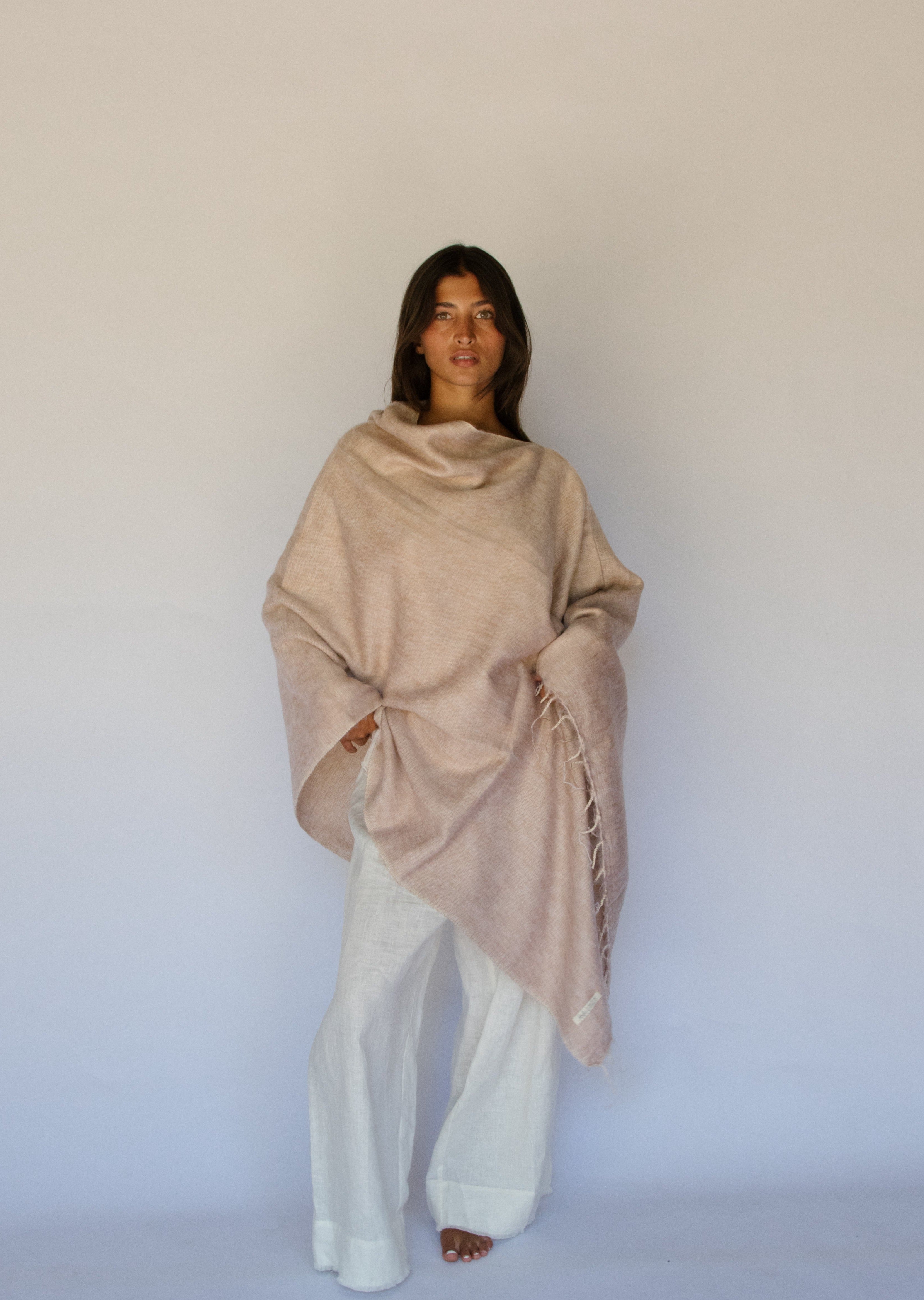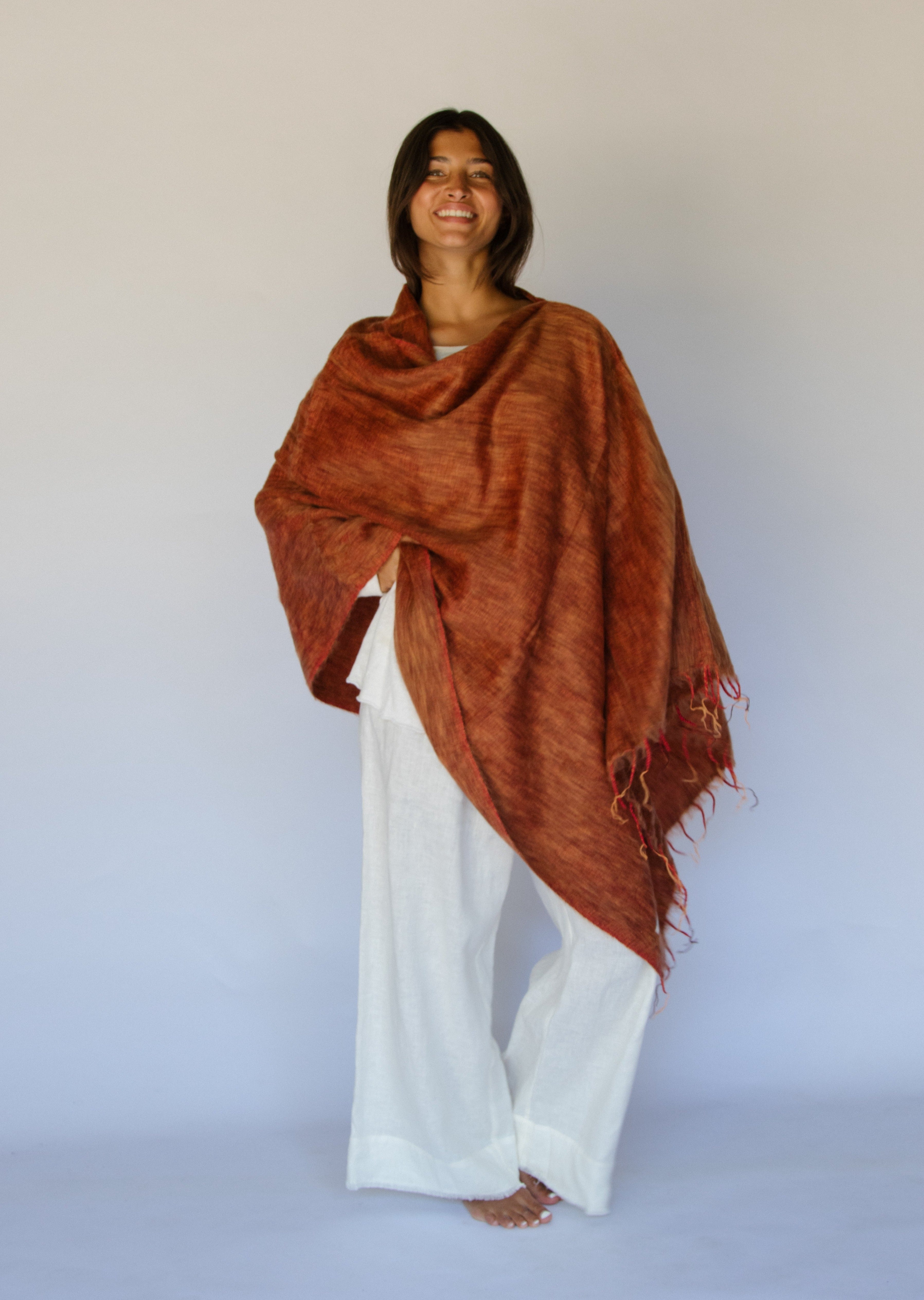 Hand woven in Nepal on majestic wooden looms using a soft, unique yarn and finished with perfectly twisted tassels.