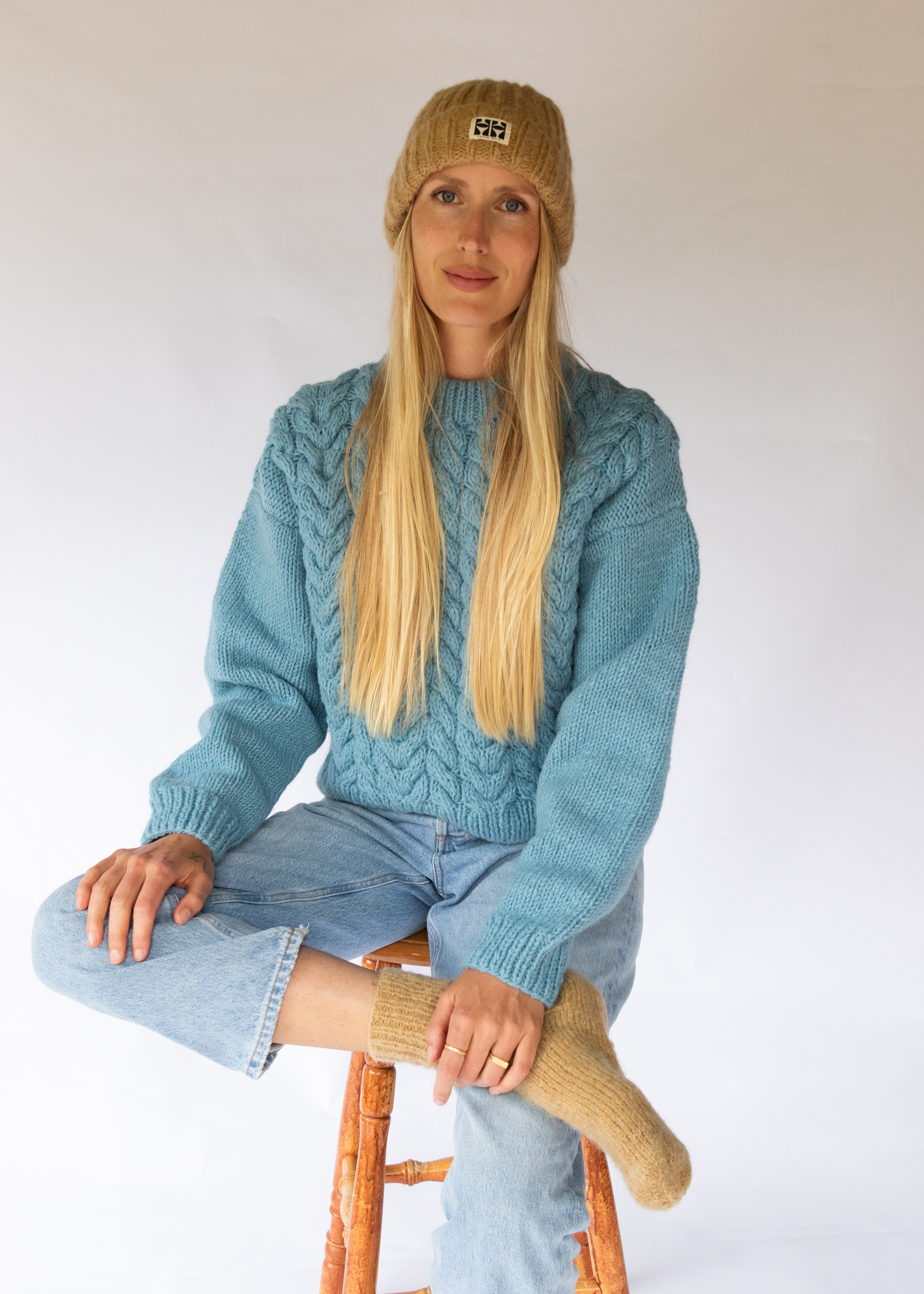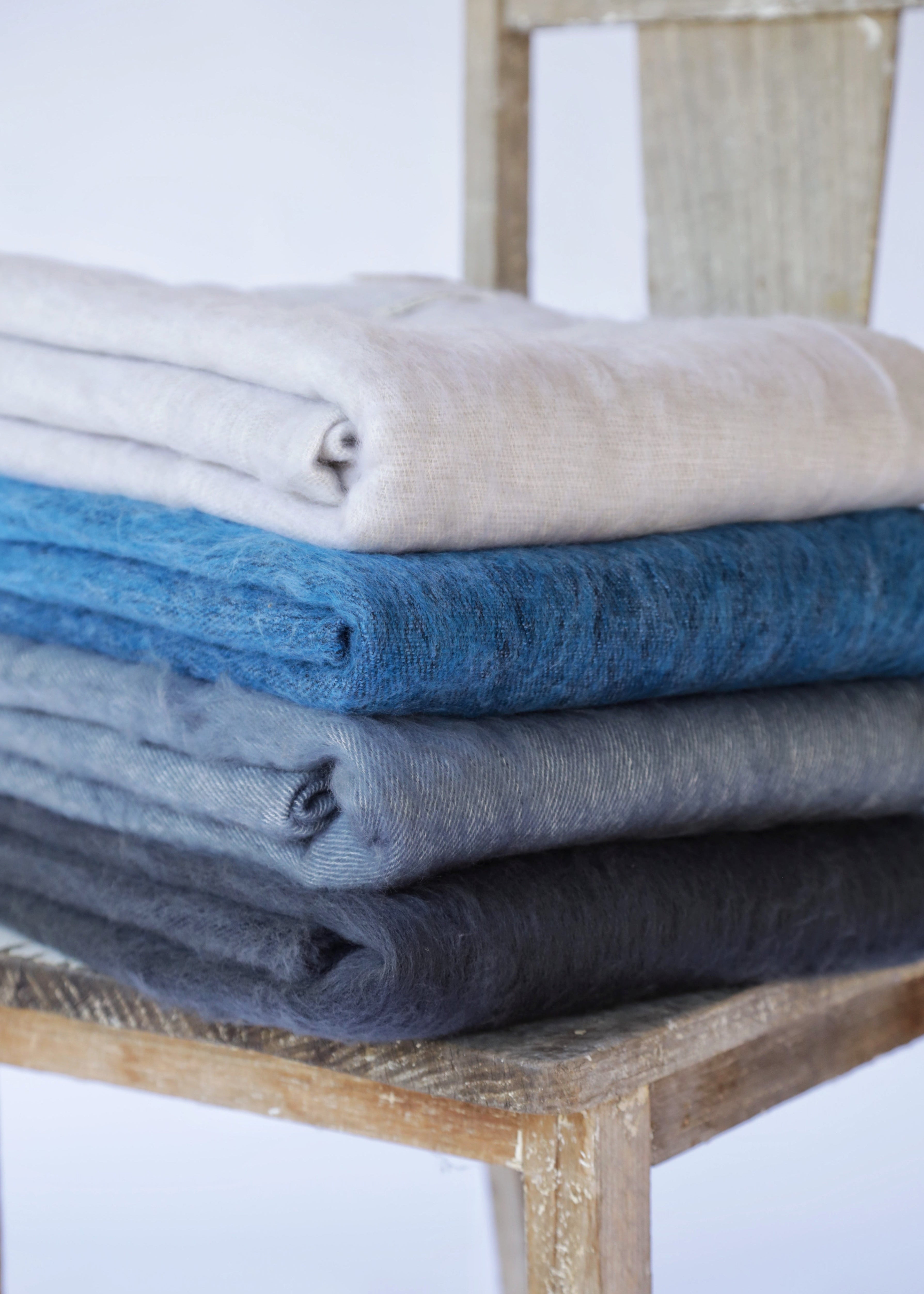 Mohair pieces and Wool + Mohair blends. Hand-knit with love by our beautiful team in Nepal.