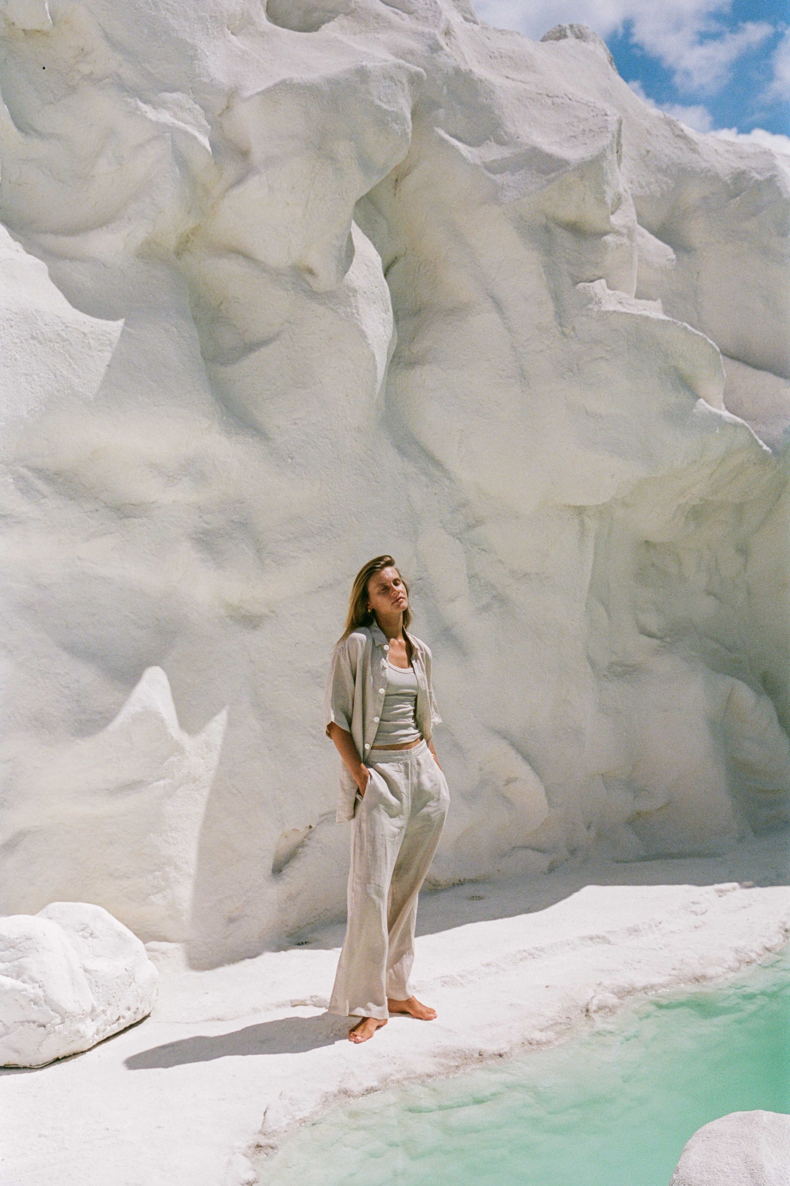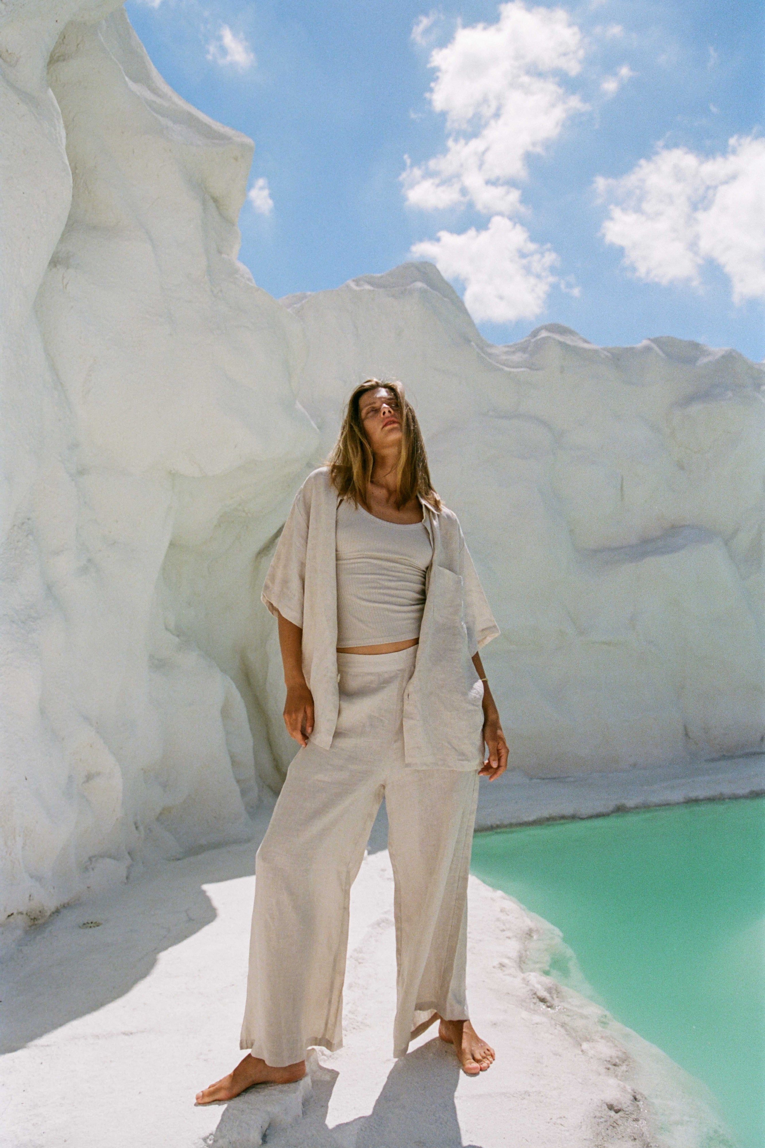Designed to be layered, seamlessly taking you from your morning Movement, long lunches, to your evening beach stroll. Mix and match to create outfits that combine the structured look of Linen with the flexibility of Eco Rib.