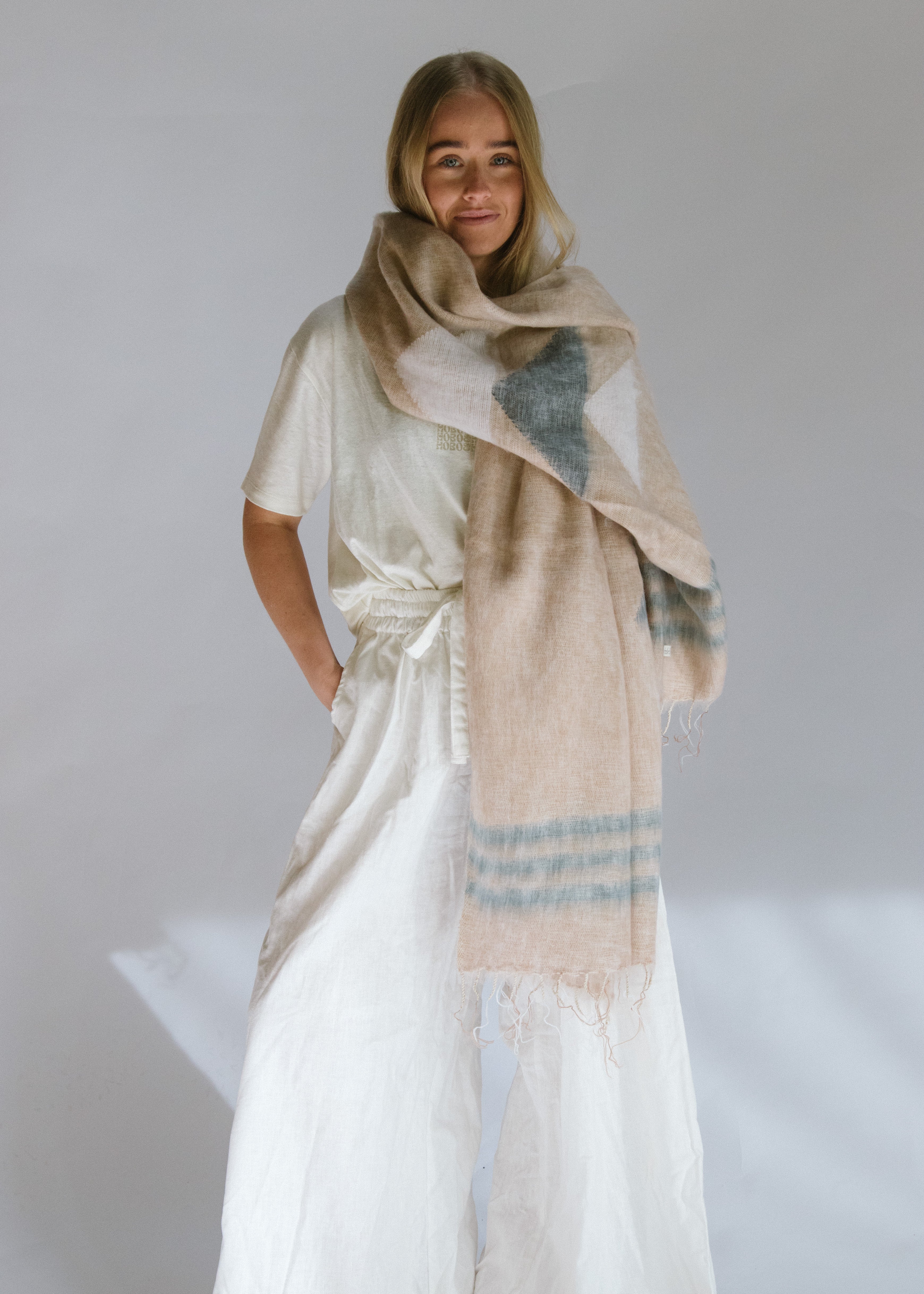 Our shawl/wrap/scarf is a versatile wardrobe must-have. Easily styled up or down, you’ll be reaching for this cosy piece time and time again throughout the cooler months.