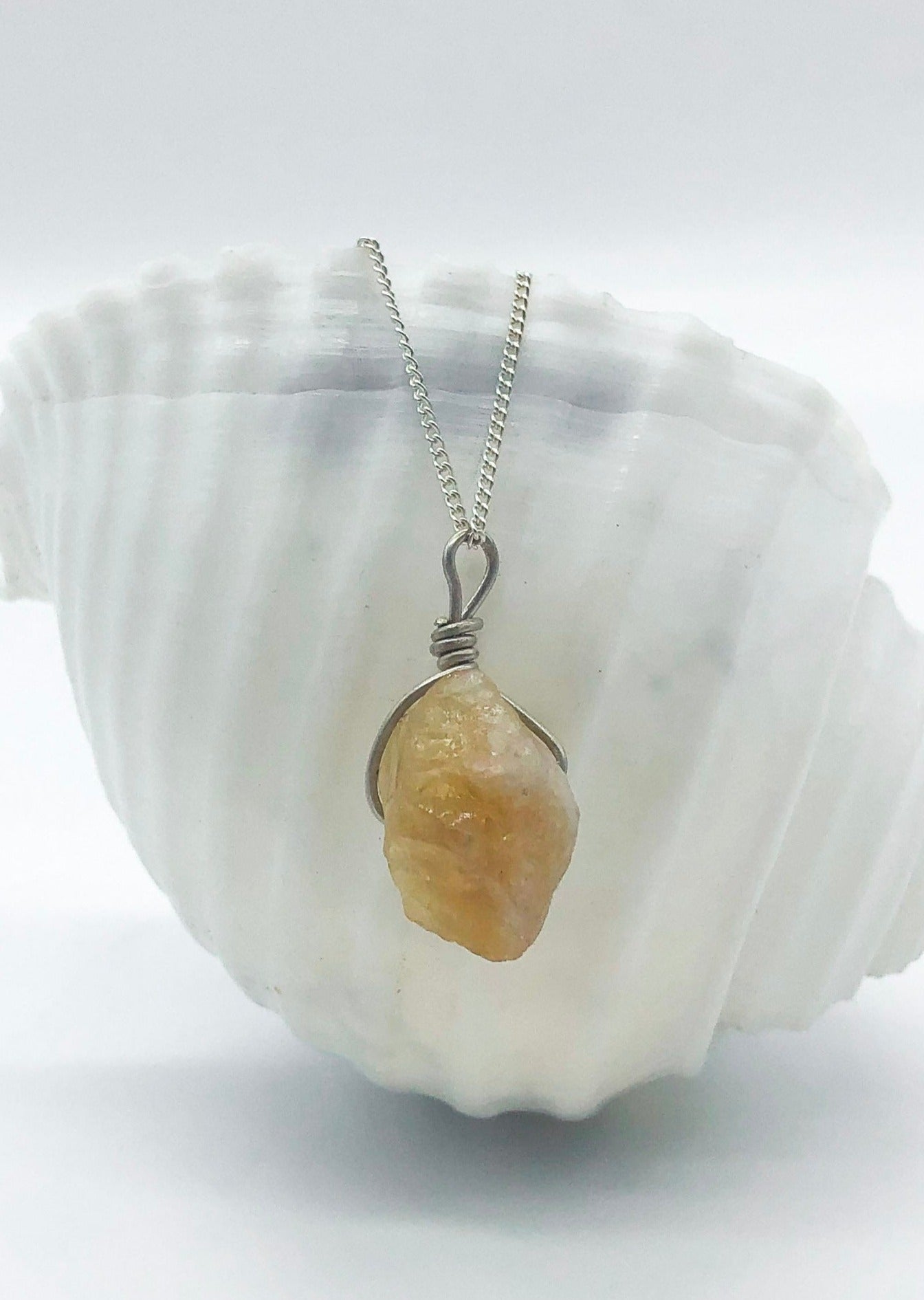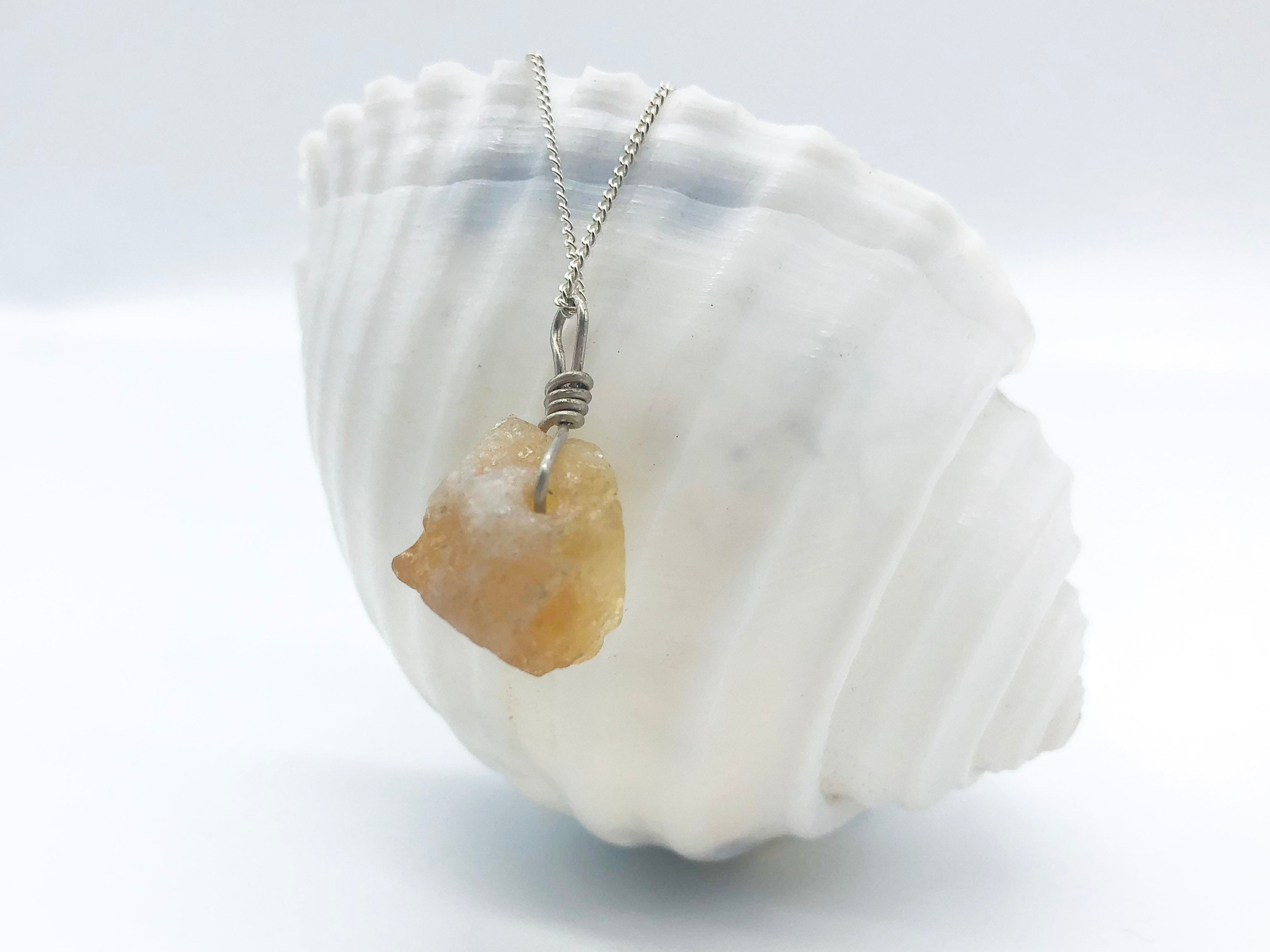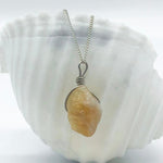 Raw Citrine pendant hangs from a fine Sterling Silver chain. Chain is adjustable with three lengths to choose from. As these necklaces are made using natural gemstone, each piece is completely unique.