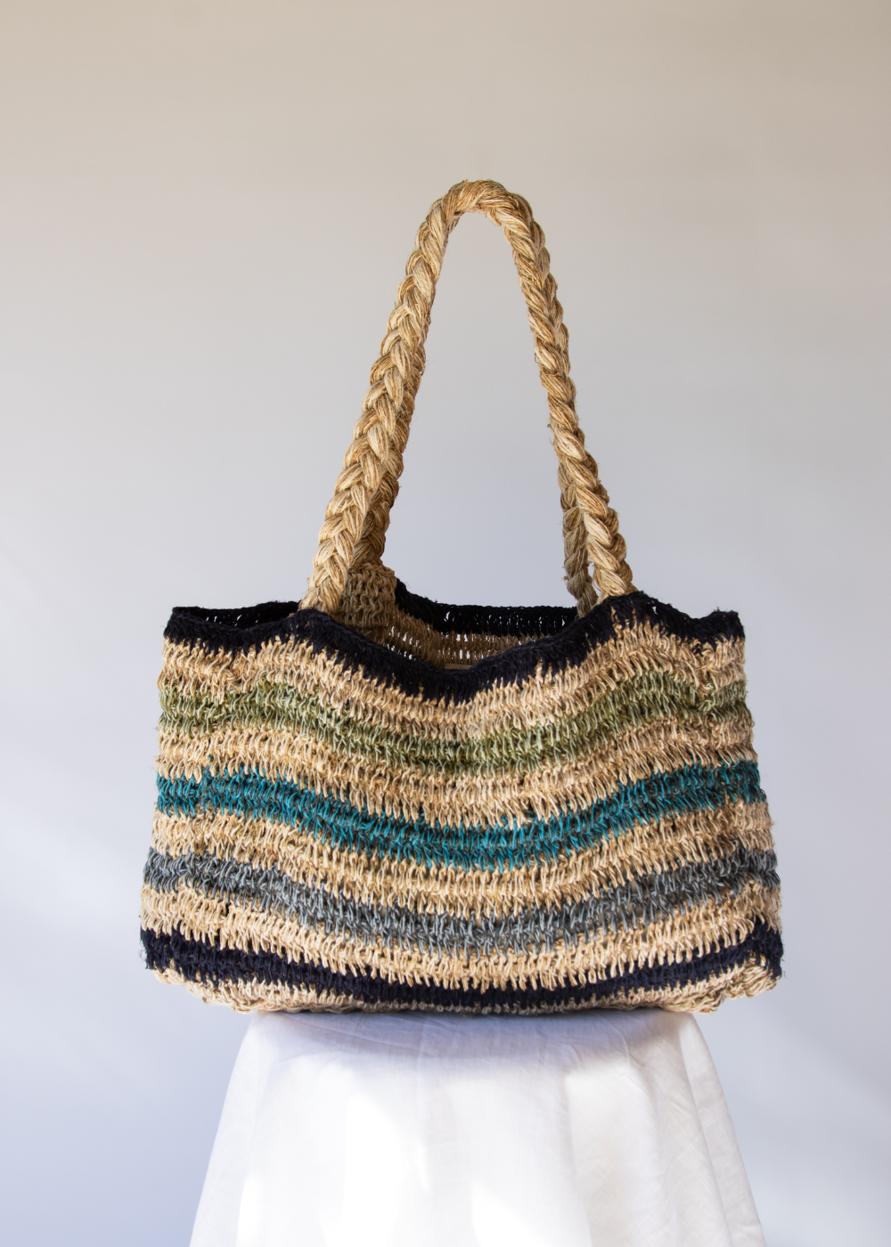 This oversized bag is handwoven in Nepal from a durable hemp and cotton blend. It features chunky plaited shoulder straps for added comfort and is roomy enough for market mornings, beach days, and everything in between.