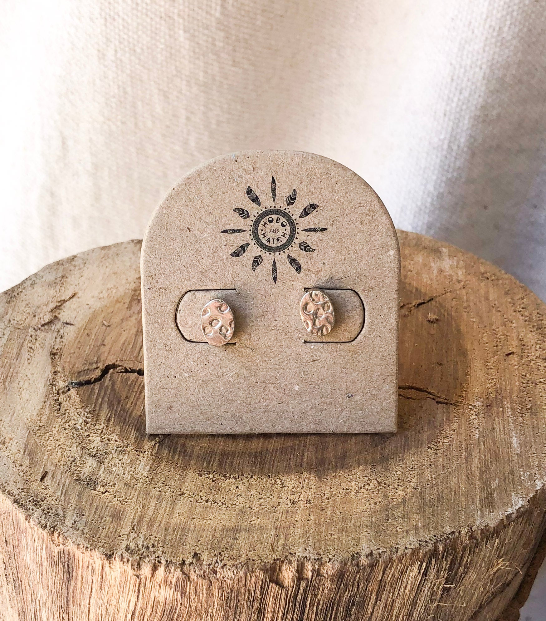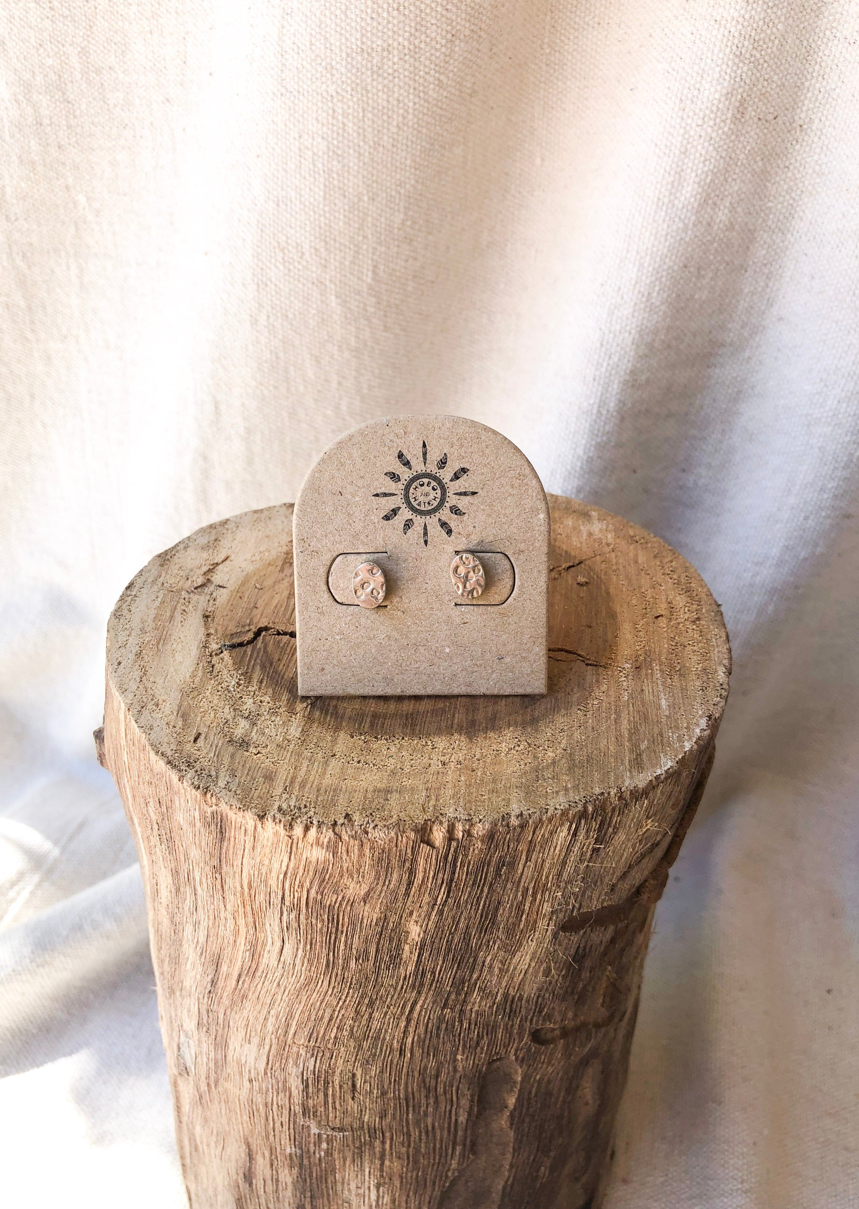 Hammered Silver Oval studs. The beaten Silver creates a beautiful shimmer in the light. Perfect for everyday wear, or to finish off any outfit.