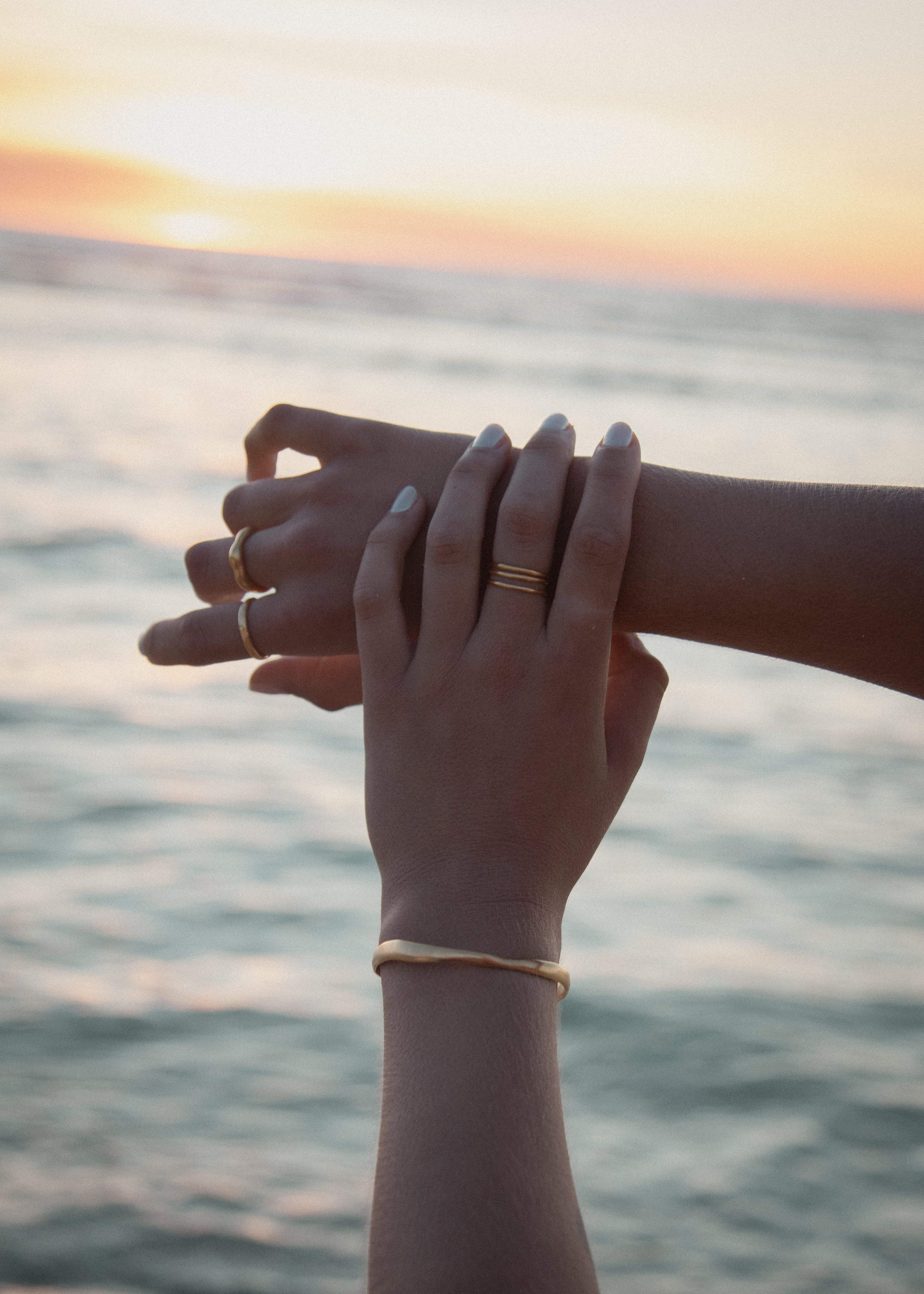 The Lagoon stackers are a set of three dainty bands with slight curves, adding a natural, earthy feel.