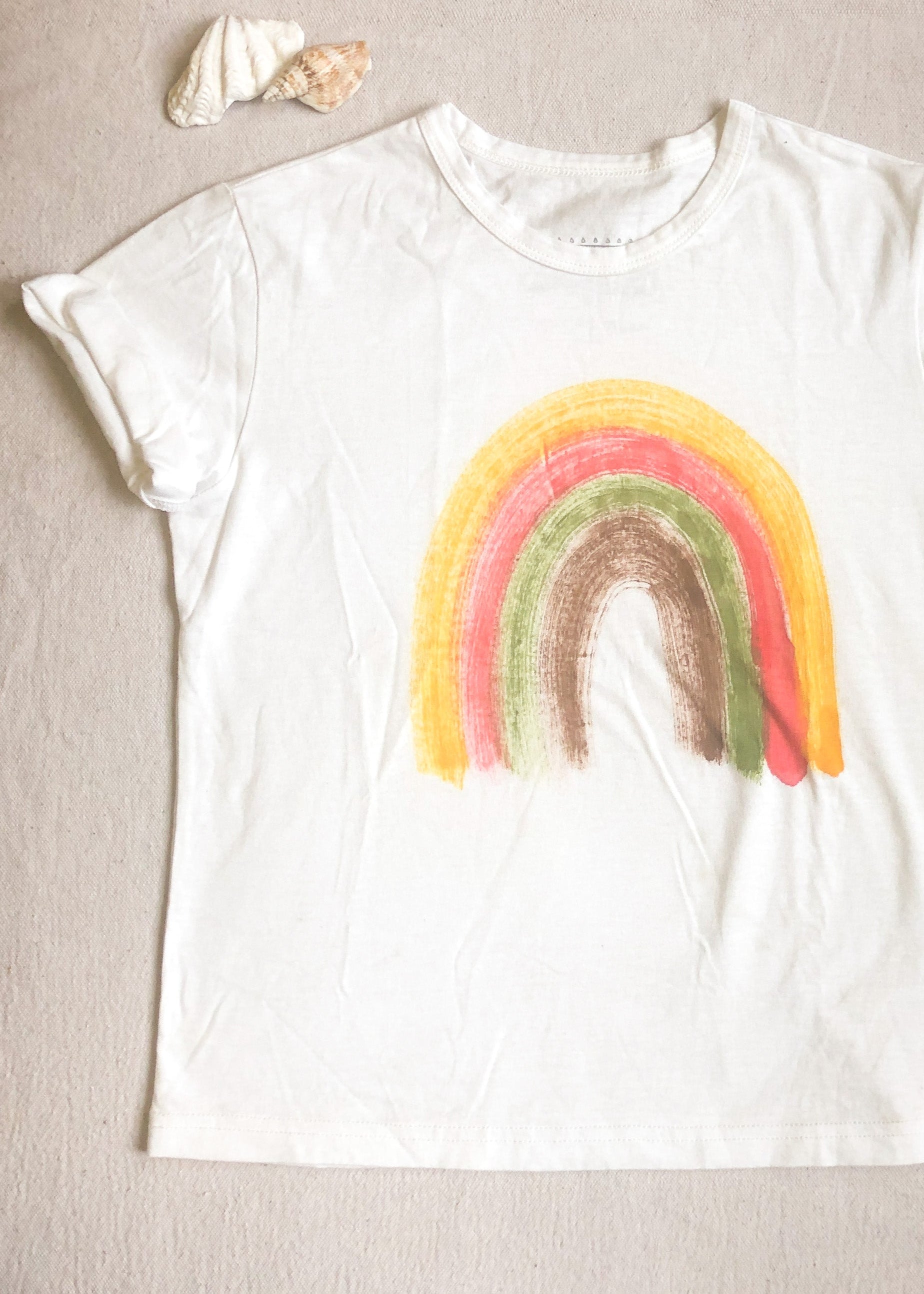 The sweetest organic cotton tee to brighten up your little ones wardrobe. Featuring a hand painted rainbow design, this tee will be sure to be a favourite.