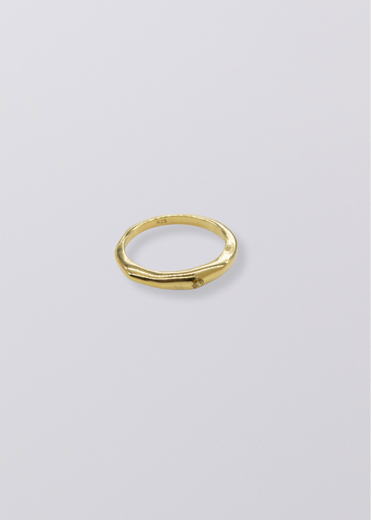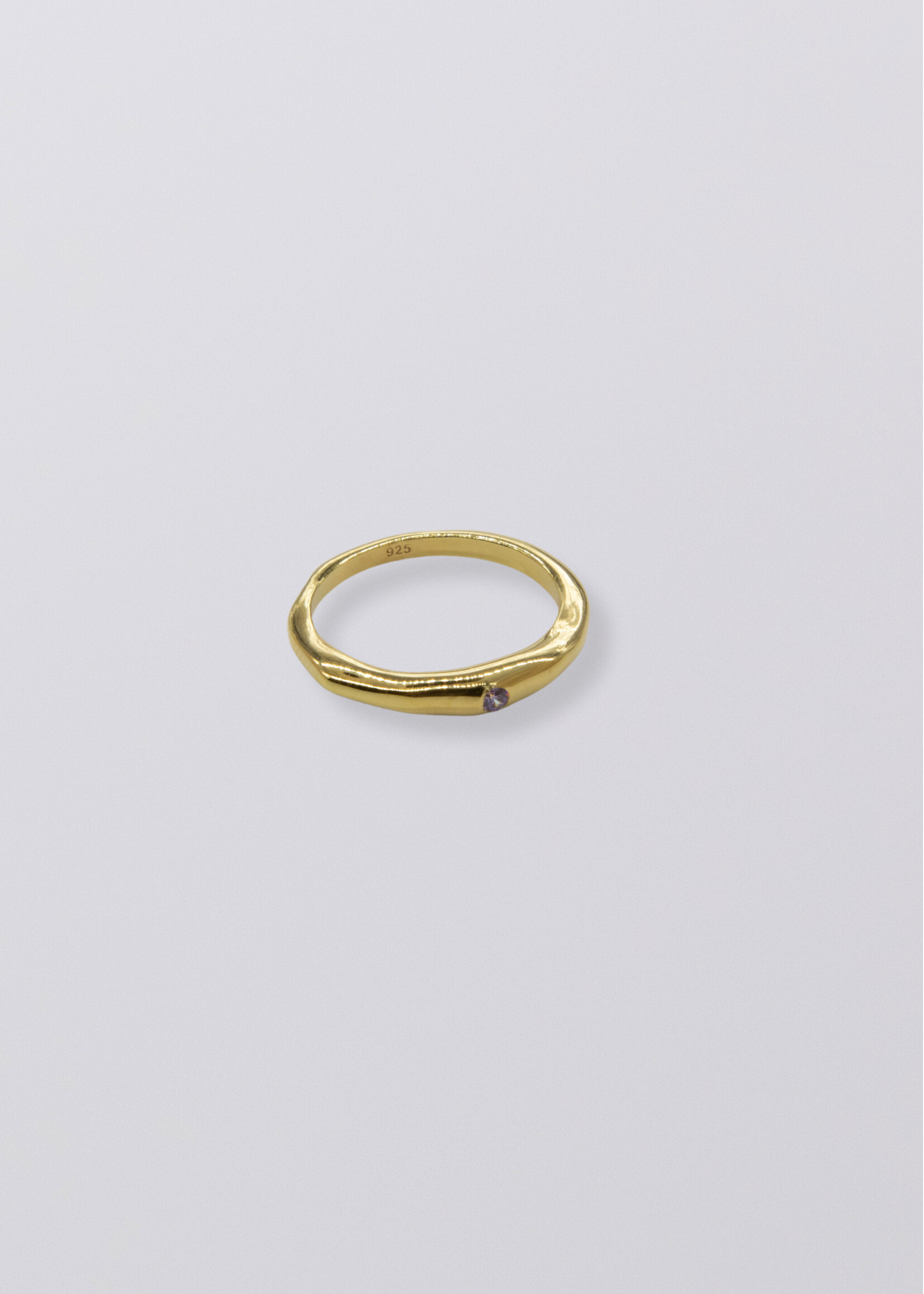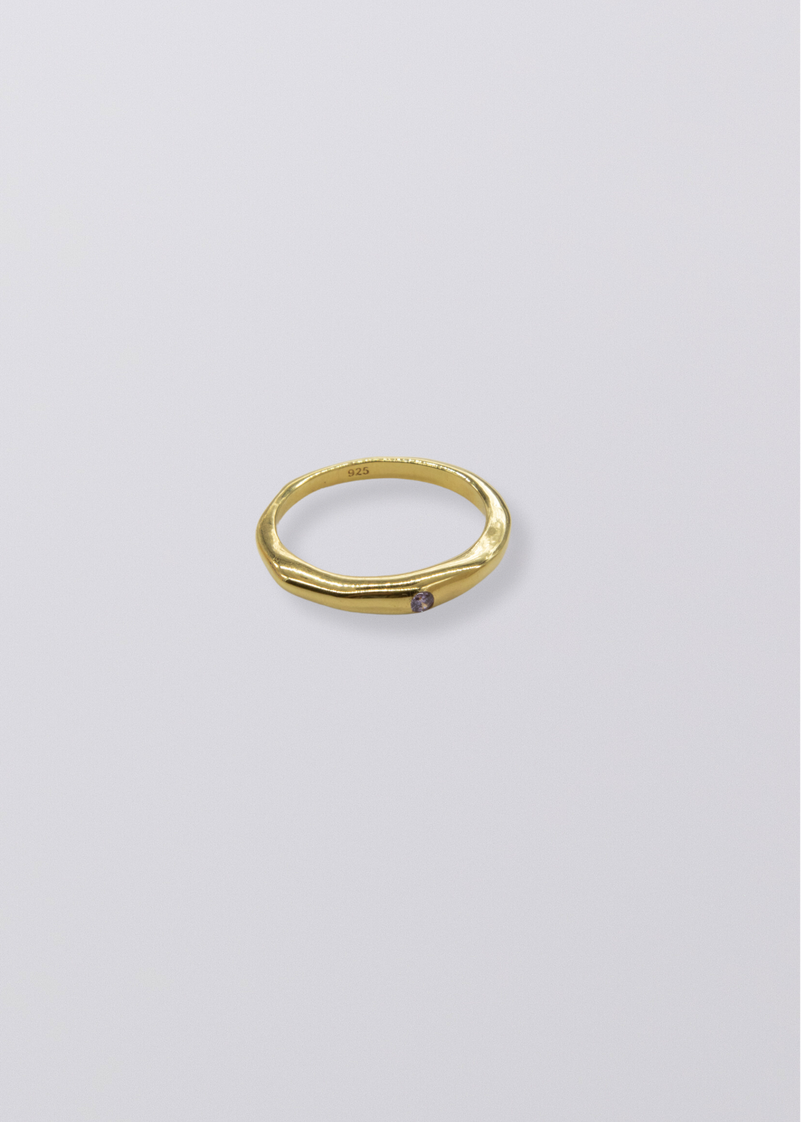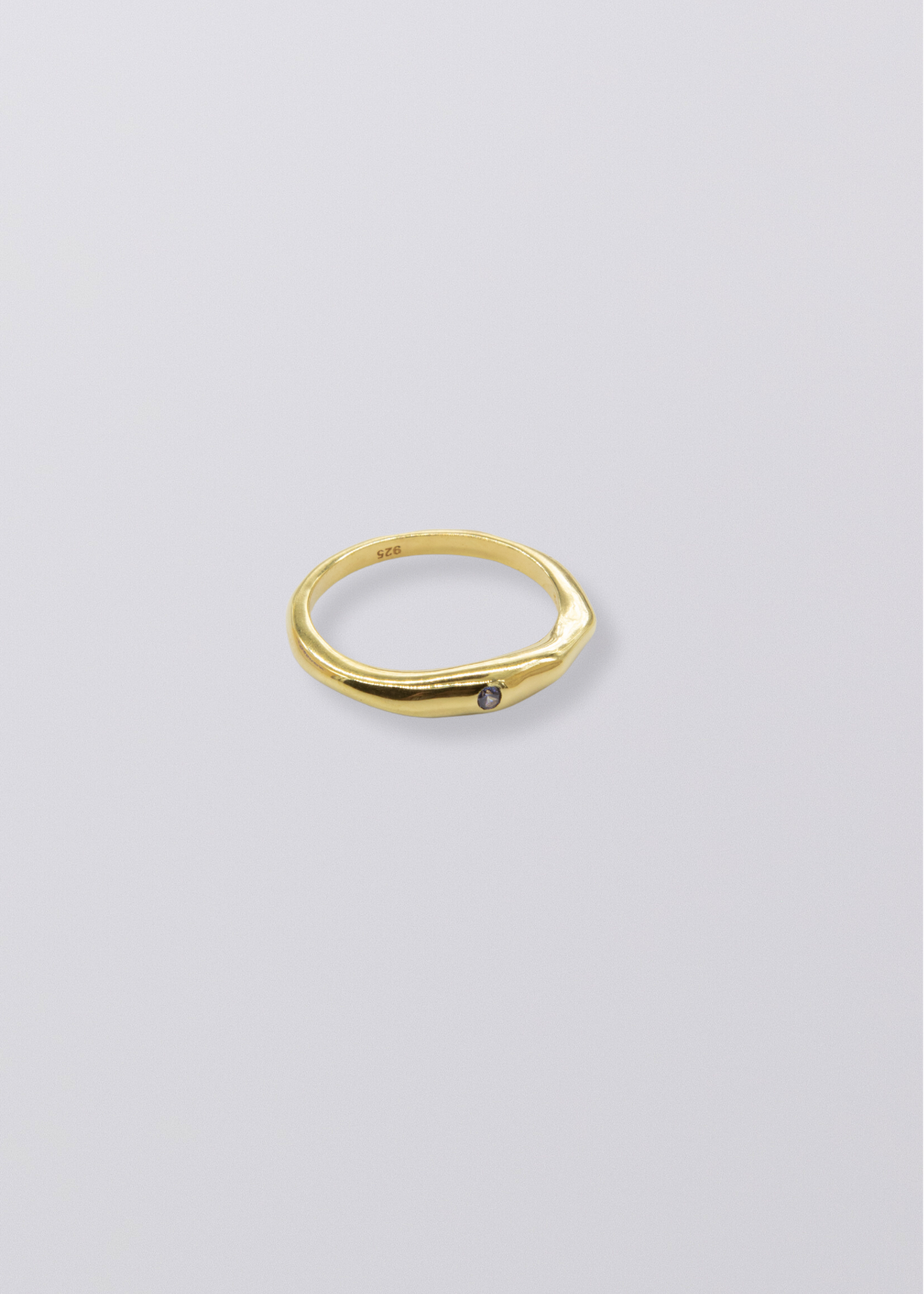 The Selene Ring is an imperfectly shaped band with a small stone set into the top of the ring. It is a timeless piece, designed to be worn on its own or stacked with your favourite gold pieces. With 12 stones to choose from, there is something for everyone.