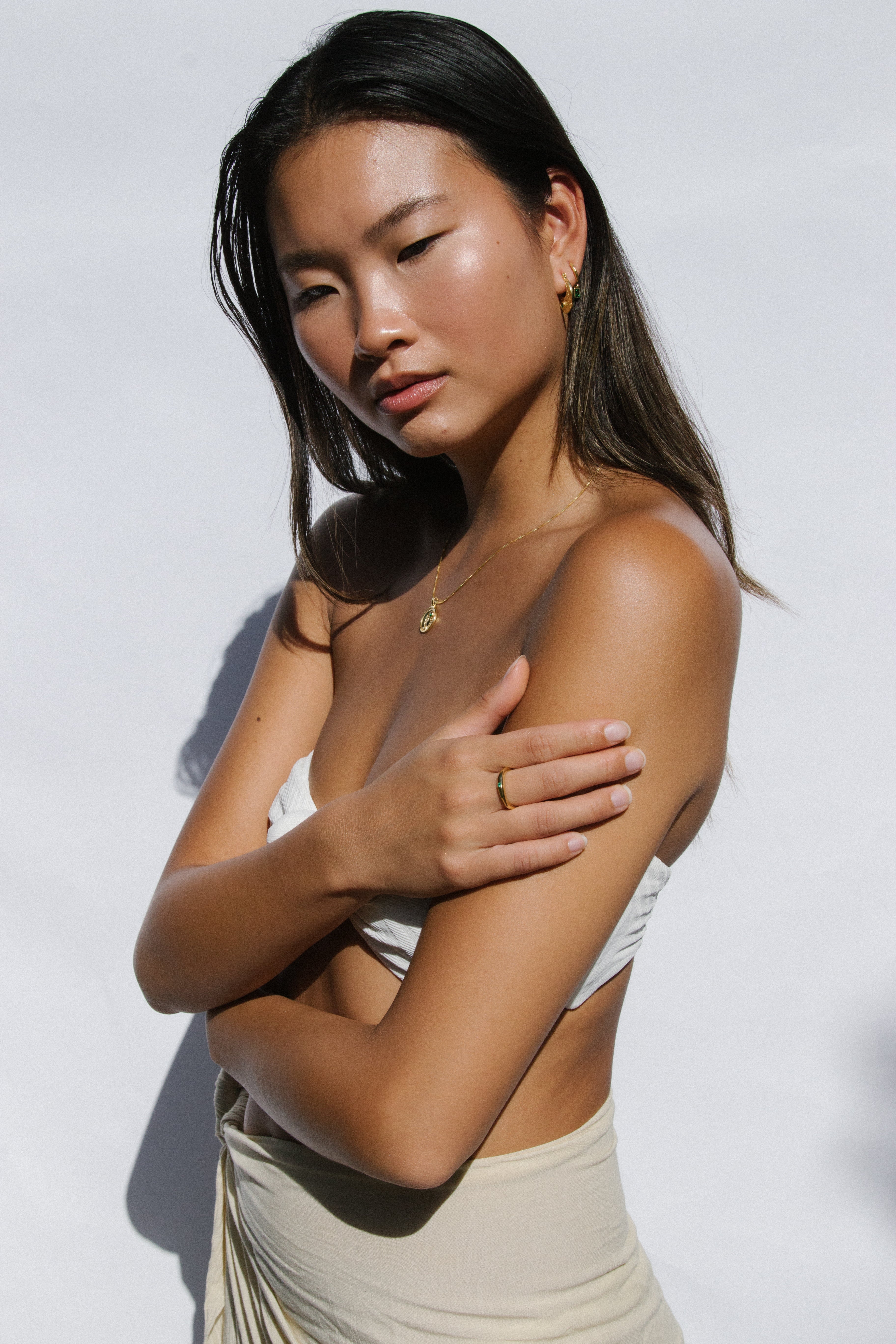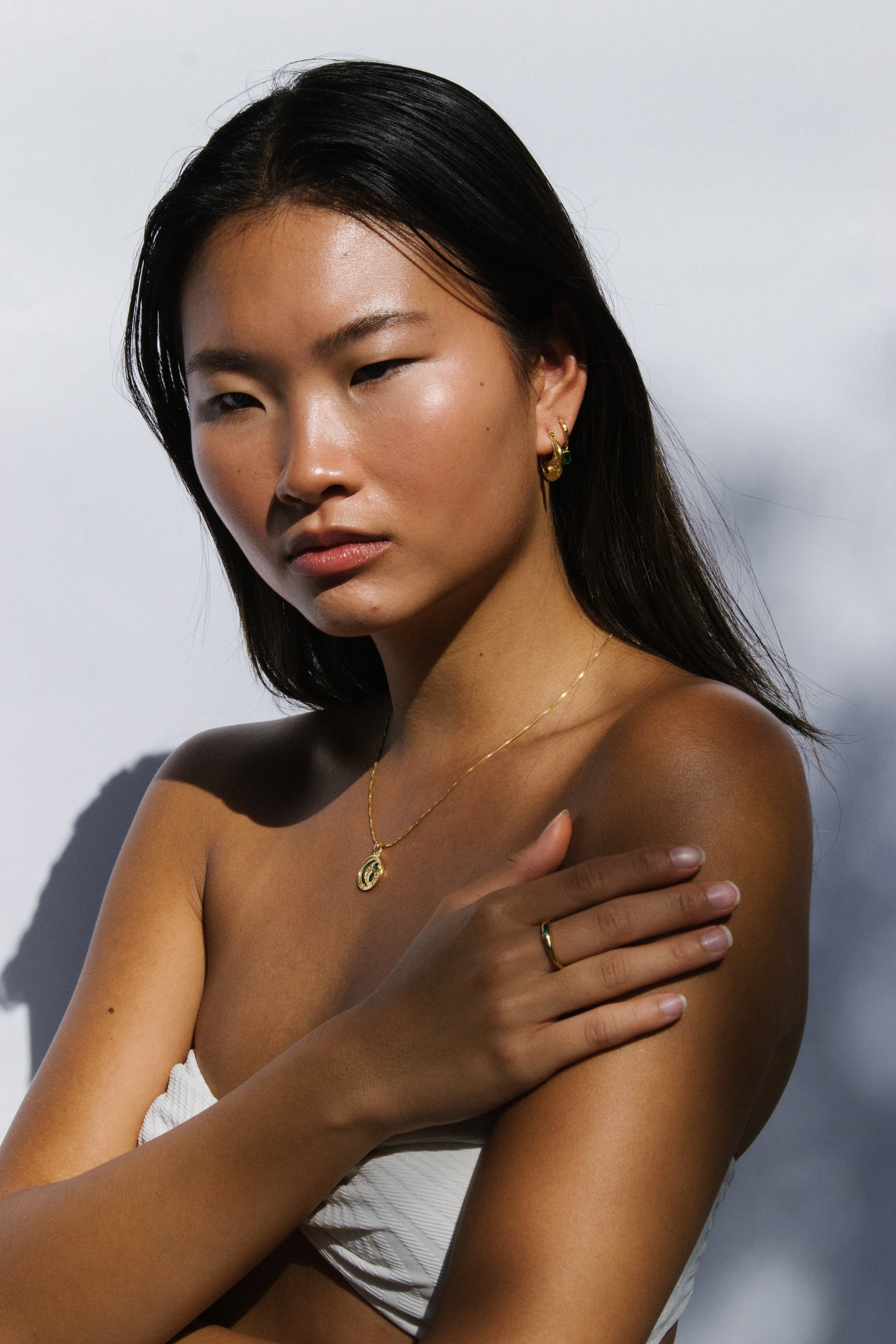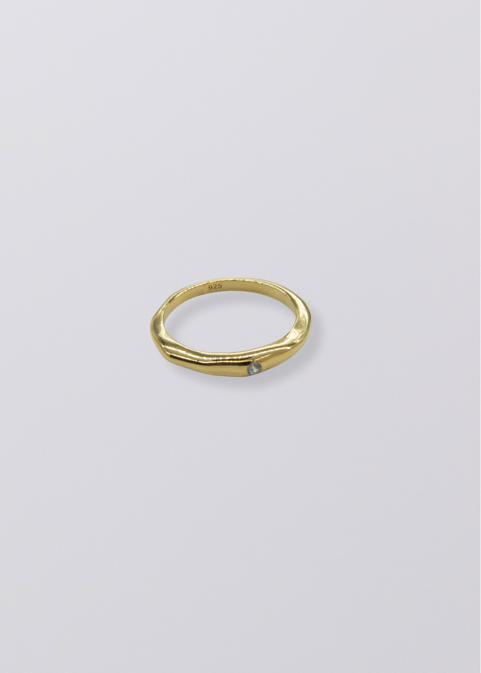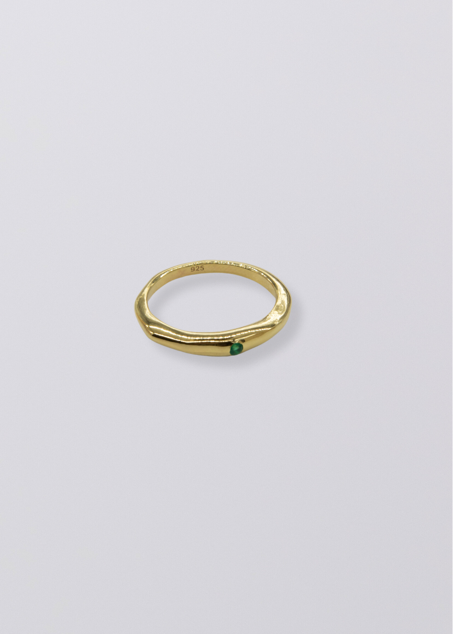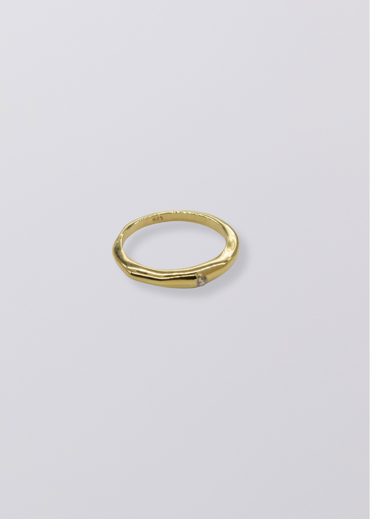 The Selene Ring is an imperfectly shaped band with a small stone set into the top of the ring. It is a timeless piece, designed to be worn on its own or stacked with your favourite gold pieces. With 12 stones to choose from, there is something for everyone.