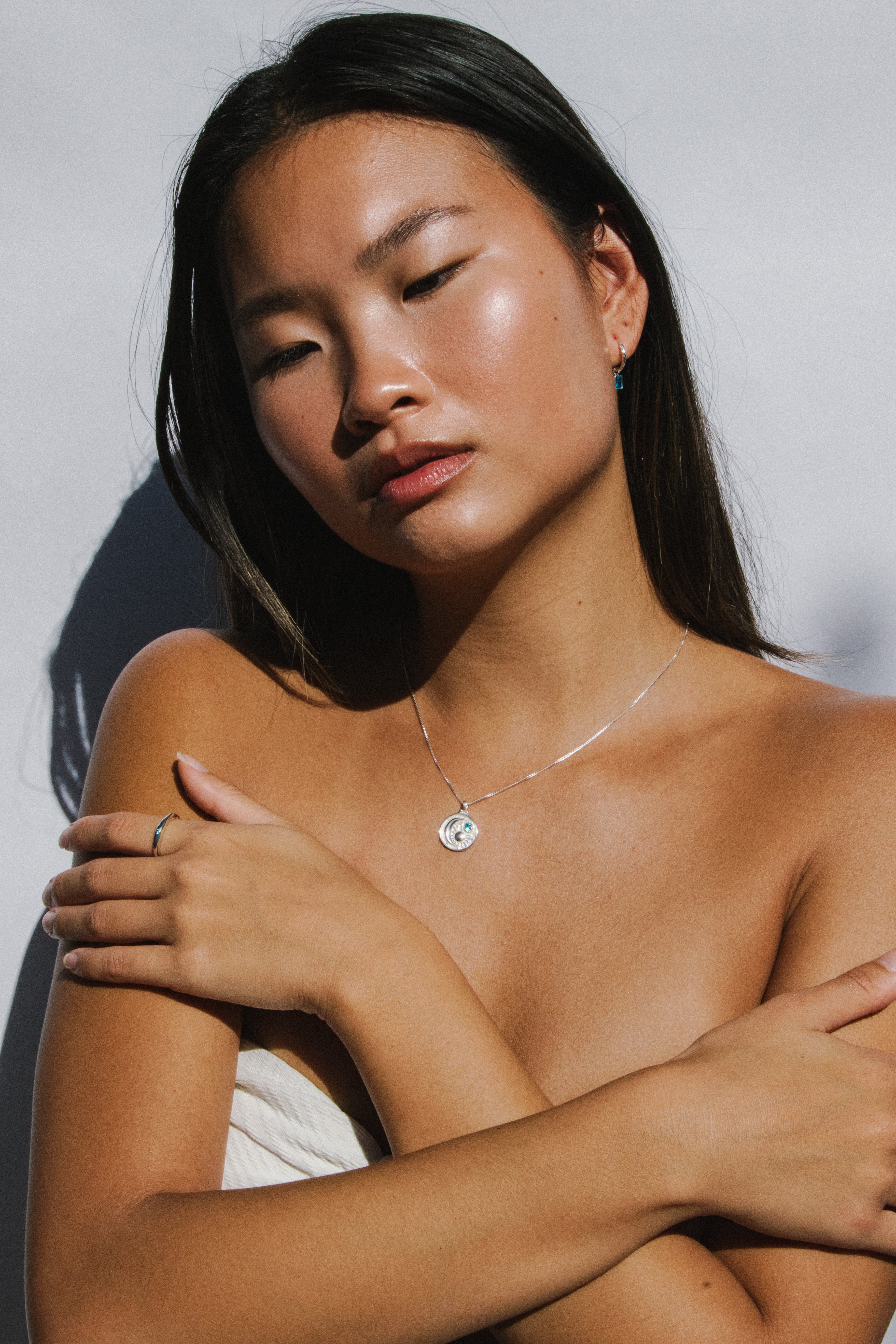 925 Sterling Silver is used in all pieces. Gold Vermeil pieces are a Sterling Silver base with a heavy layer of 18K Gold (2.5-3 microns) for an elevated option.