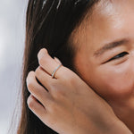 The Selene Ring is an imperfectly shaped band with a small stone set into the top of the ring. It is a timeless piece, designed to be worn on its own or stacked with your favourite gold pieces. With 12 stones to choose from, there is something for everyone.