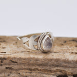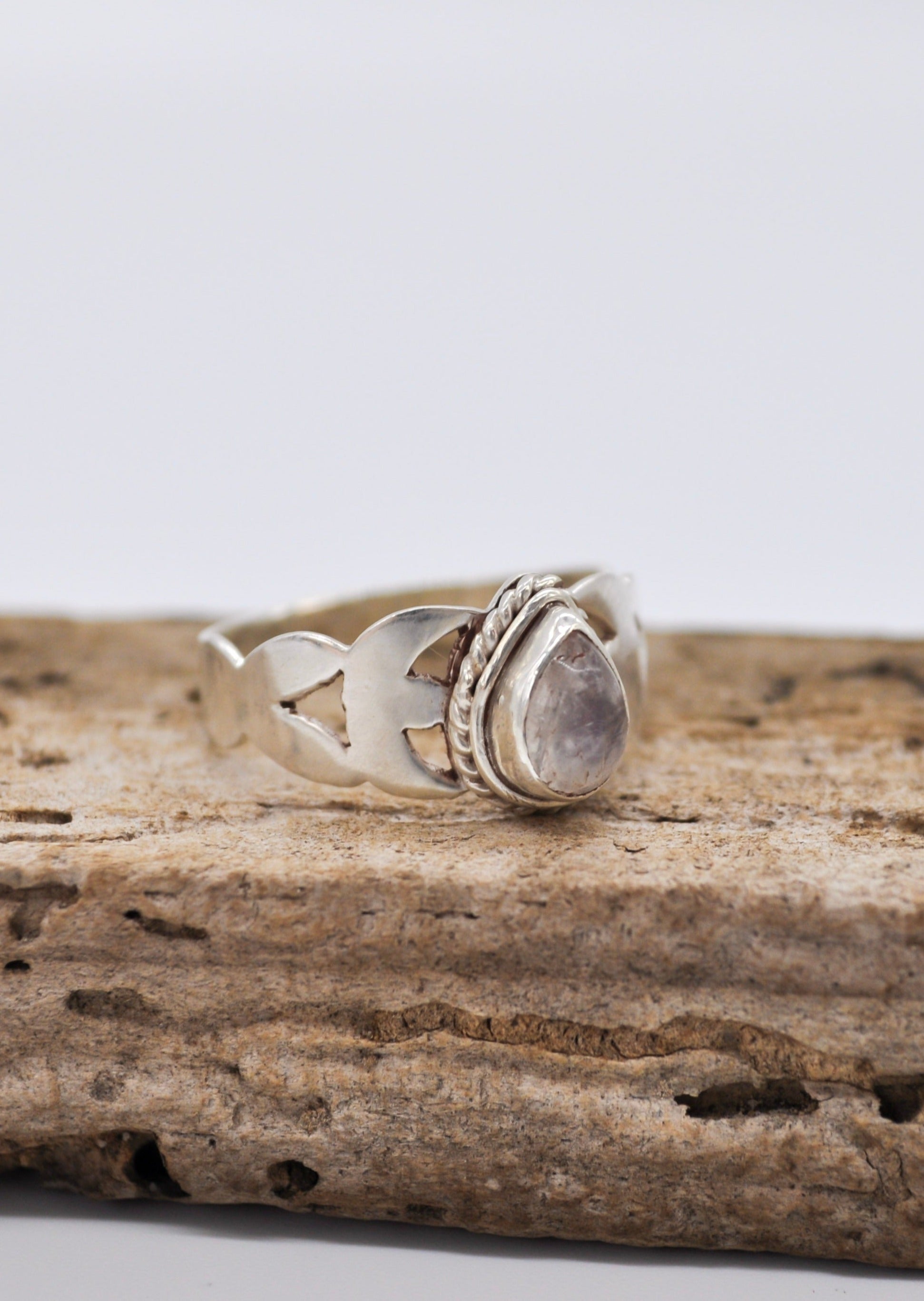 Featuring a filigree setting, with a polished teardrop moonstone.
