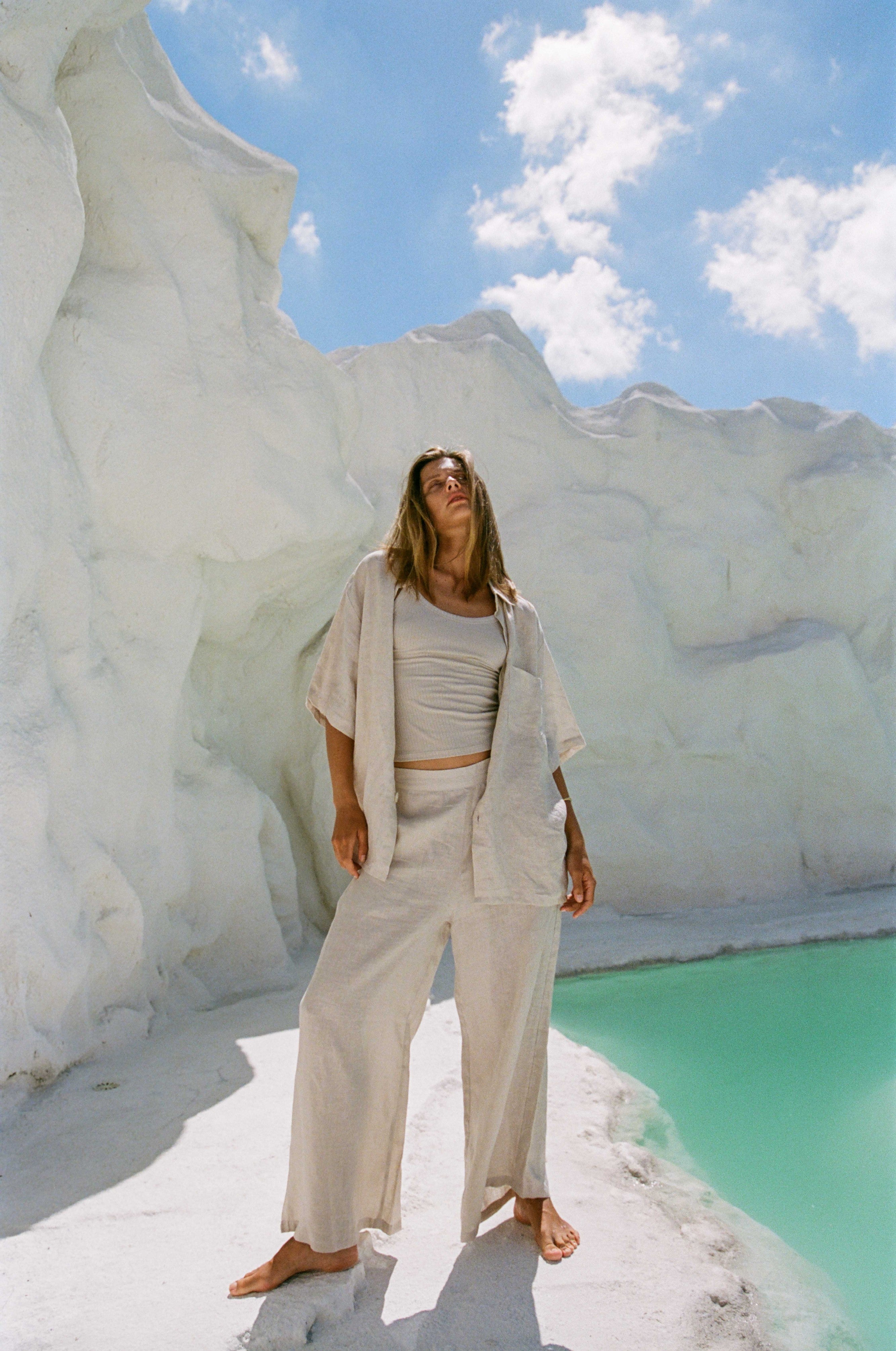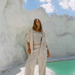 Introducing the Breeze Trouser, made from 100% Pure French Flax Linen. Effortlessly chic, these wide-leg pants feature a flat front and elastic back for ultimate comfort and a great fit. Crafted from soft, breathable fabric, the Breeze Trouser is perfect for warm days and casual outings. Its versatile design pairs seamlessly with the Breeze Shirt and Movement Tank for an elevated look.