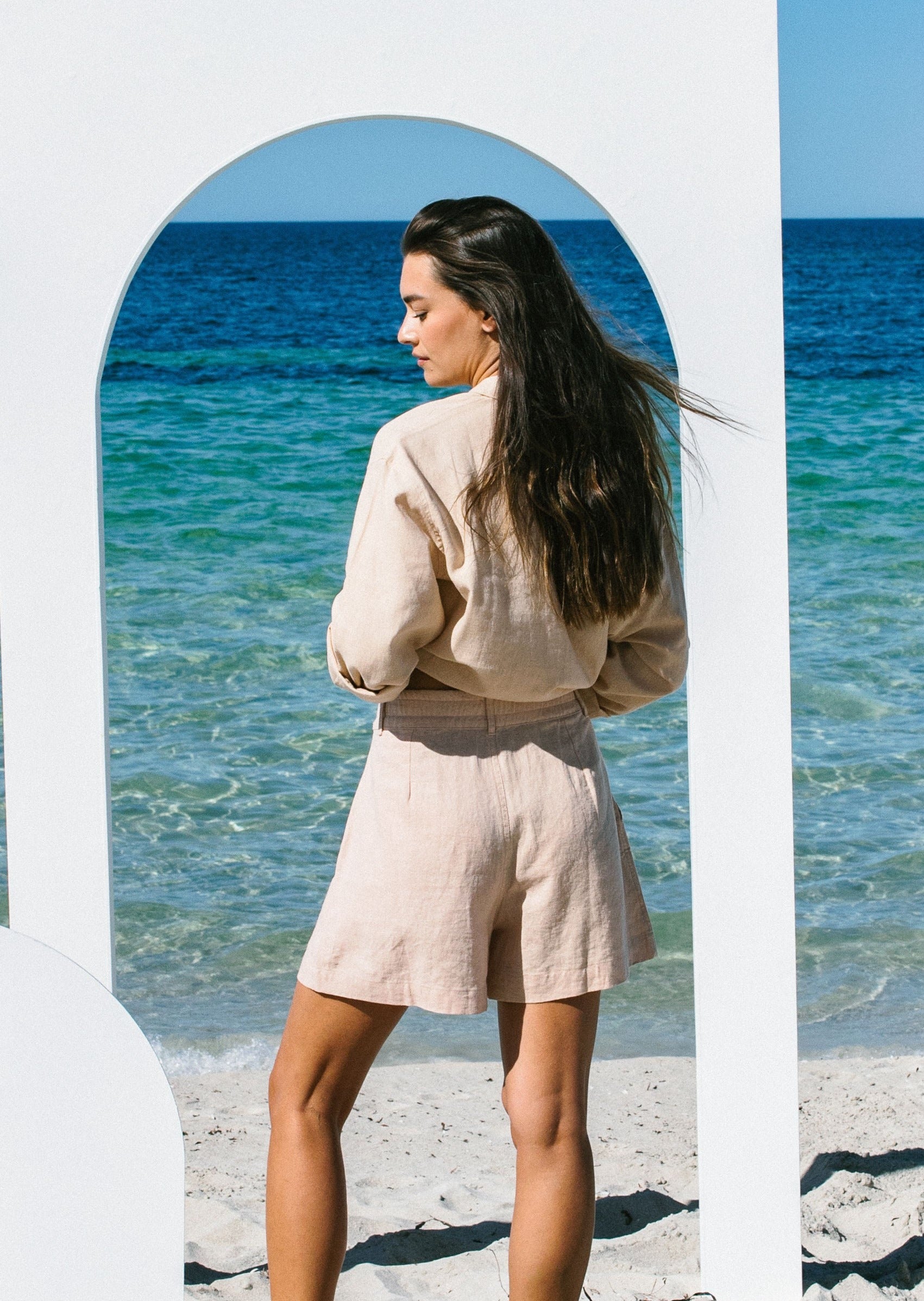 A relaxed A-line fit which combines elements of sophistication and informal styling, the Pleat Shorts will a go-to piece throughout the warmer months. A flattering mid-rise tailored fit with a wide leg shape, the Pleat Short is a perfect combination of comfort and style.