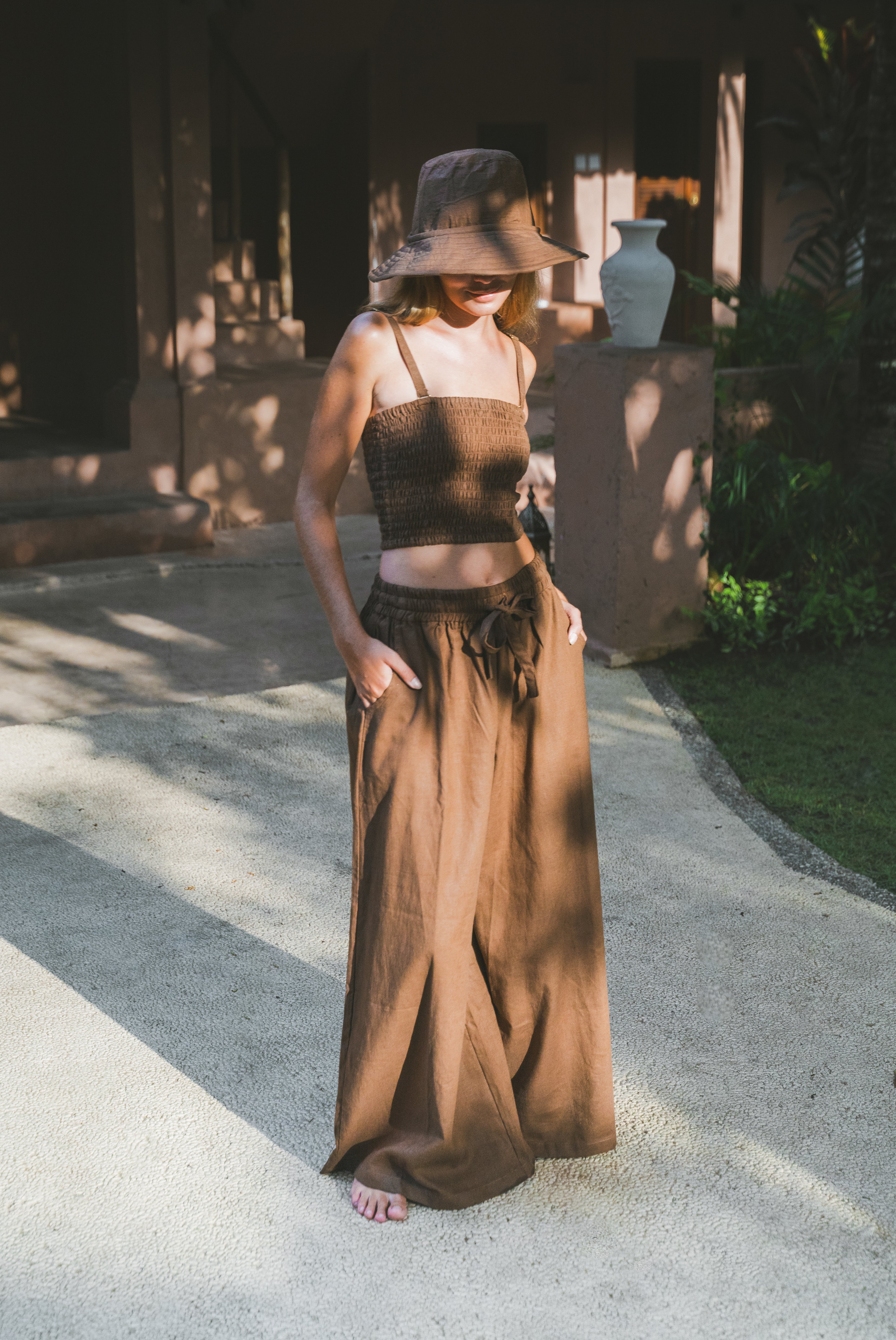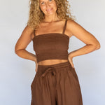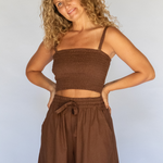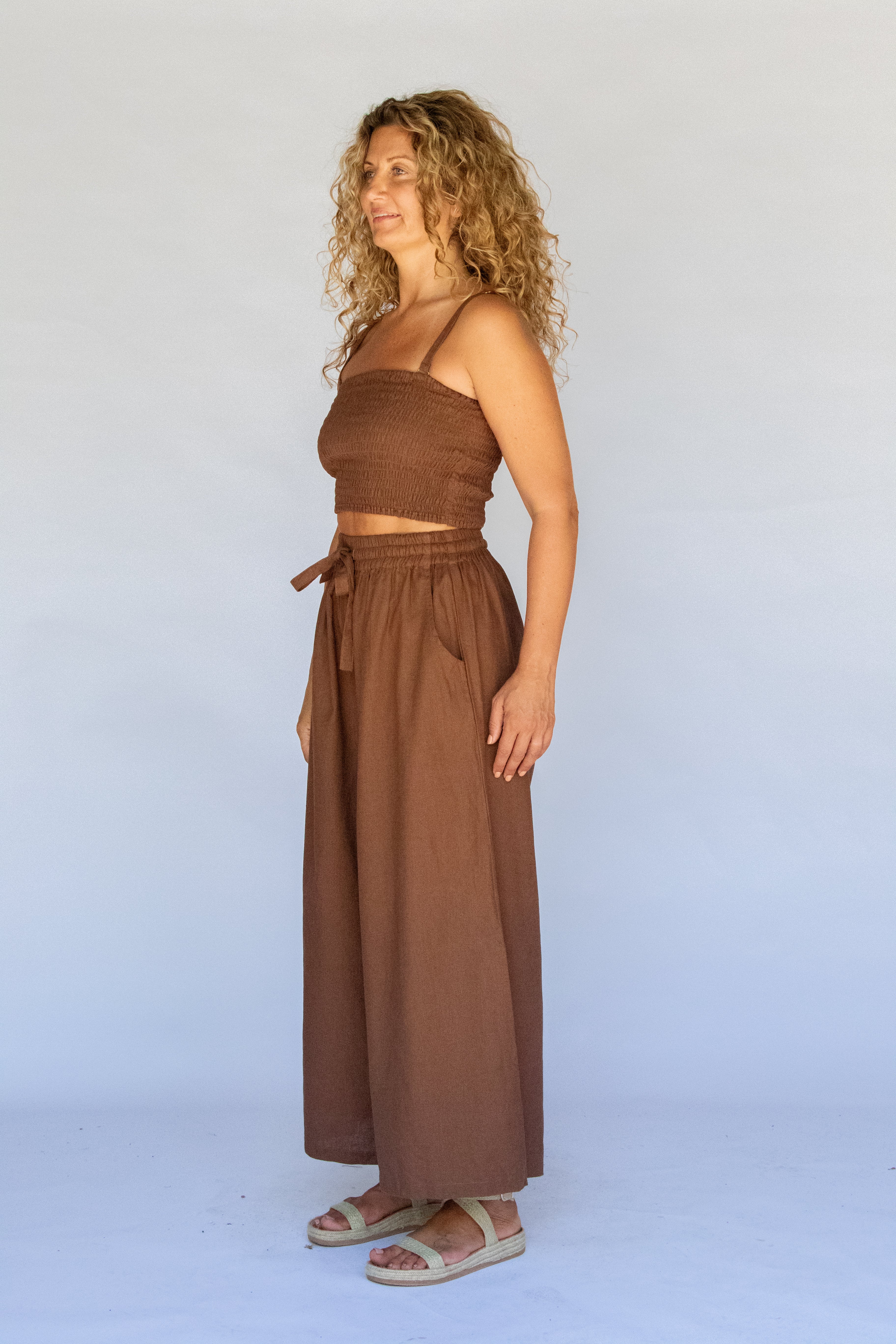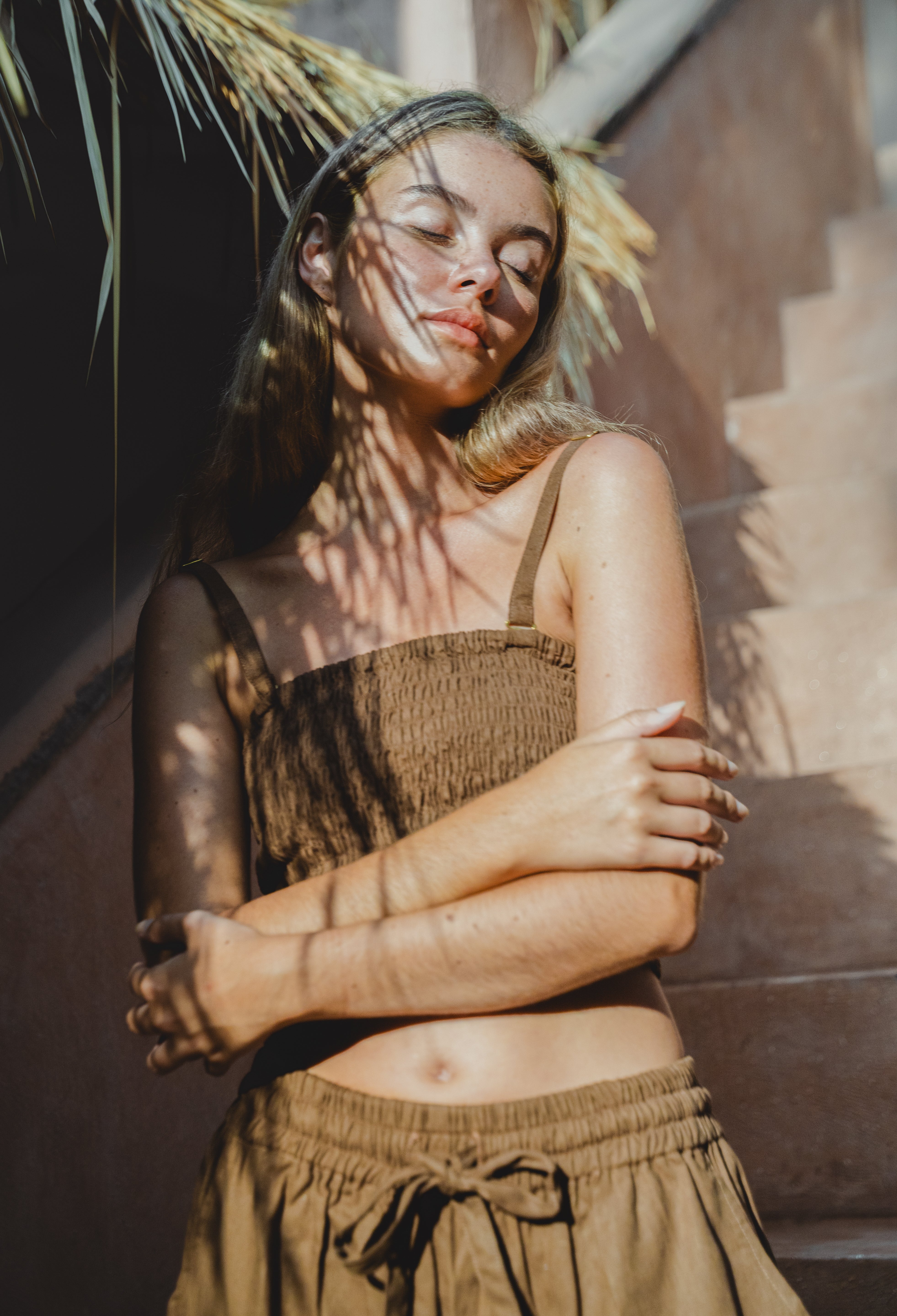 Introducing the Margot Top – your perfect companion for sun-drenched coastal adventures. Effortlessly chic and inspired by serene seaside escapes, it features a flattering shirred design crafted from soft, breathable fabric. Ideal for breezy beach days and sunset strolls, its versatile bandeau cut pairs perfectly with high-waisted shorts, a flowy skirt or our Margot Pant.