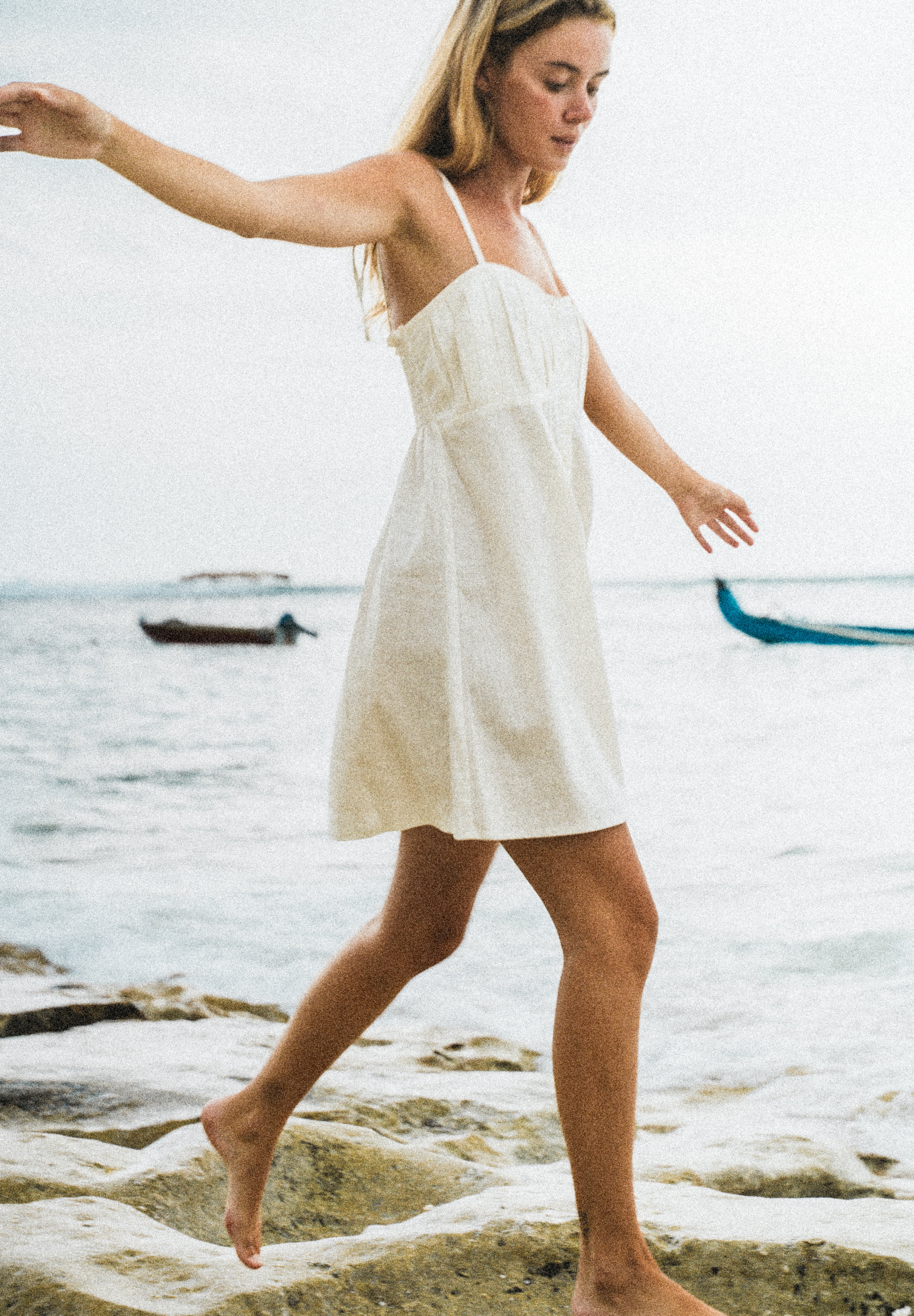 Introducing the Isla Mini Dress, a playful and stylish addition to your summer wardrobe. This charming dress features thin tie straps, a pleated bust, a shirred back, and delicate button details, offering both comfort and elegance. Perfect for peak summer holiday occasions, the Isla Mini Dress ensures you stay effortlessly chic and breezy all season long.
