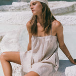 Introducing the Mist Dress, a playful and stylish addition to your summer wardrobe. This charming dress features thin spaghetti straps, that are adjustable for you to be creative with a cross or straight back. The Mist Dress features pockets offering both practically and elegance. Perfect for peak summer holiday occasions, simplicity at its best.