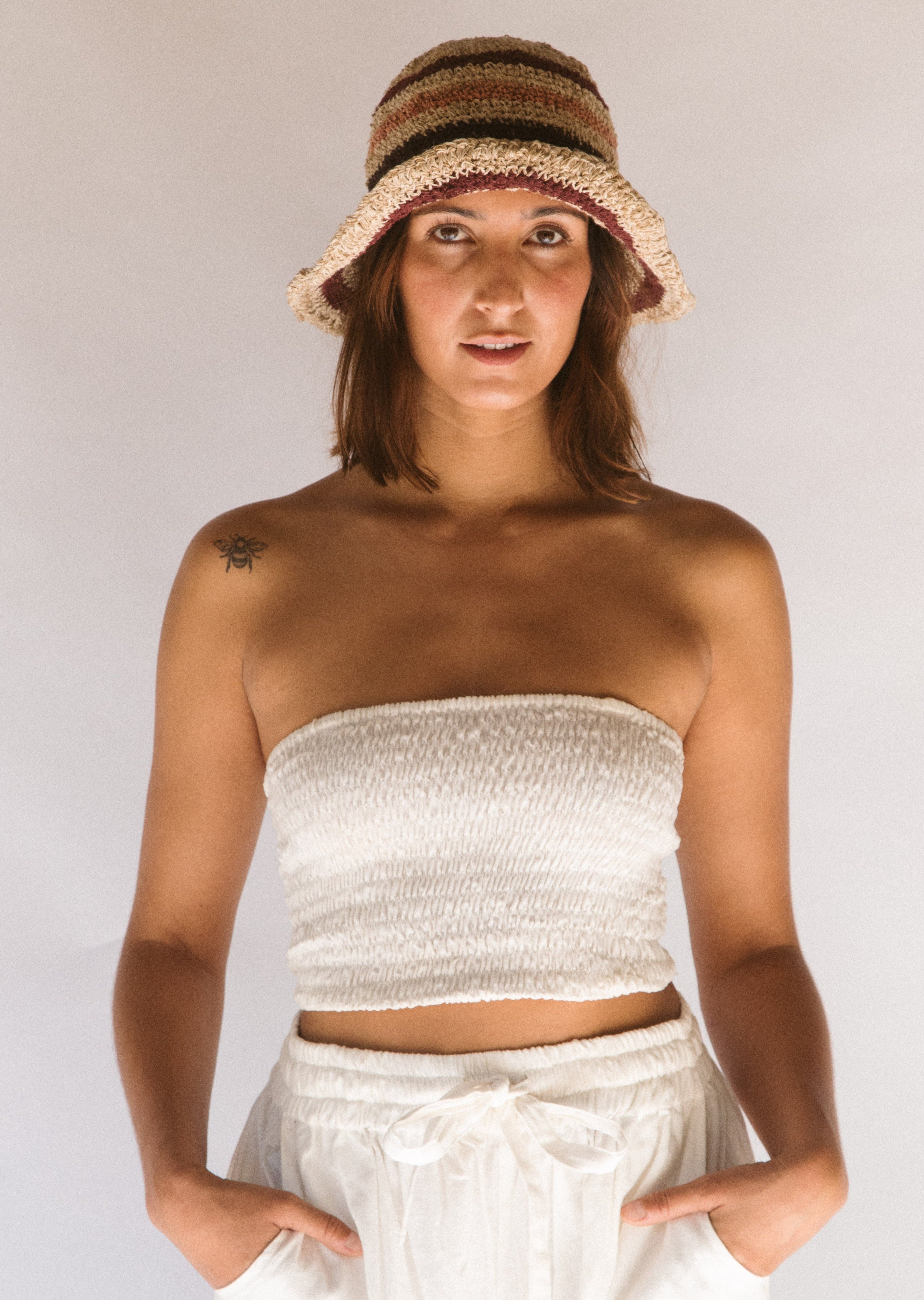 Meet Peggie, a delightful bucket-shaped hat, hand-woven by skilled artisans in Nepal using a breathable blend of hemp and cotton. It features a lightweight, adjustable 2-inch wire brim that you can easily shape to your liking. Peggie is the perfect travel companion, packing flat for convenience wherever you go.