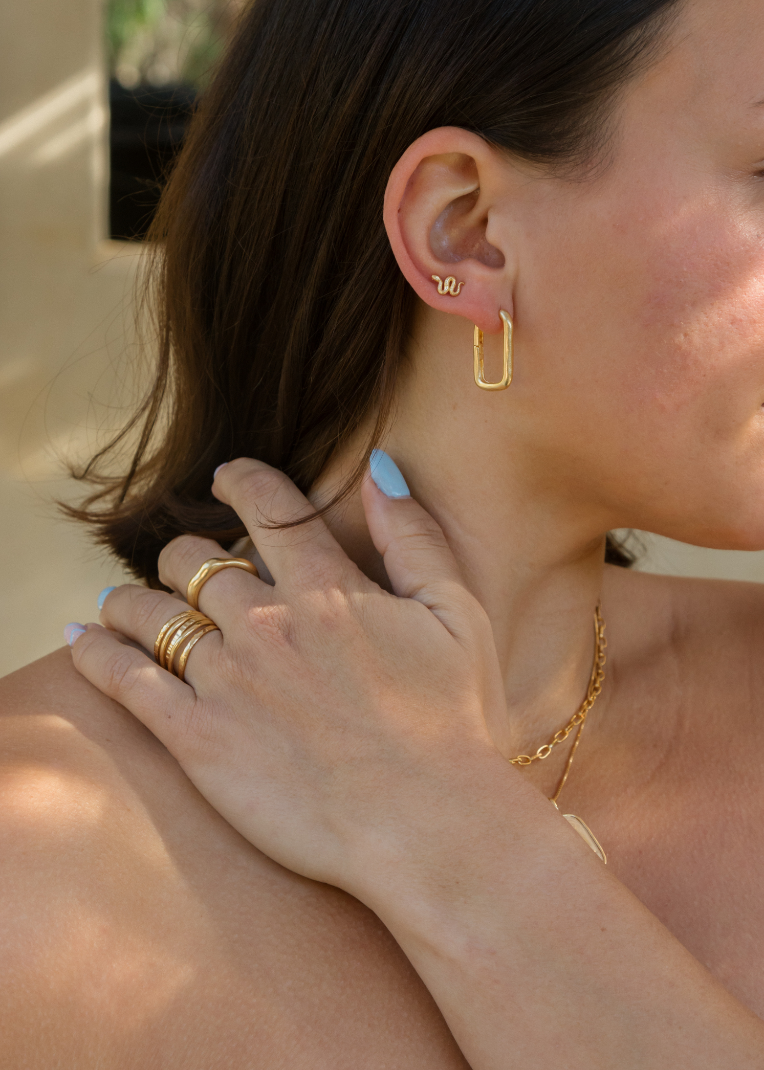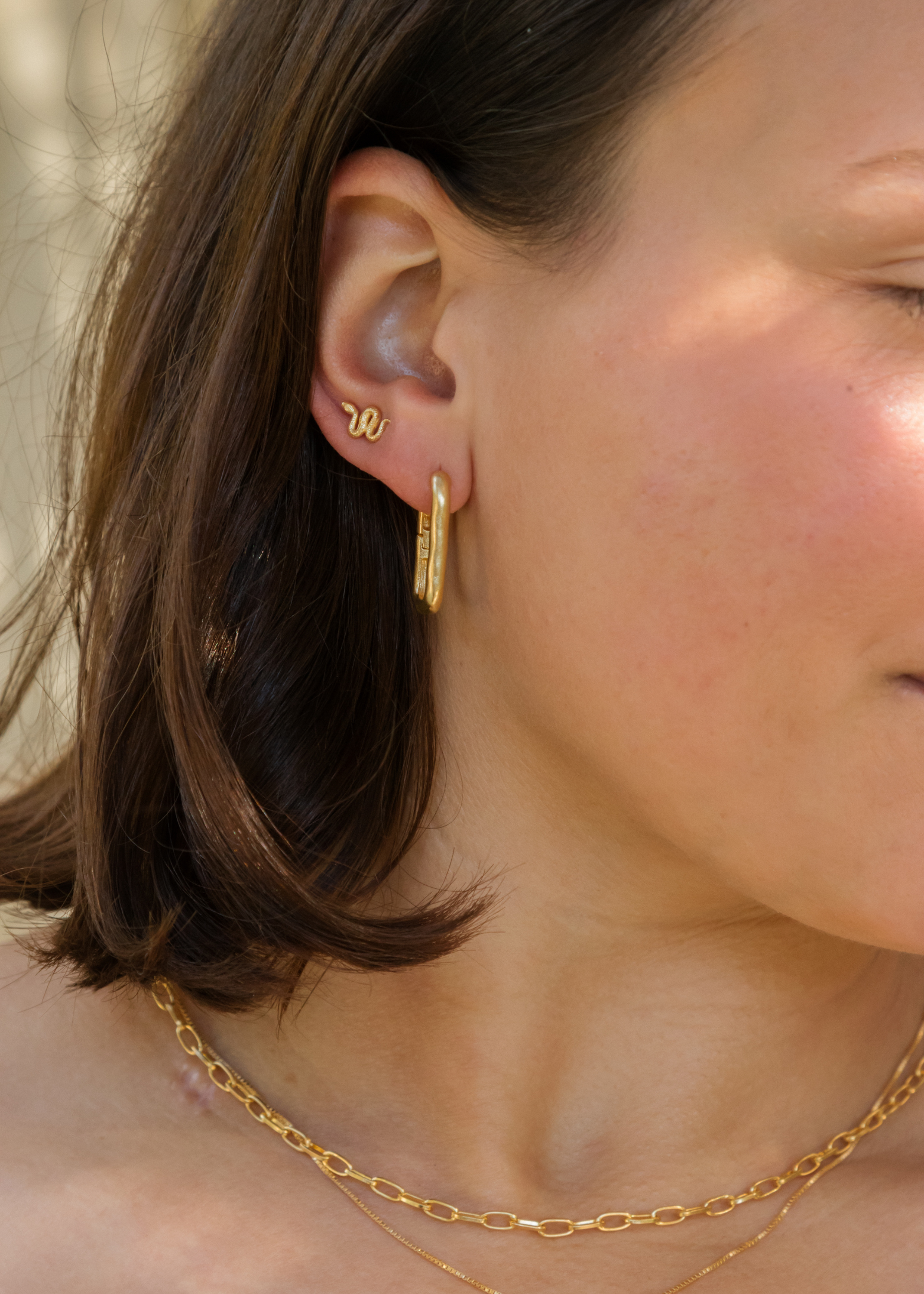 La Muse Earrings are a modern classic. These rectangle-shaped earrings embody timeless elegance with a sleek design and polished finish, effortlessly elevating your style with understated grace. You will want to wear these all summer long.