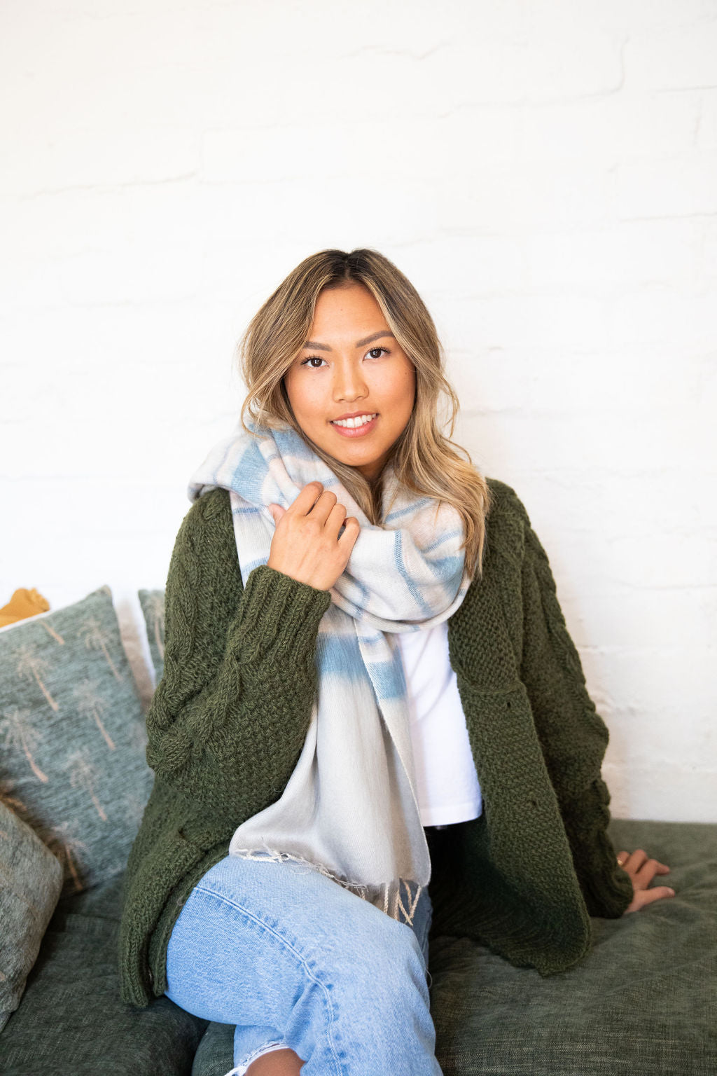 Our shawl/wrap/scarf has multi uses. Style up or style down, its perfect for early morning yoga sessions and beach sun downers. The ideal travel companion who can be accessorised with your favourite denim, or perfect to wrap over your dress as the evening cools down.