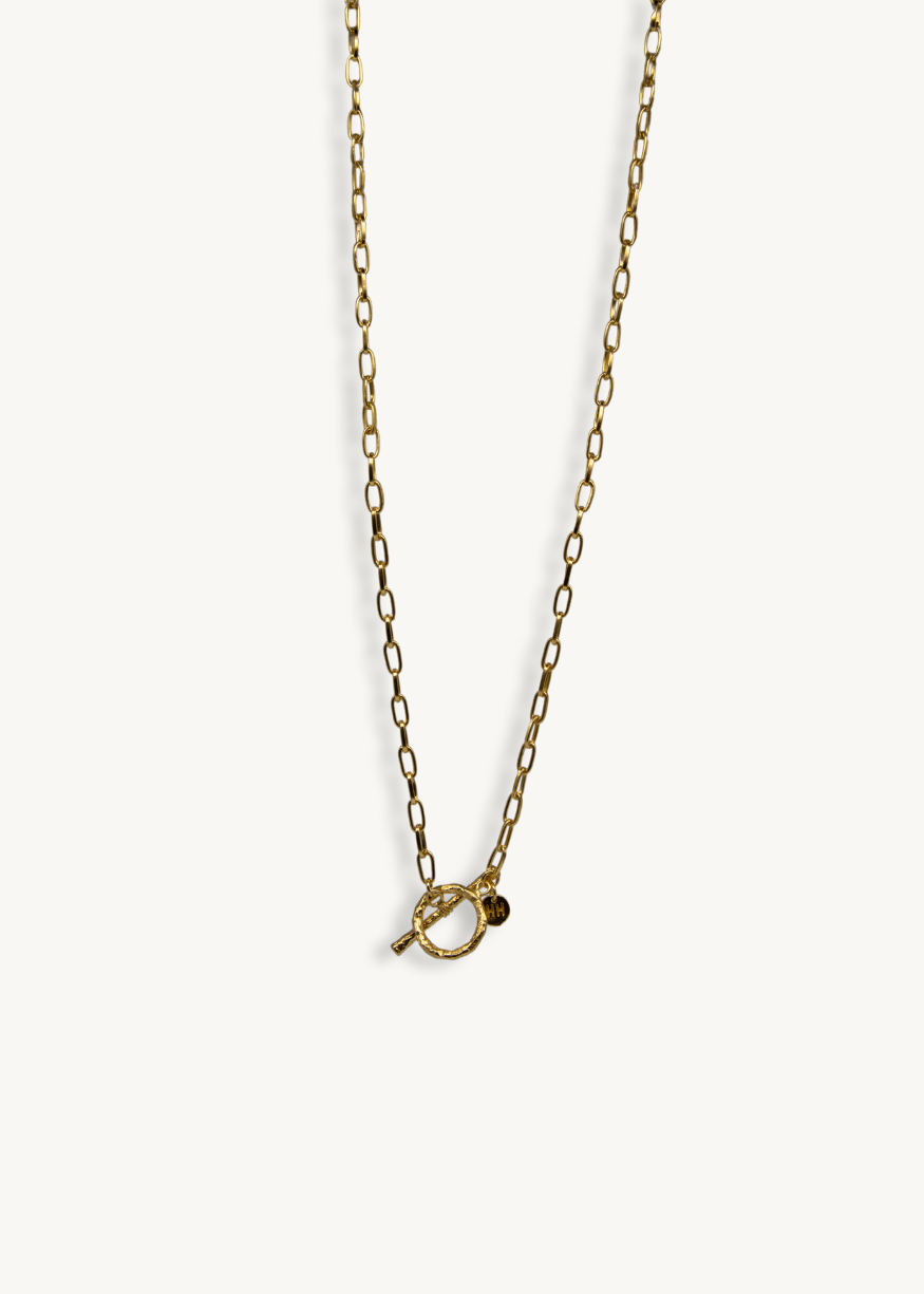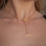 The Sirena Necklace features a timeless link chain with a classic toggle clasp, perfect for versatile styling. Wear the clasp at the front as a statement or at the back for a refined, understated look.