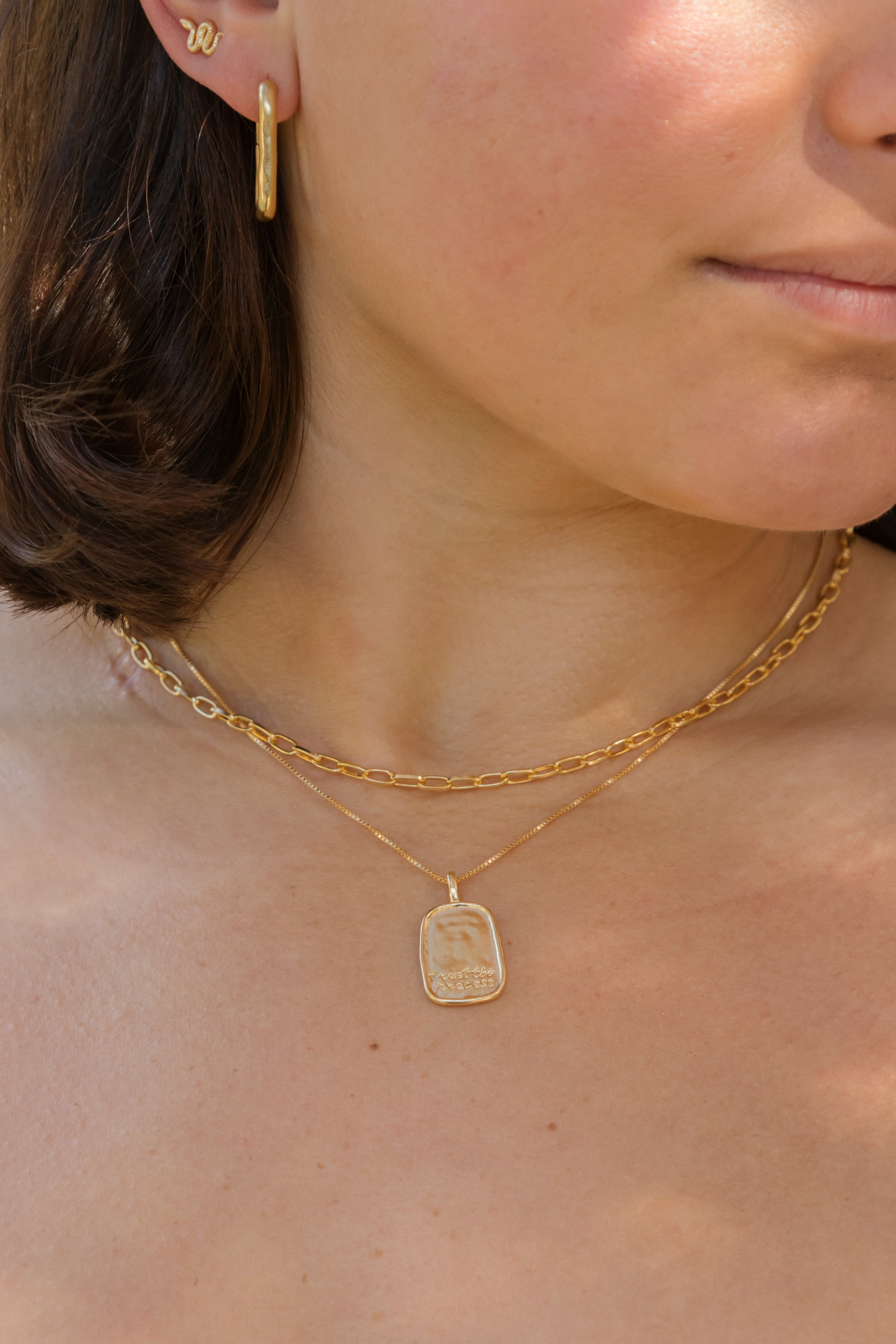 A sleek, lightly textured pendant engraved with Ride the Wave, a subtle reminder of life’s ebb and flow and the lessons we can learn from the ocean. Square with softened edges, it can be worn facing inward to keep the message close, or outward to share it with the world, a modern expression of intention and style.