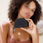 This petite leather purse brings sunshine wherever it goes. Designed with a clasp closure, it slips easily into any bag—or style it solo for simple, elegant utility.