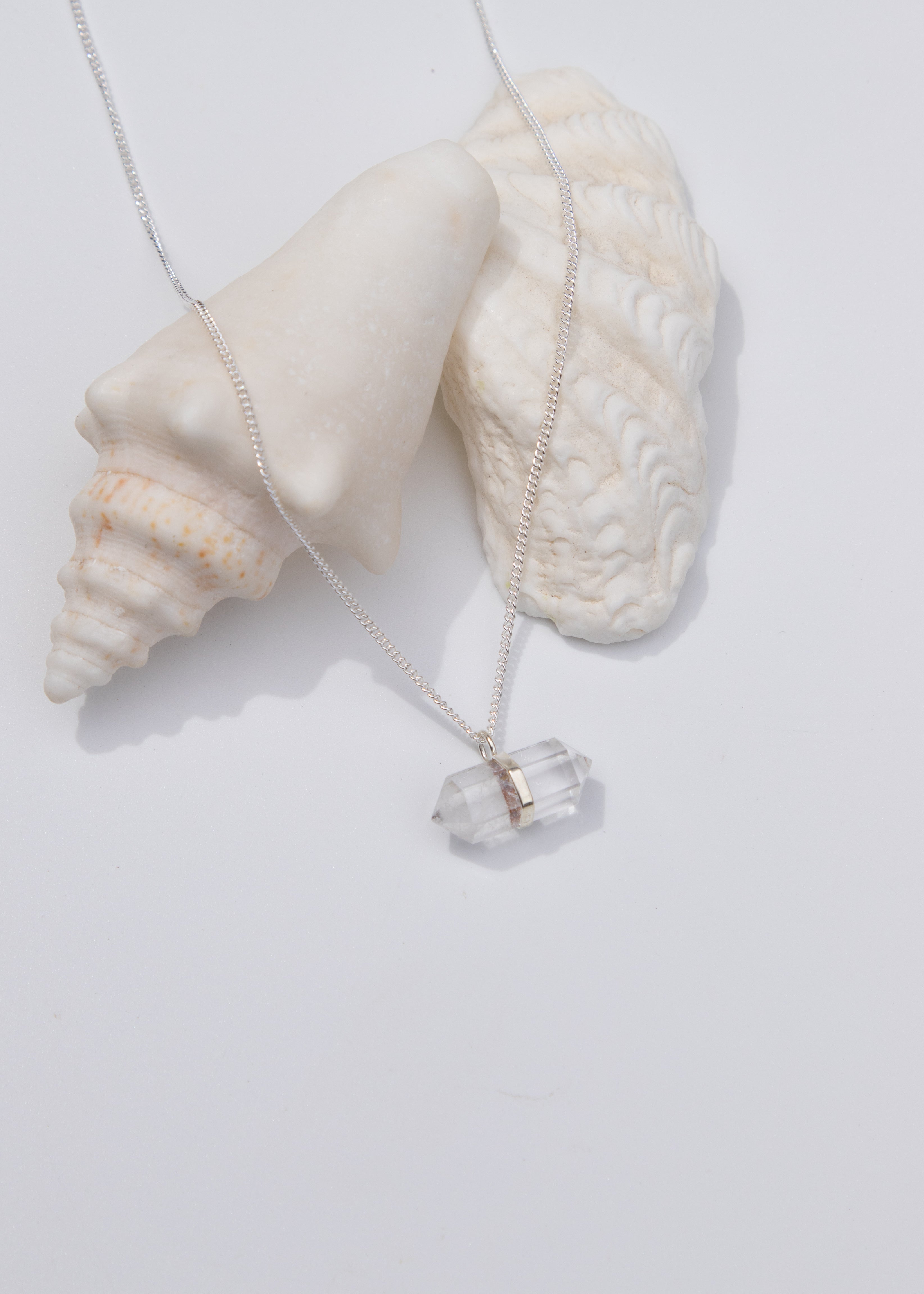 The Double Point Quartz Necklace features a centred clear crystal quartz pendant, it is perfect for layering up with your favourite chain or worn alone.