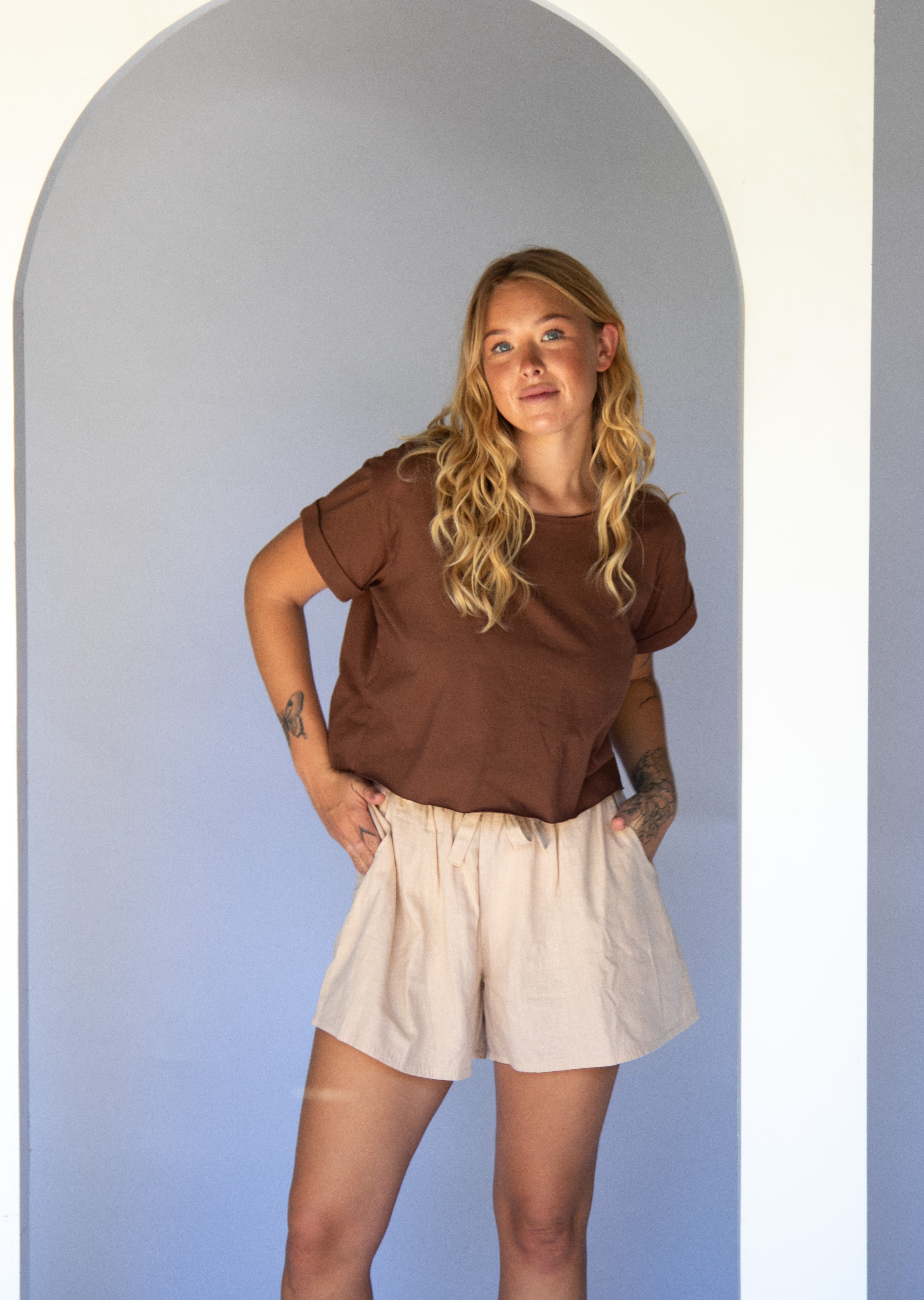 We love her paired with our Oakley Linen pants.