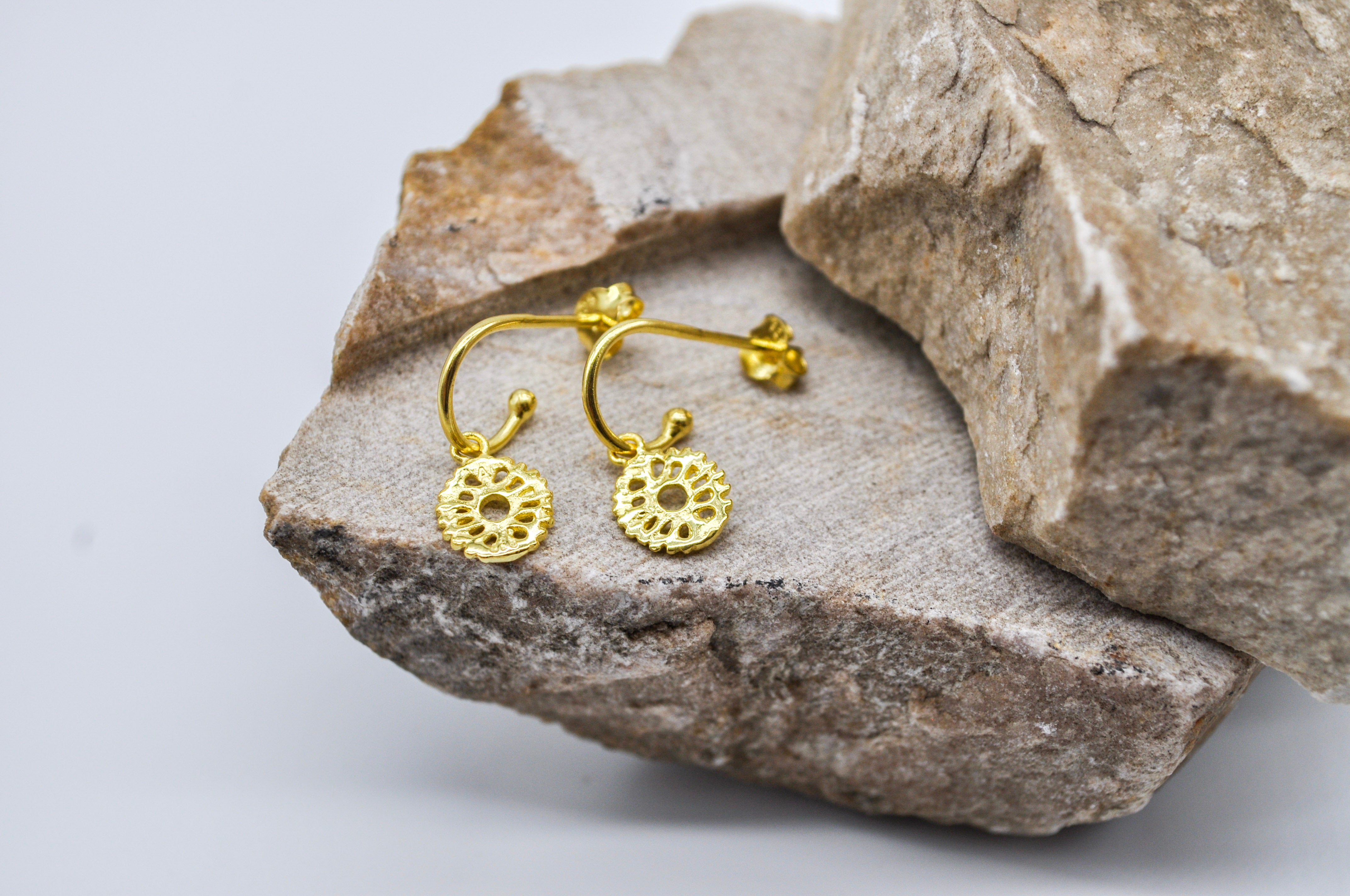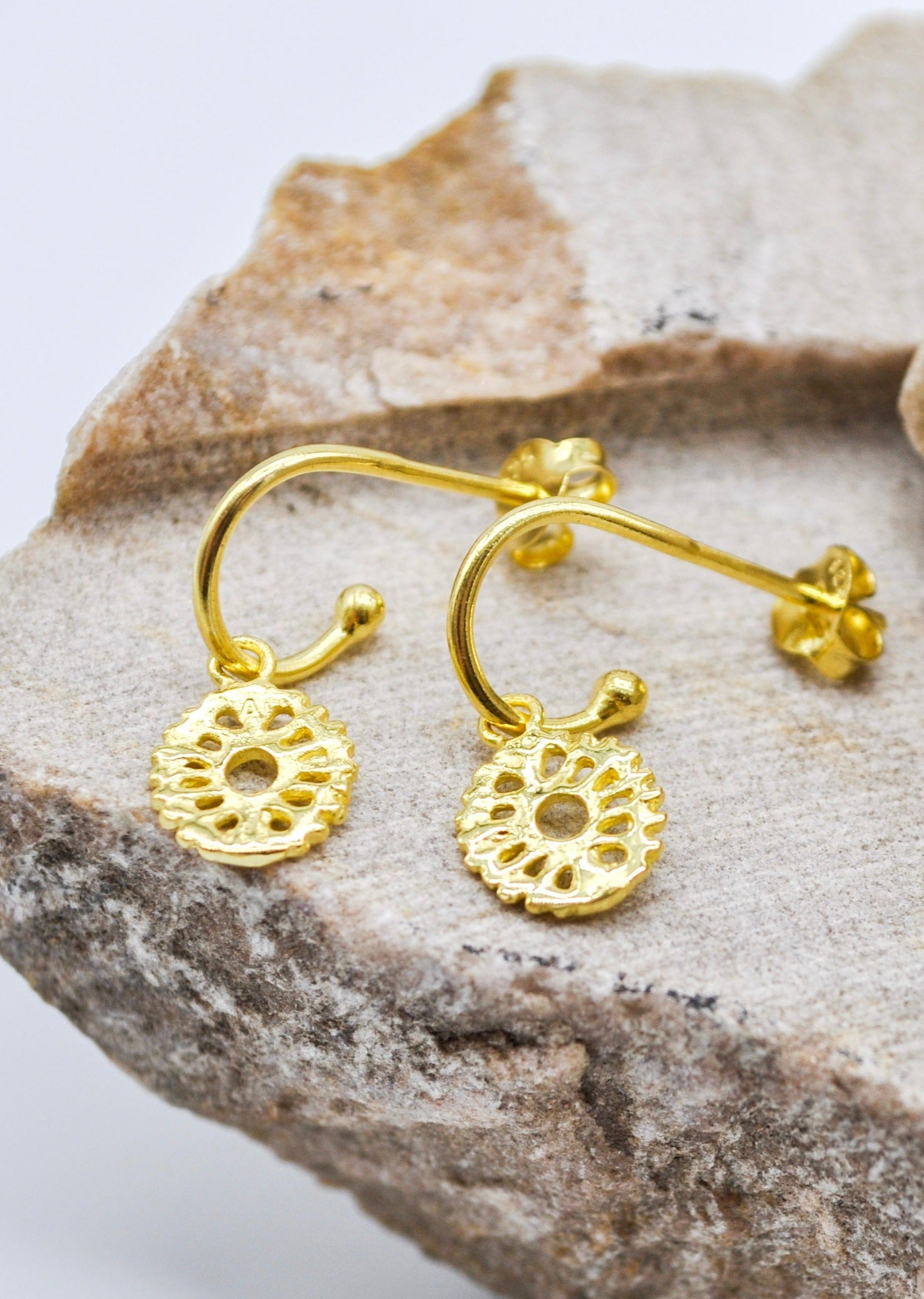 She Will Bloom hoops feature our exclusive bloom design charm, on butterfly back hoops. Crafted with 925 Sterling Silver, micro plated twice using 18ct gold.
