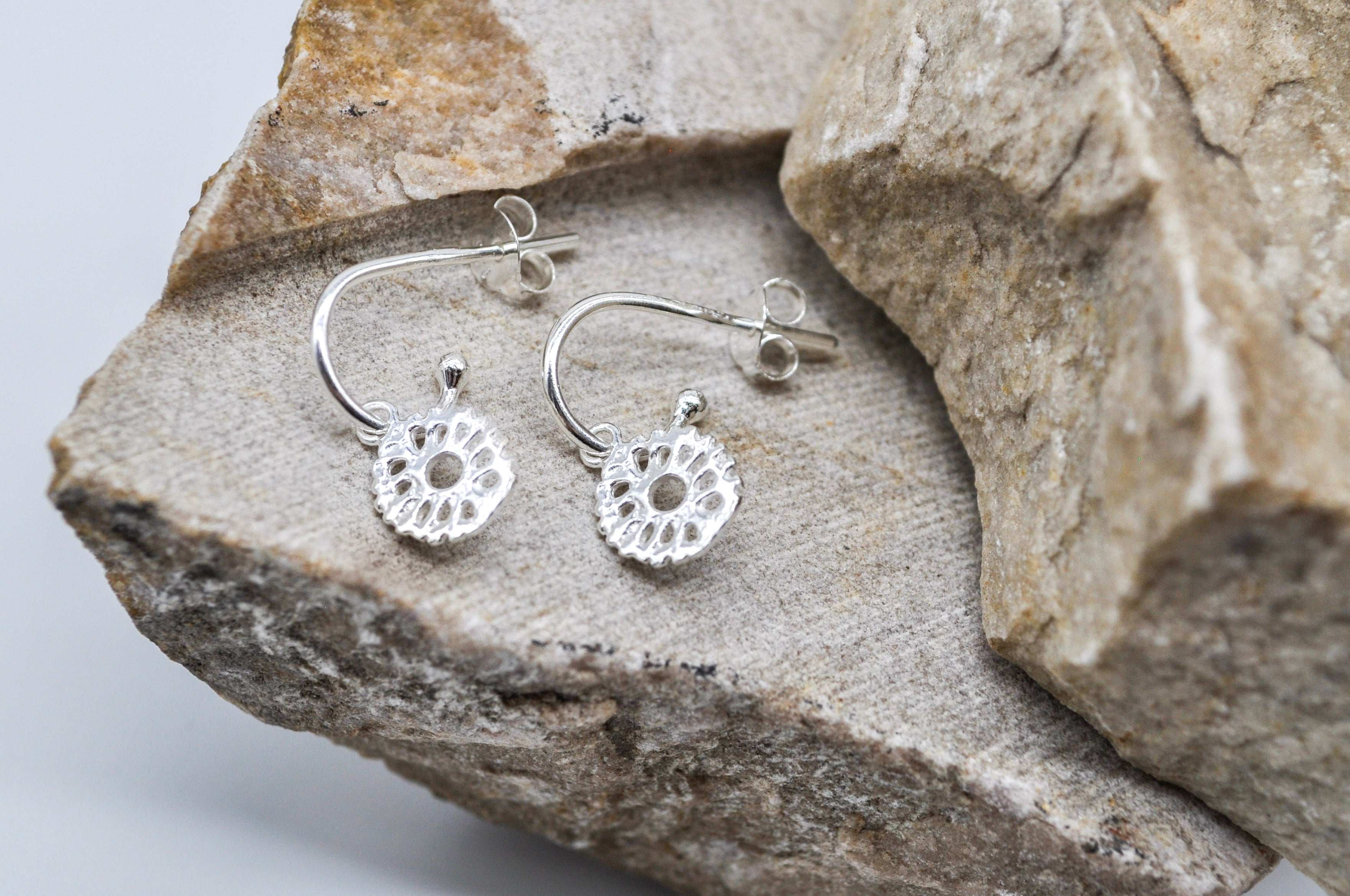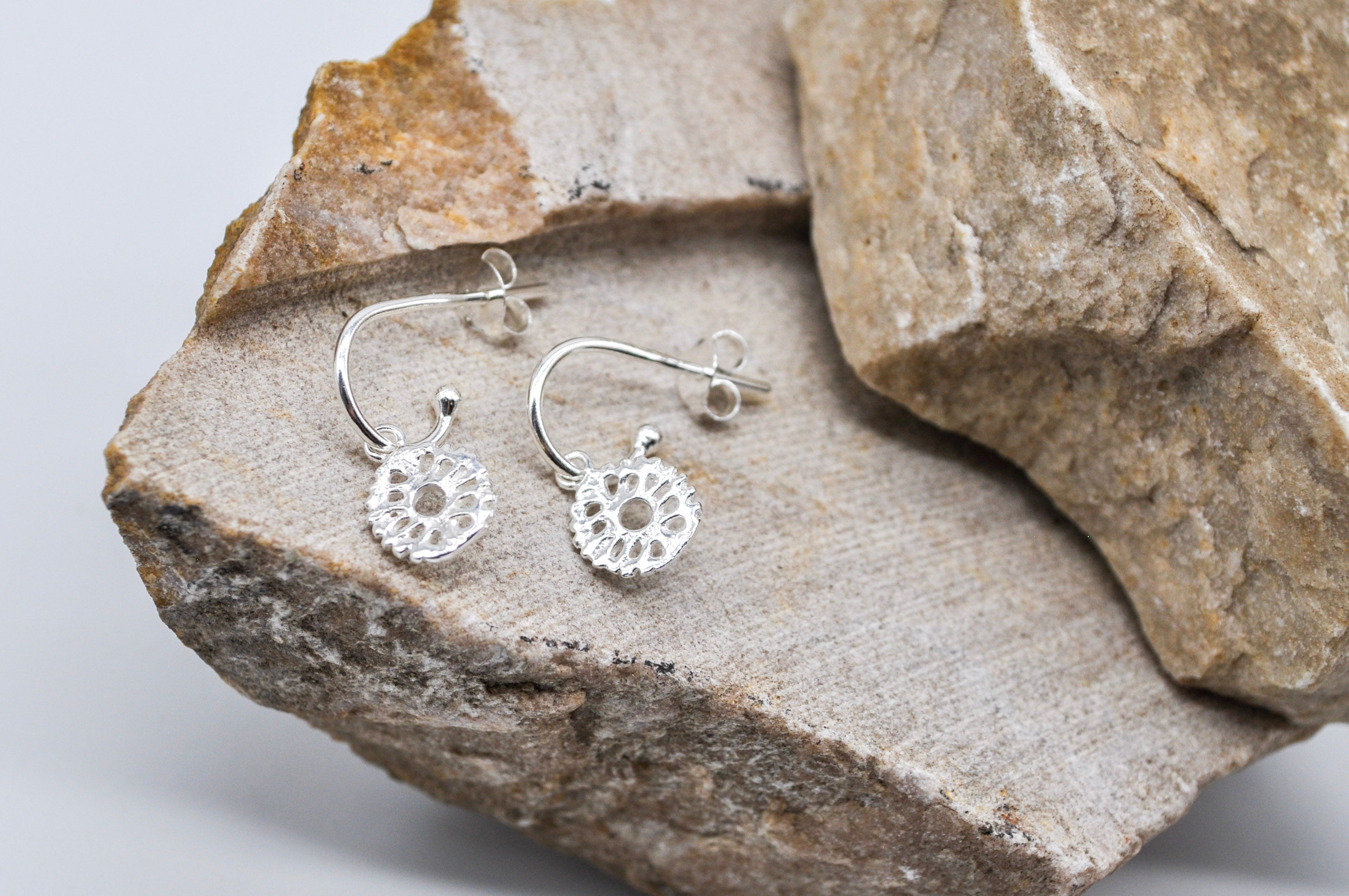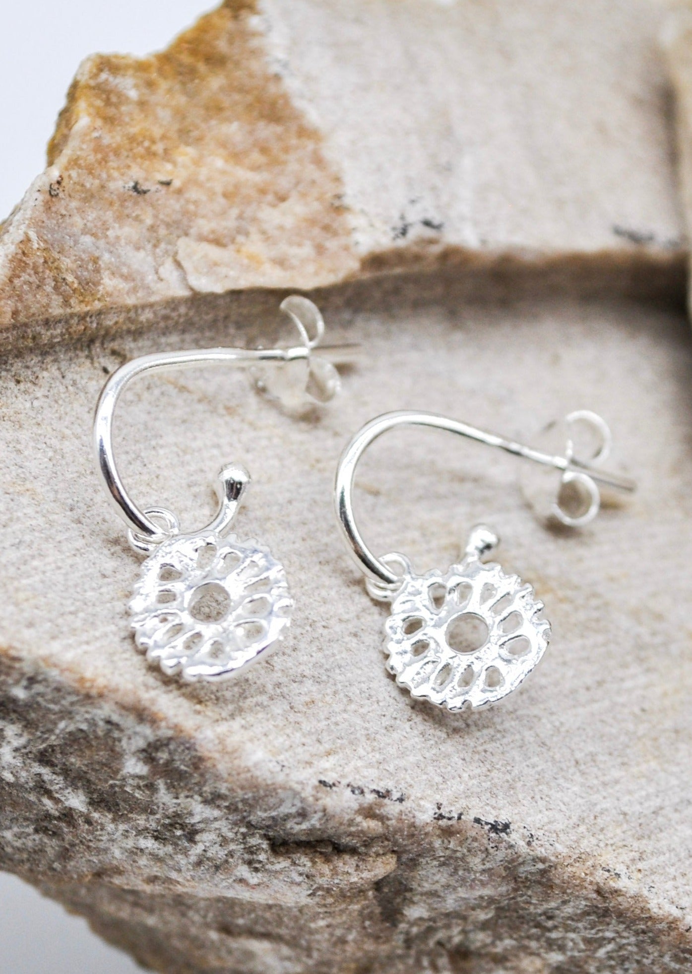 She Will Bloom hoops feature our exclusive bloom design charm, on butterfly back hoops. Crafted with 925 Sterling Silver