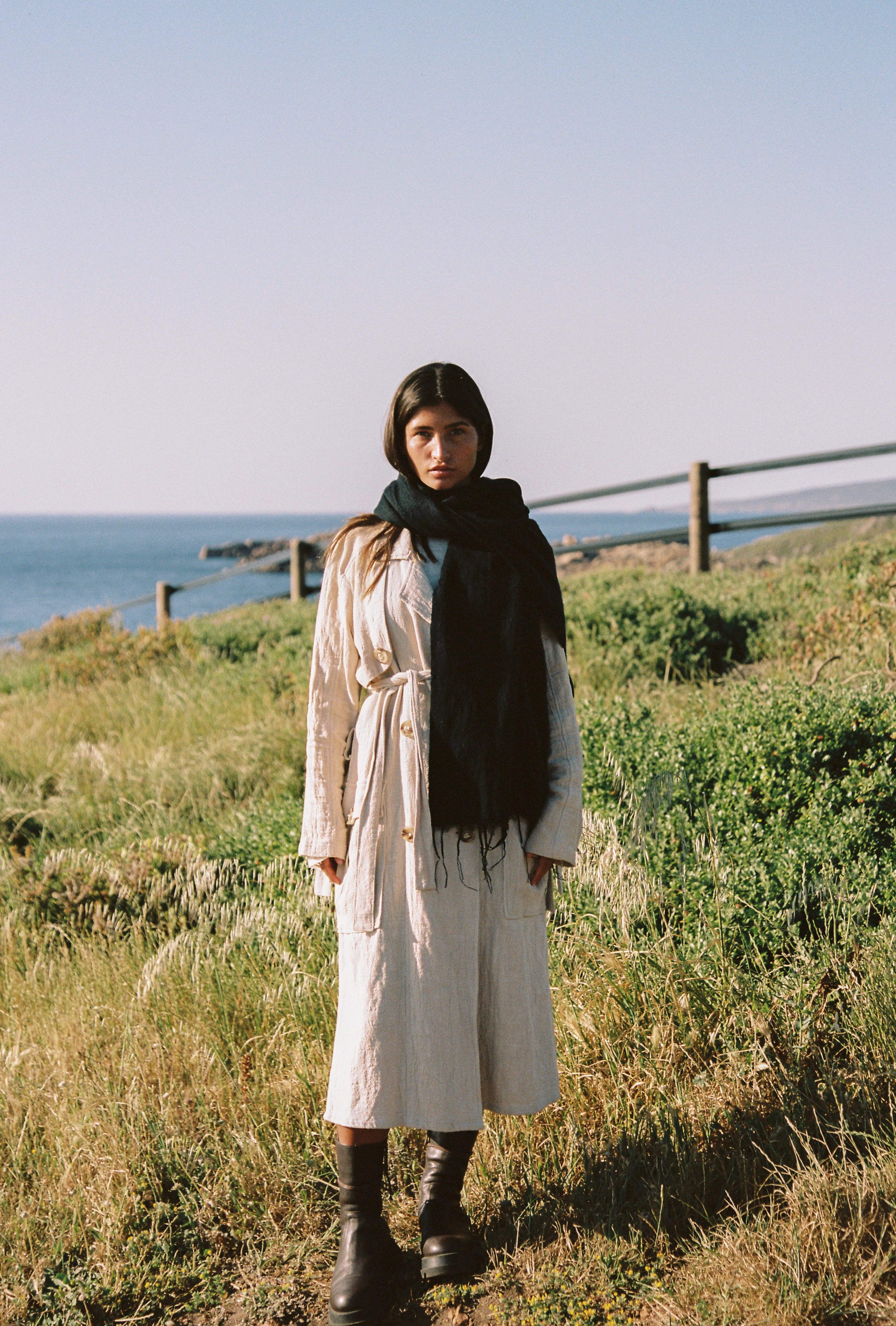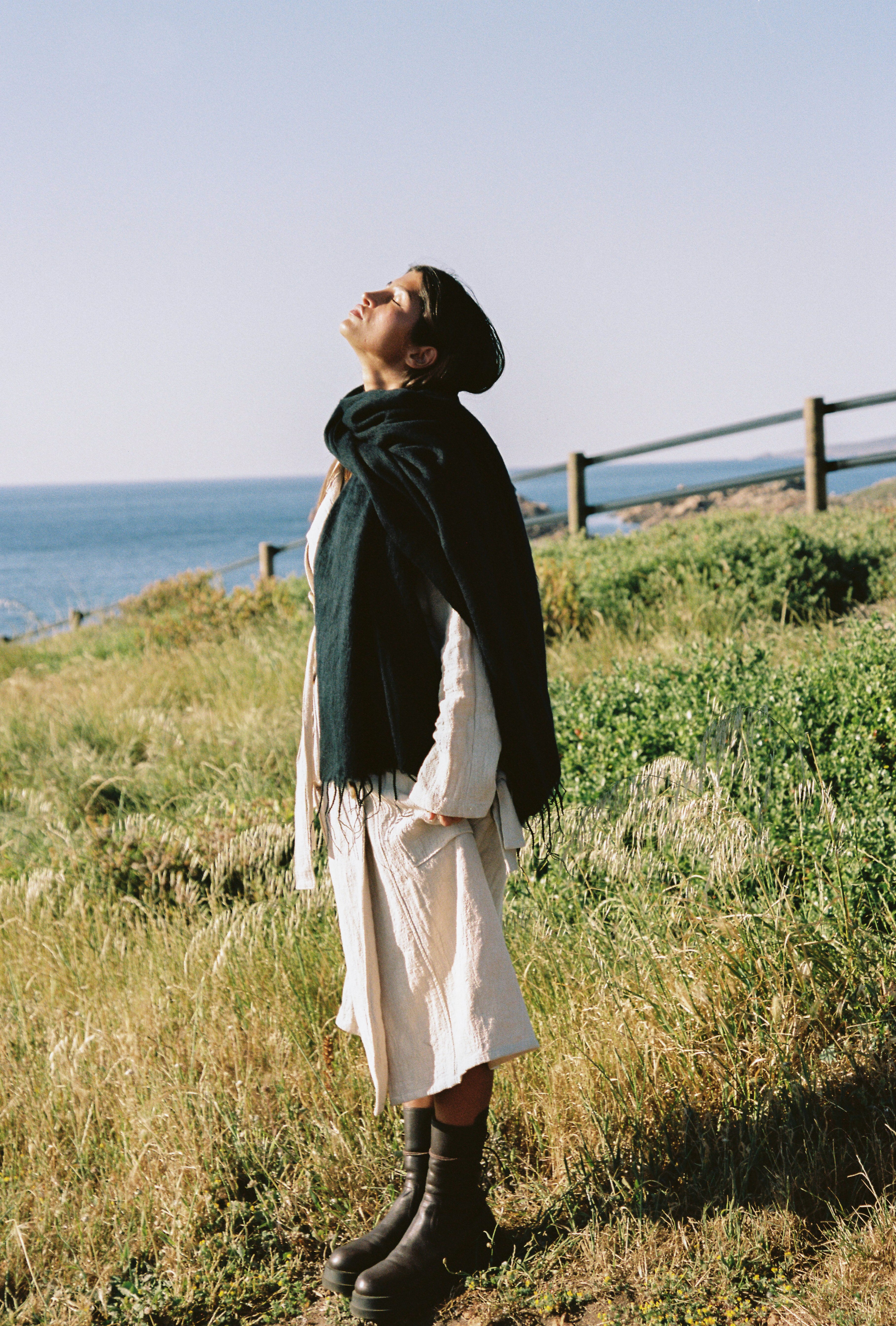 TERRAMAR: This campaign was captured close by, on the coastal stretch called “Wyadup”. Here, the raw elements of the land, comprised of granite rock formations, grassy pasture, and native coastal bush roll into the wild Indian Ocean. It was the perfect backdrop that encapsulates all that TerraMar means. “Terra” meaning Earth & “Mar” meaning Ocean. From earthy tones to vibrant accents, reminiscent of TerraMar’s elements, this collection is a tribute to the captivating allure of the cooler months.