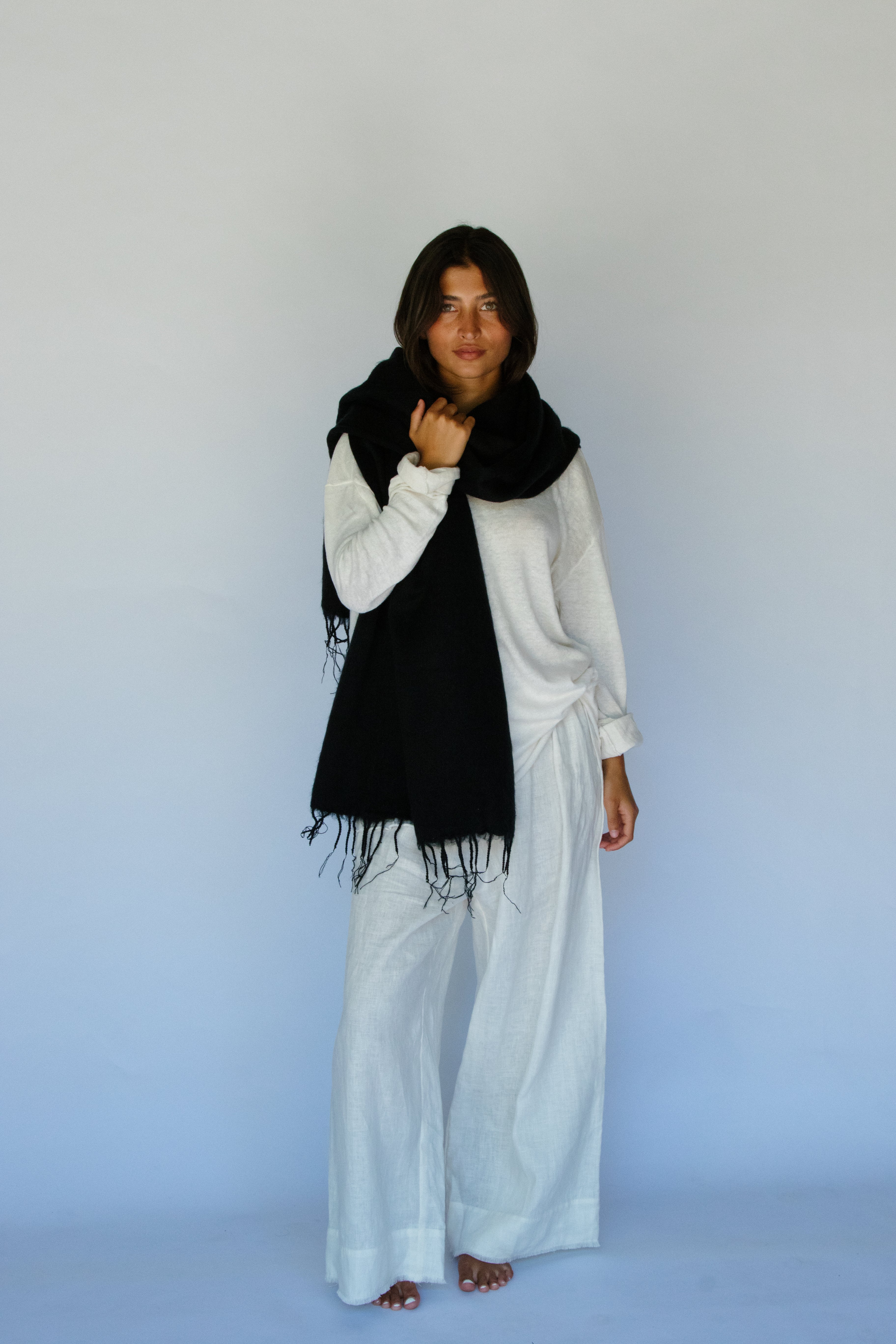 Our shawl/wrap/scarf is a versatile wardrobe must-have. Easily styled up or down, you’ll be reaching for this cosy piece time and time again throughout the cooler months.