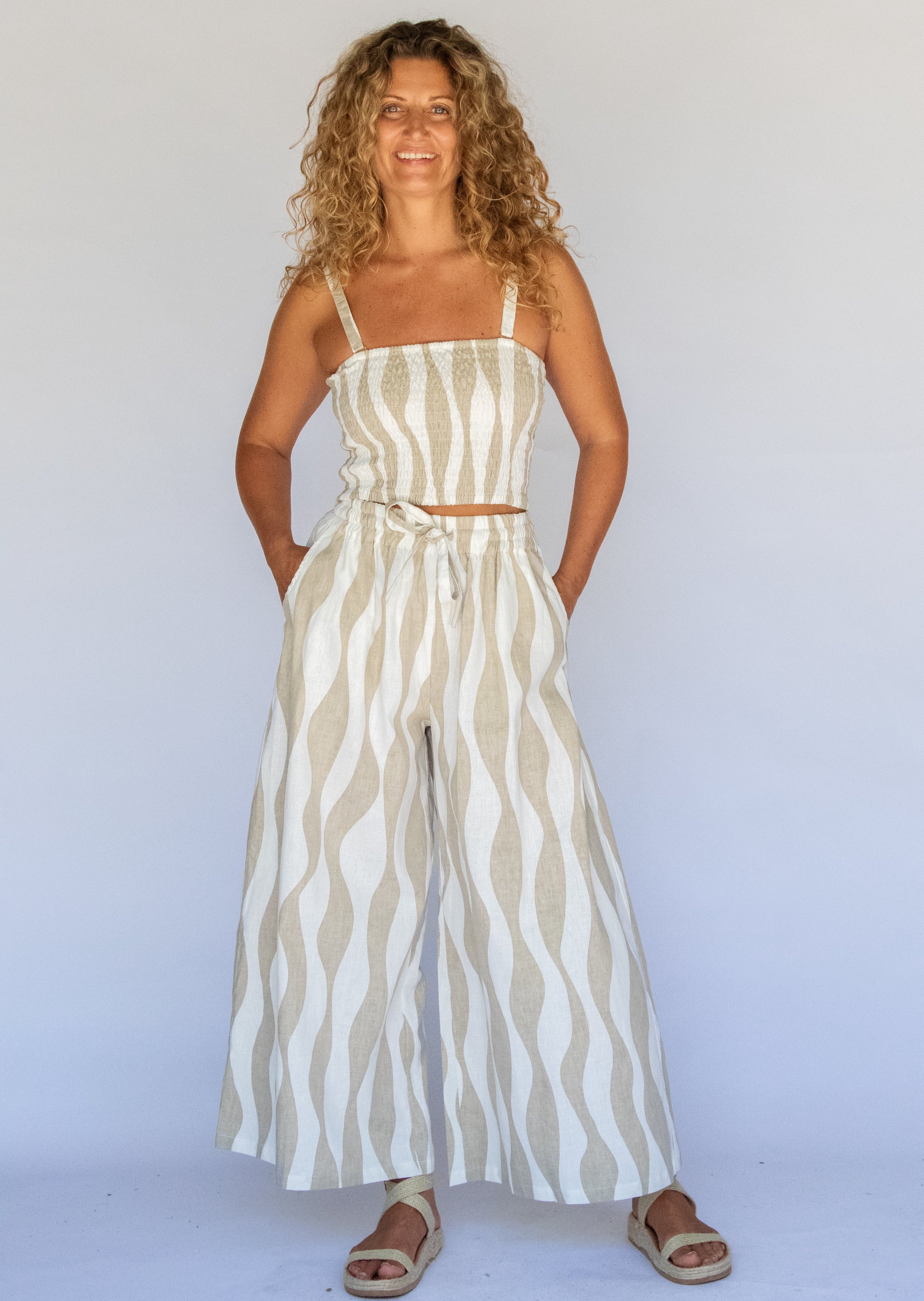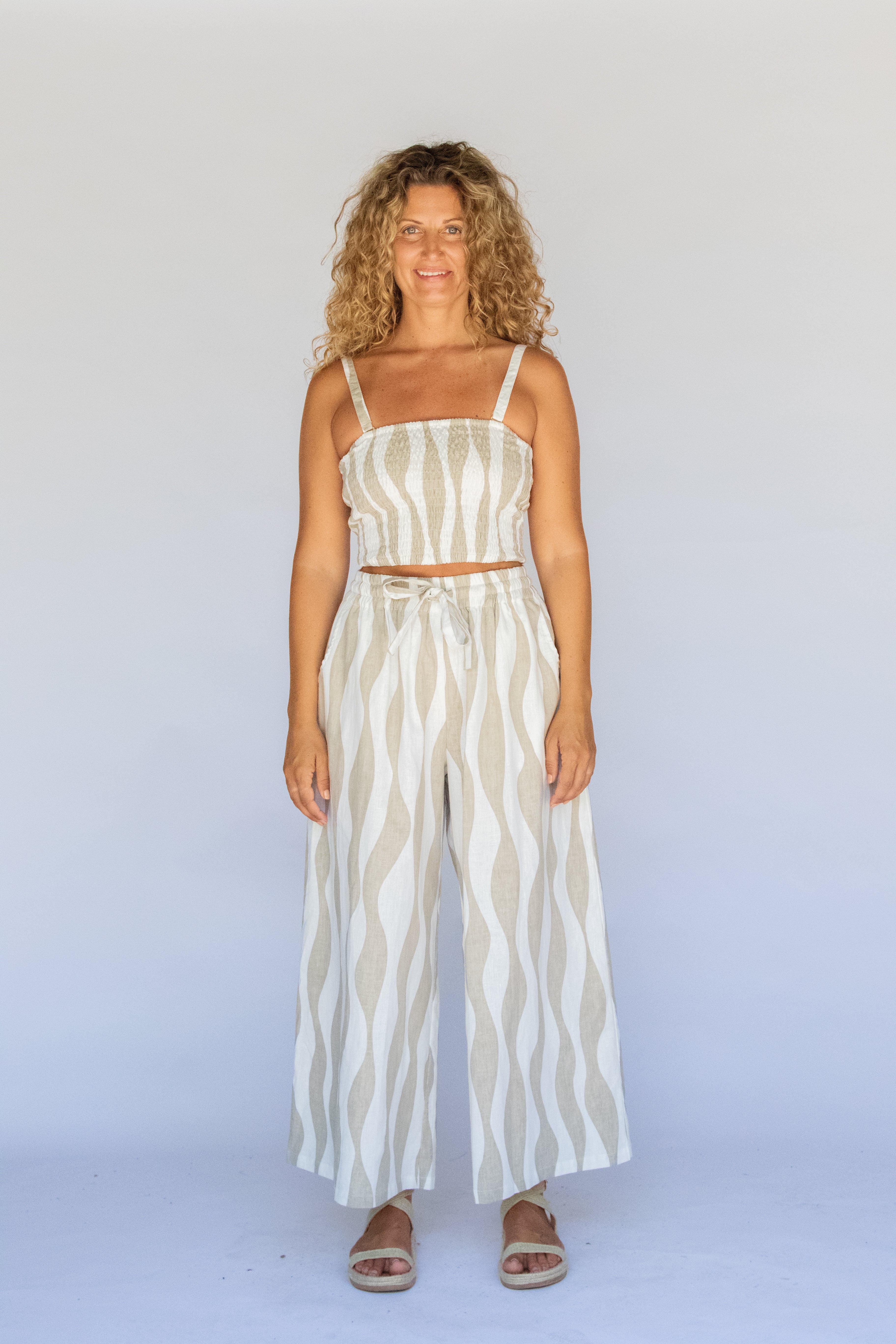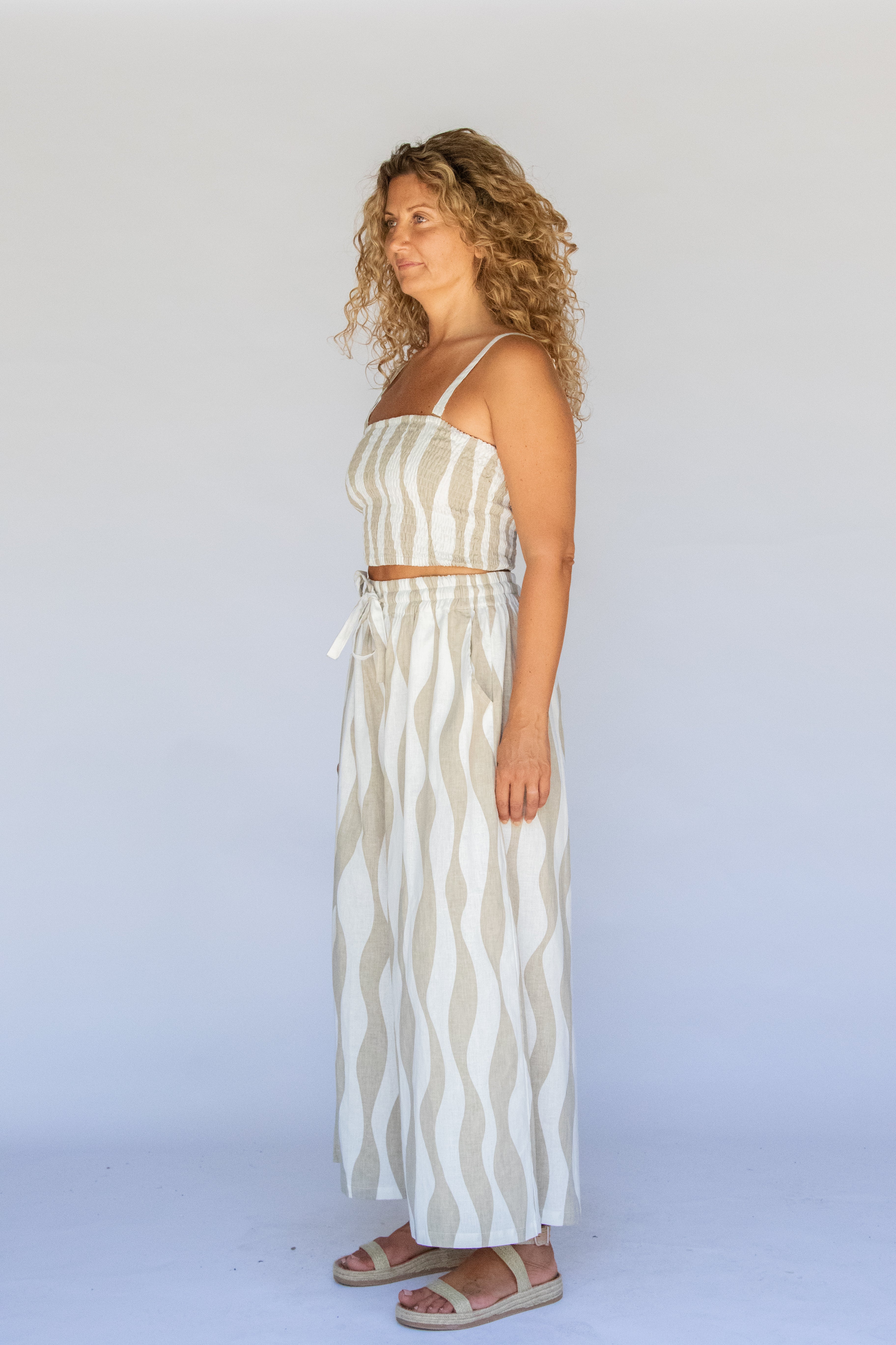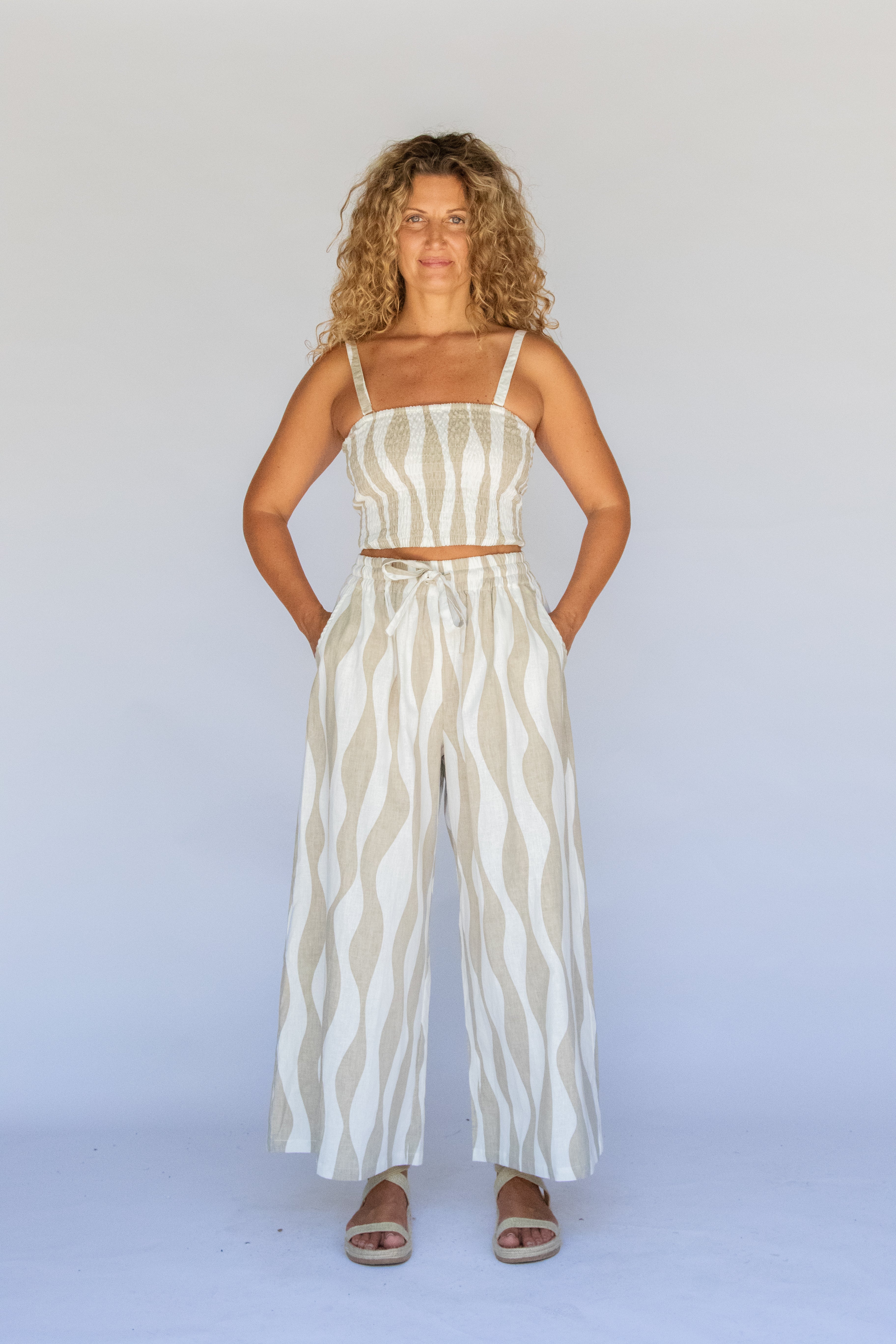 Introducing the Margot Top – your perfect companion for sun-drenched coastal adventures. Effortlessly chic and inspired by serene seaside escapes, it features a flattering shirred design crafted from soft, breathable fabric. Ideal for breezy beach days and sunset strolls, its versatile bandeau cut pairs perfectly with high-waisted shorts, a flowy skirt or our Margot Pant.
