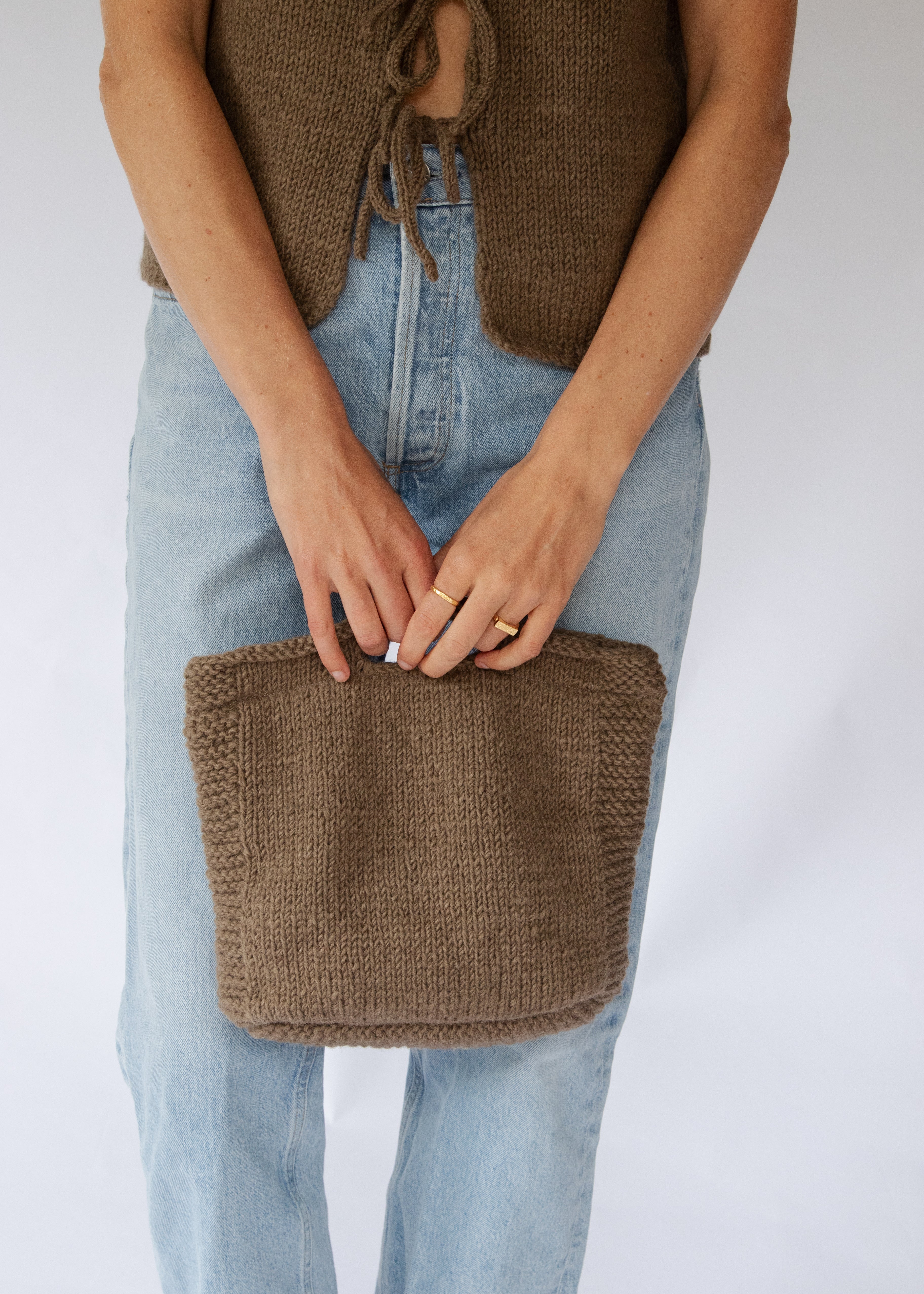 The Mini Nia is a beautifully crafted knit bag, designed for effortless style and everyday functionality. Its compact size makes it perfect for carrying your essentials, while the soft, textured knit adds a cosy, handcrafted touch. Featuring a minimalist silhouette with a subtle rolled edge, this bag embodies timeless simplicity. Available in a muted, earthy colour palette, the Mini Nia is a versatile companion for any outfit, whether you're heading out for a casual day or elevating your winter wardrobe.