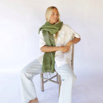 Our shawl, wrap, or scarf is a timeless wardrobe essential. Effortlessly dressed up or down, this cozy piece will become your go-to throughout the cooler months.