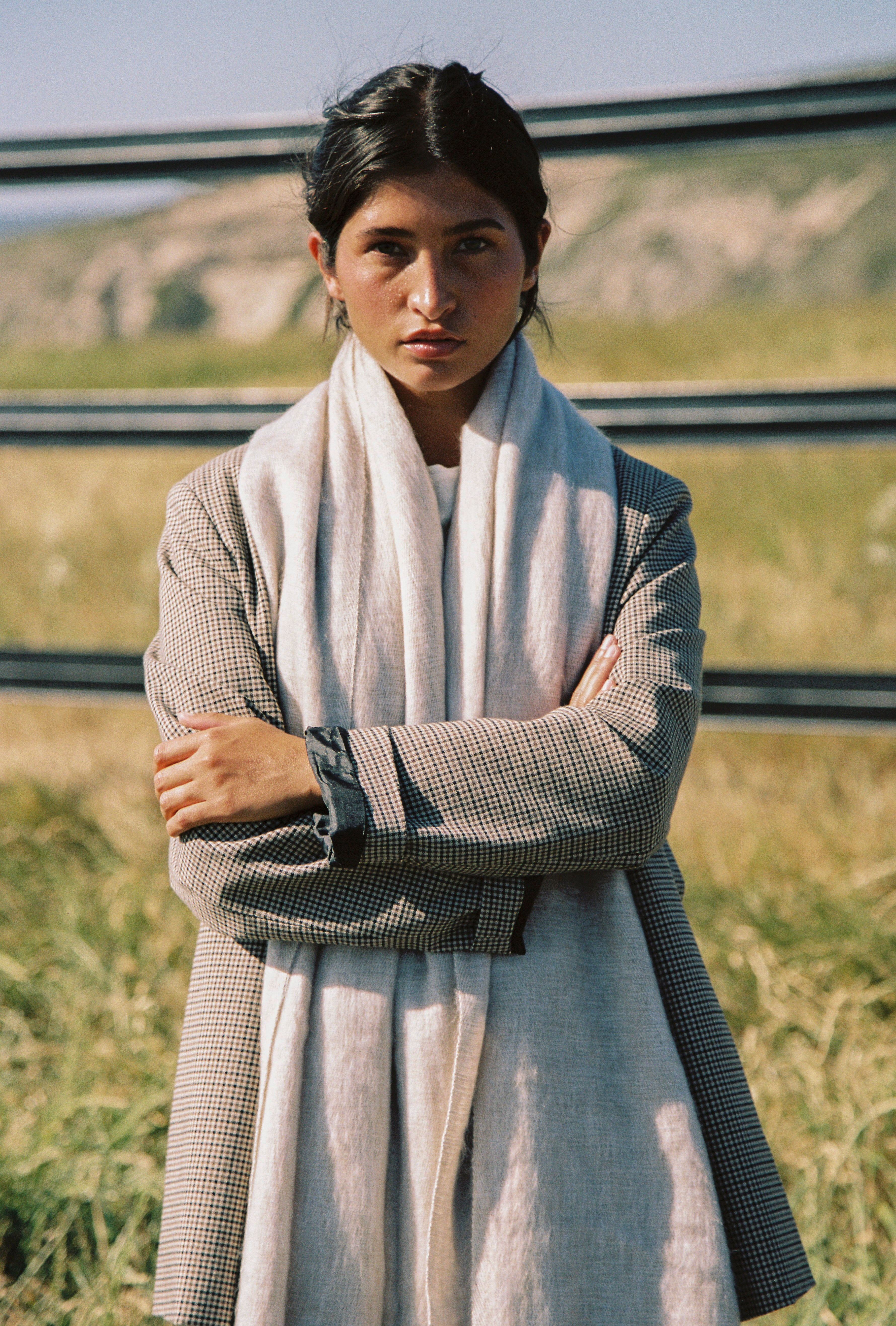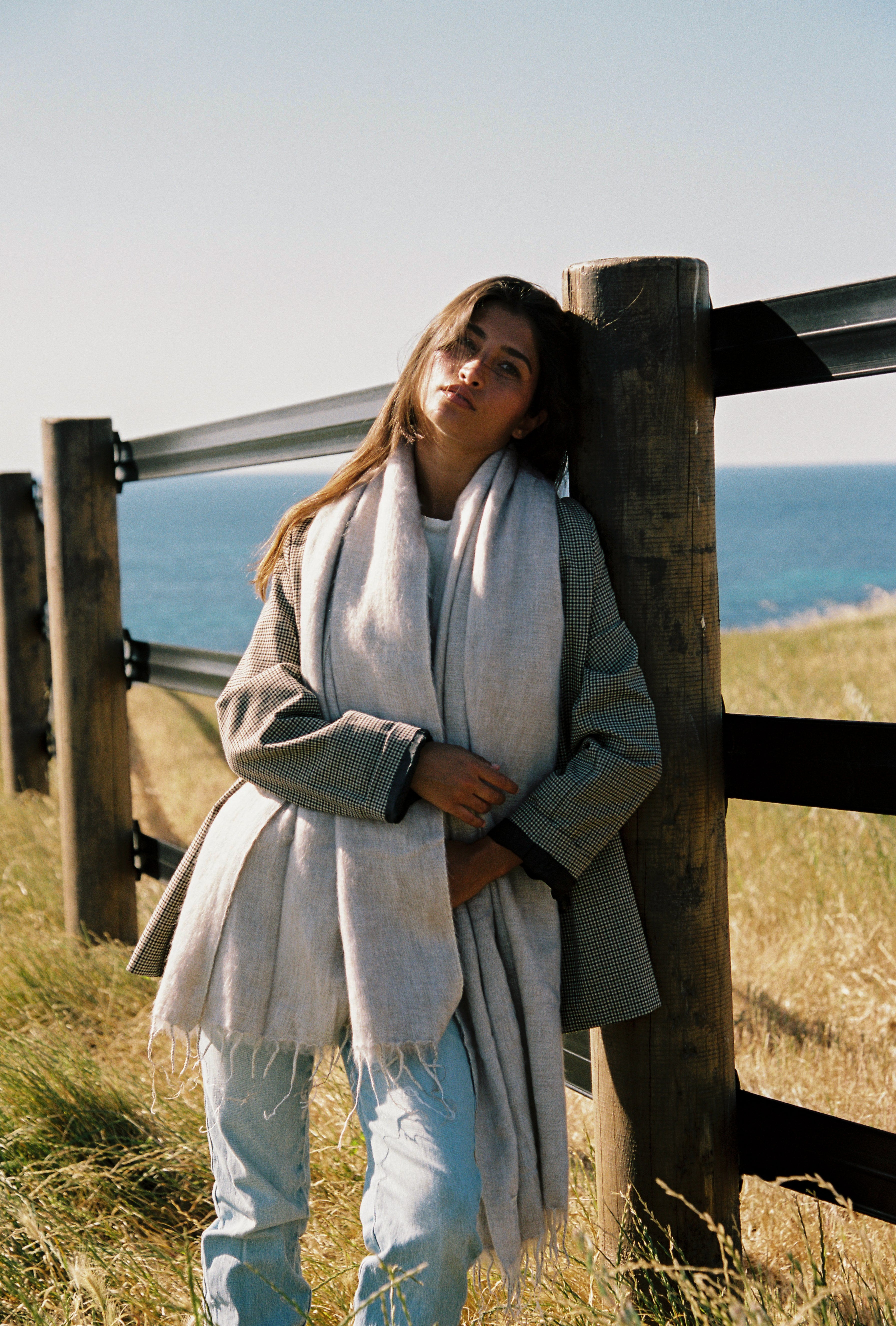 Our shawl/wrap/scarf is a versatile wardrobe must-have. Easily styled up or down, you’ll be reaching for this cosy piece time and time again throughout the cooler months.