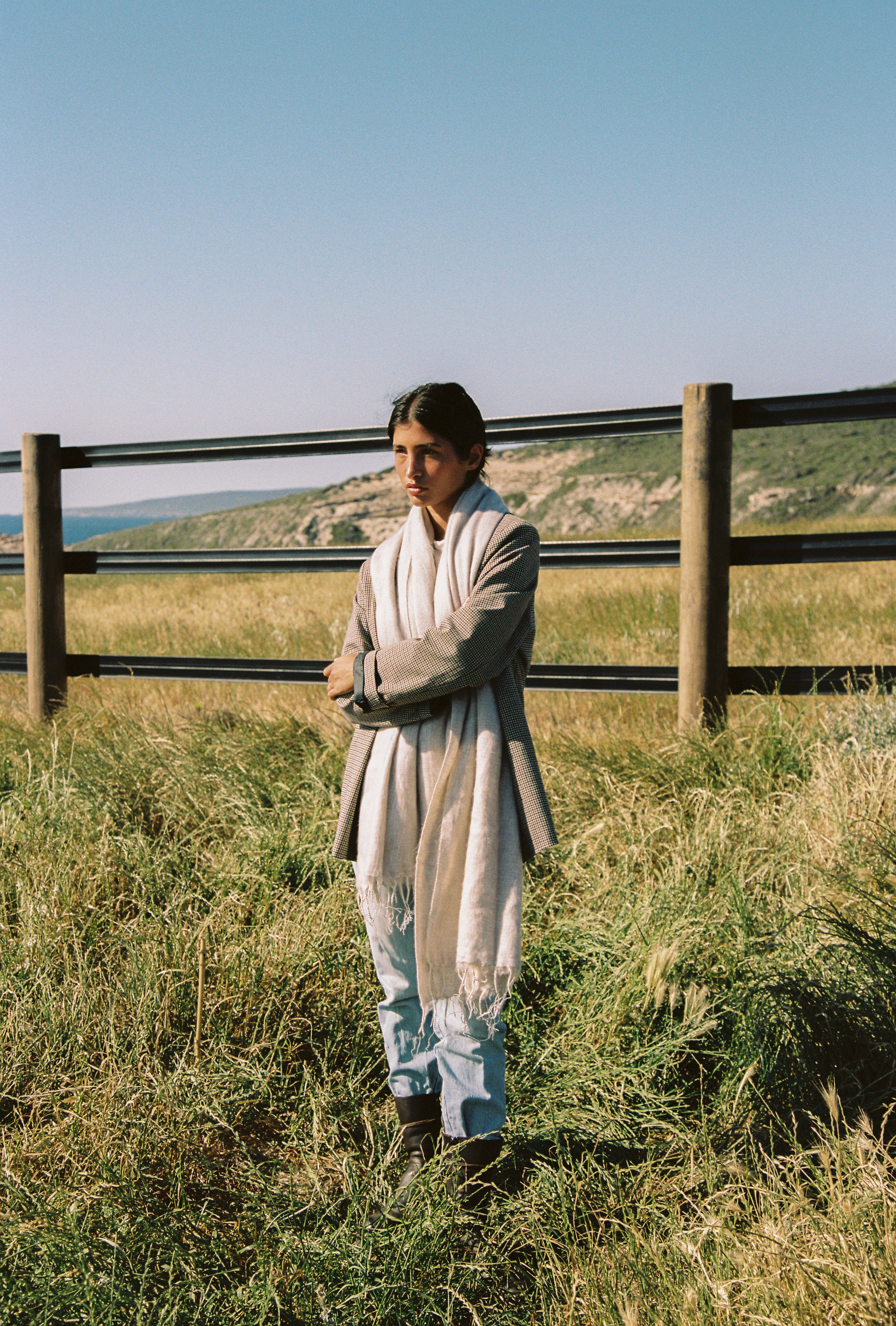 TERRAMAR: This campaign was captured close by, on the coastal stretch called “Wyadup”. Here, the raw elements of the land, comprised of granite rock formations, grassy pasture, and native coastal bush roll into the wild Indian Ocean. It was the perfect backdrop that encapsulates all that TerraMar means. “Terra” meaning Earth & “Mar” meaning Ocean. From earthy tones to vibrant accents, reminiscent of TerraMar’s elements, this collection is a tribute to the captivating allure of the cooler months.