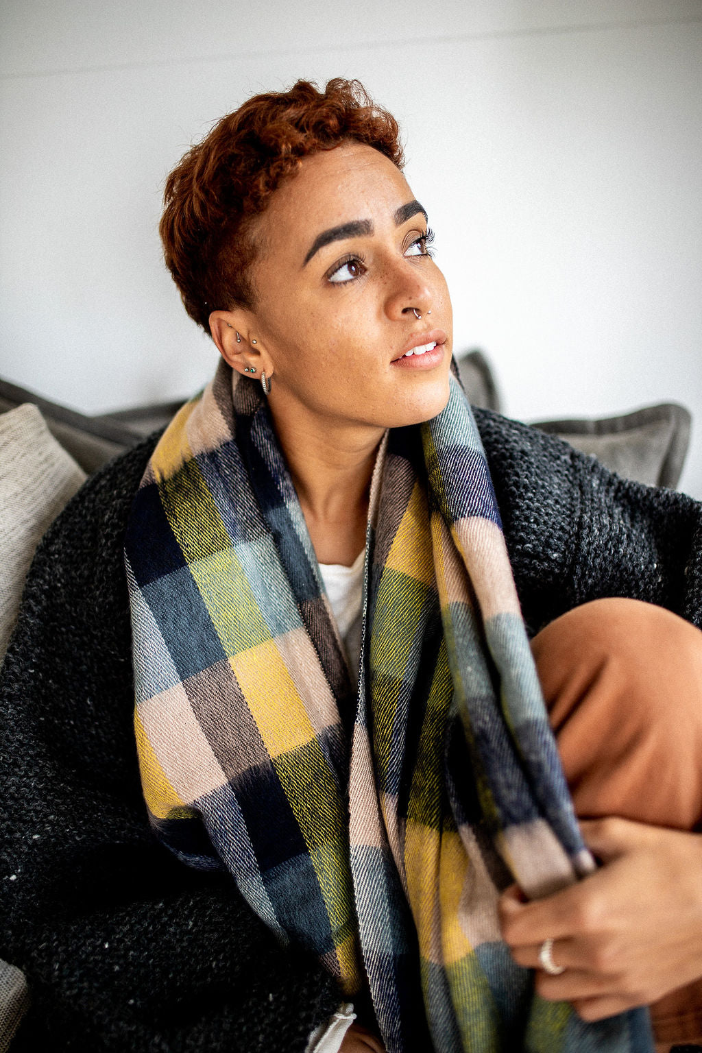 Our shawl/wrap/scarf has many uses, and can easily be styled up or down.