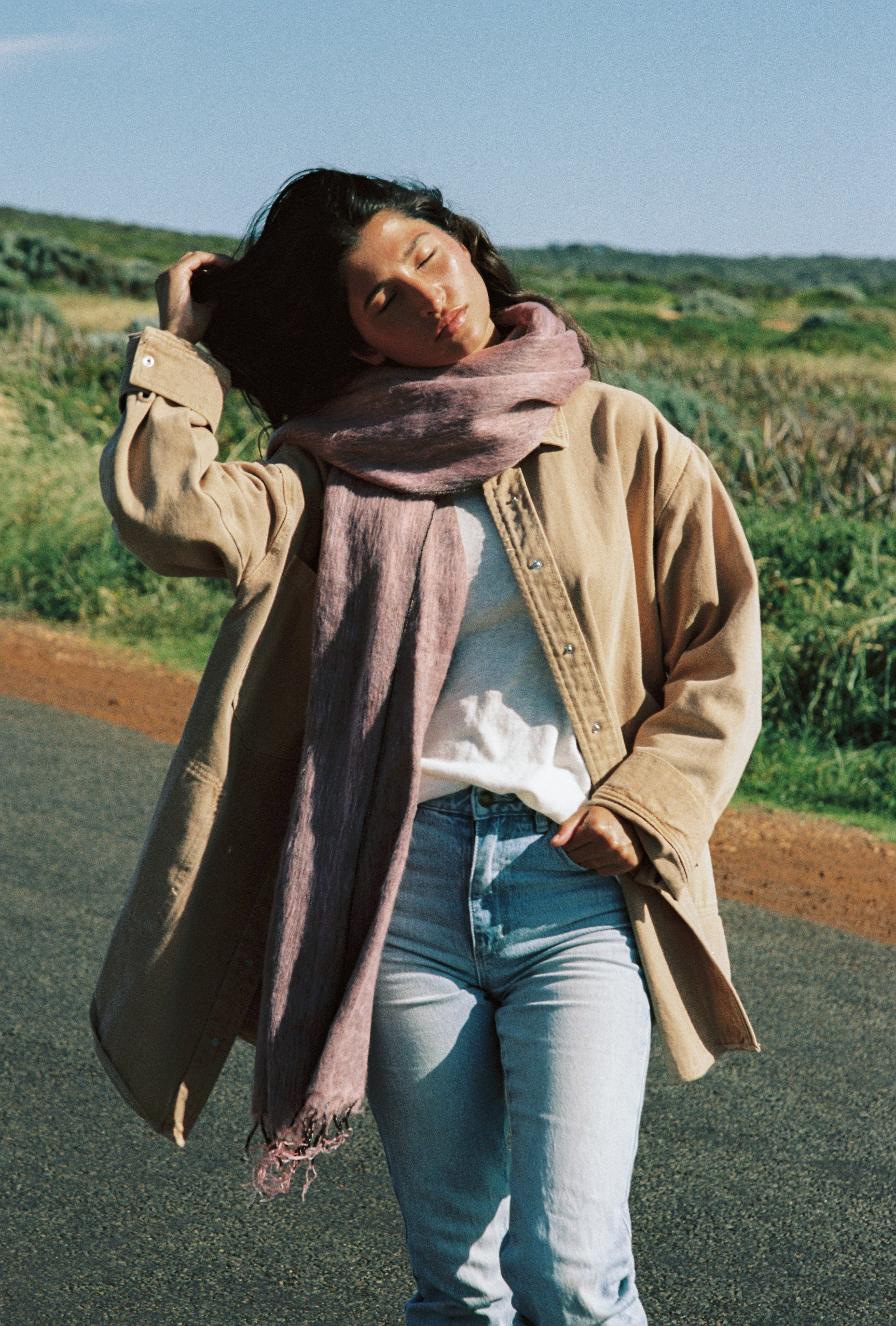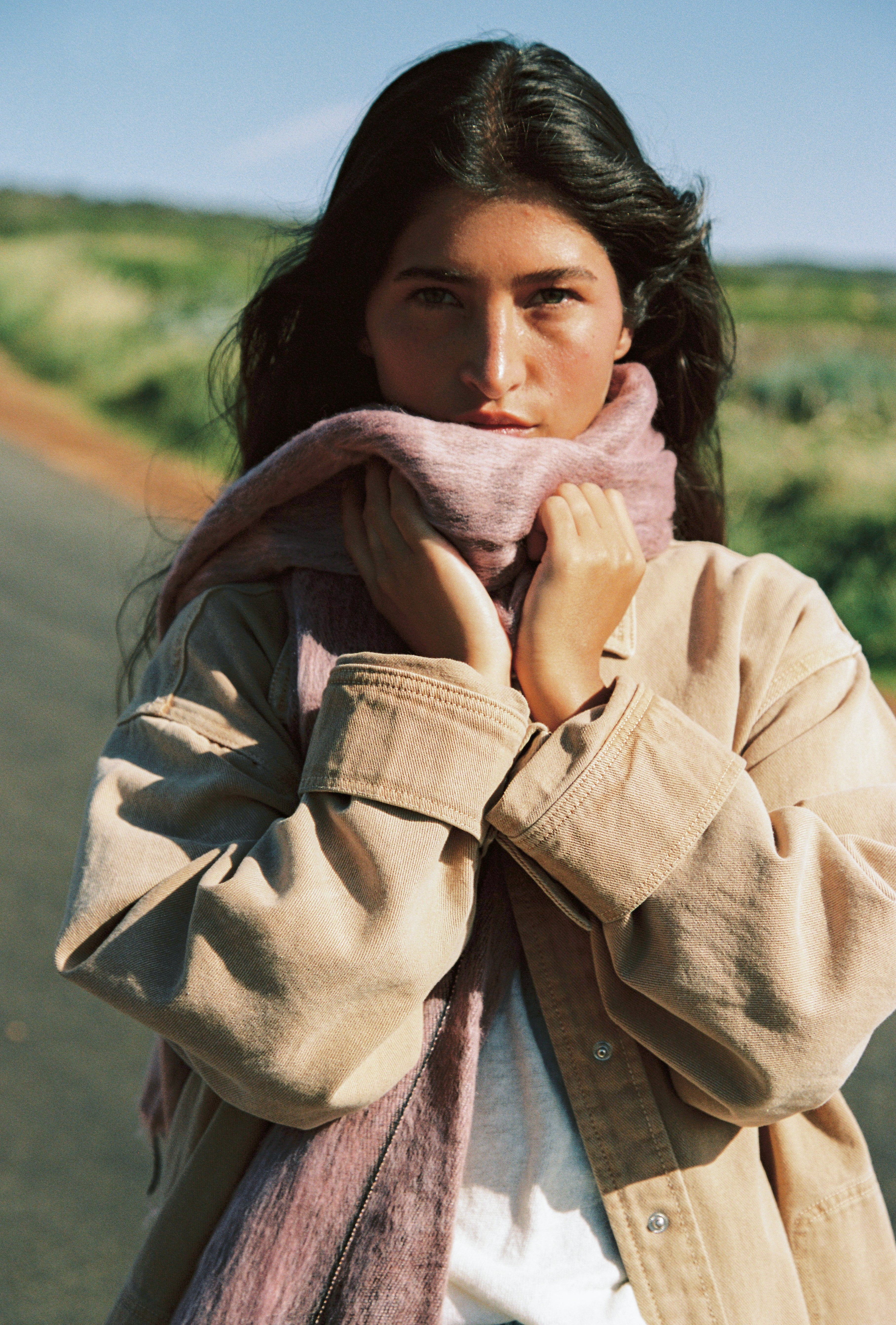 TERRAMAR: This campaign was captured close by, on the coastal stretch called “Wyadup”. Here, the raw elements of the land, comprised of granite rock formations, grassy pasture, and native coastal bush roll into the wild Indian Ocean. It was the perfect backdrop that encapsulates all that TerraMar means. “Terra” meaning Earth & “Mar” meaning Ocean.  From earthy tones to vibrant accents, reminiscent of TerraMar’s elements, this collection is a tribute to the captivating allure of the cooler months.